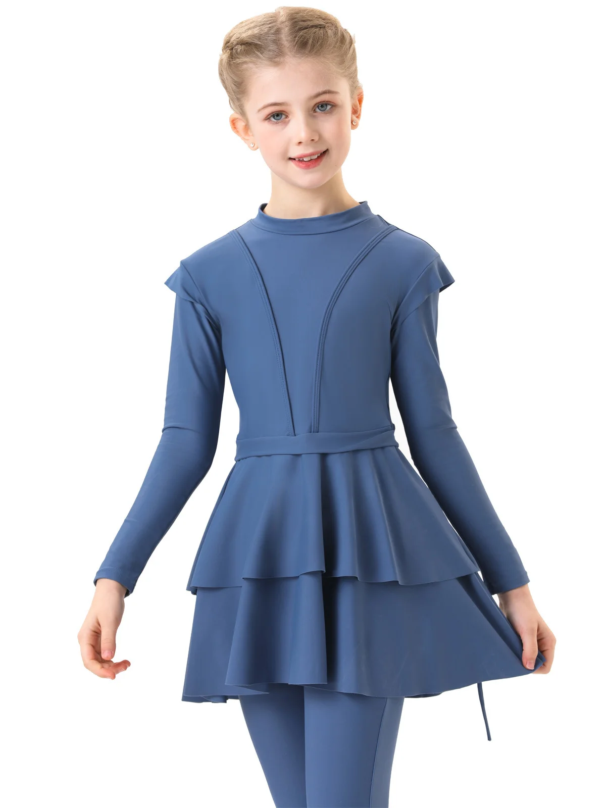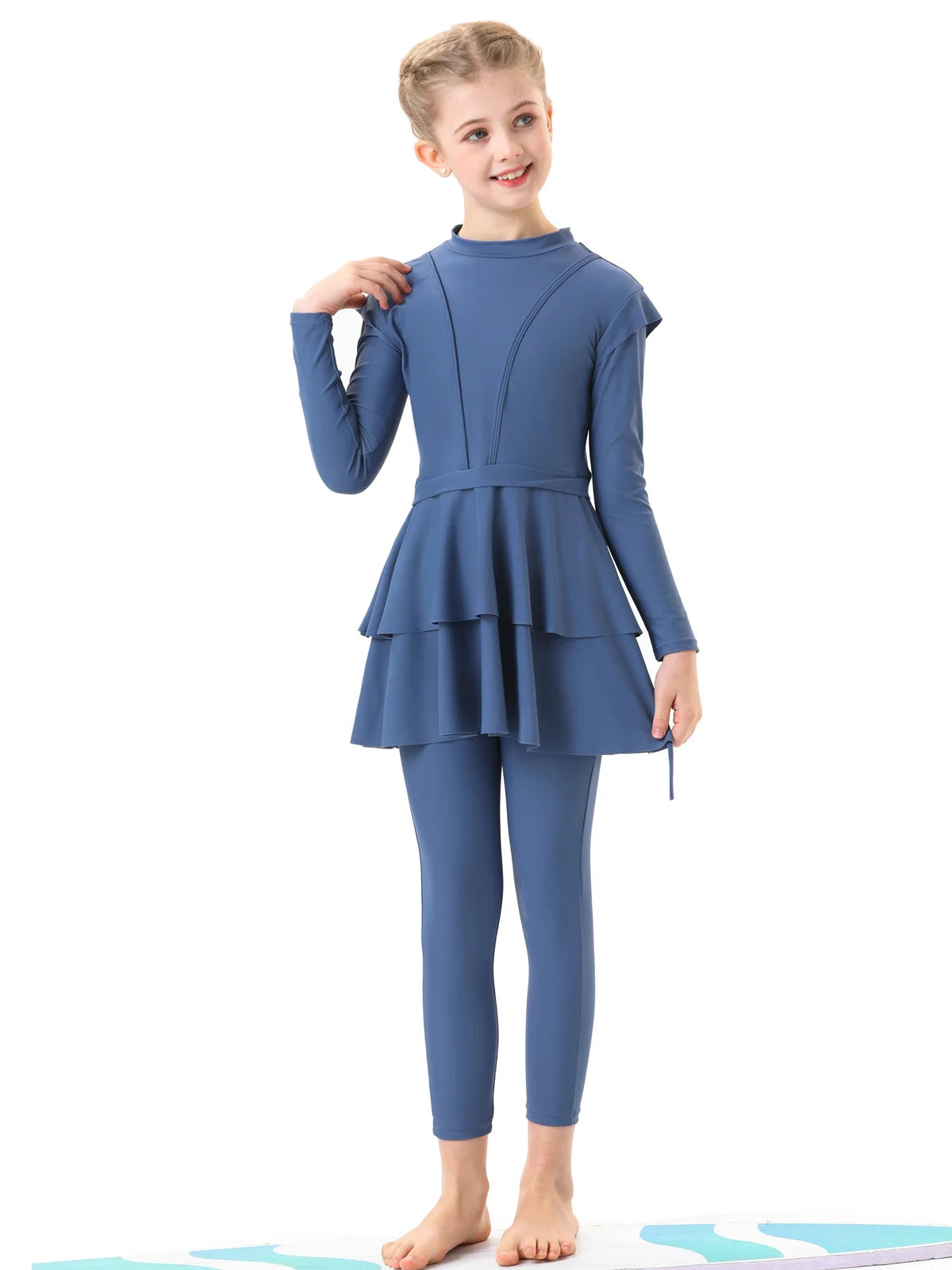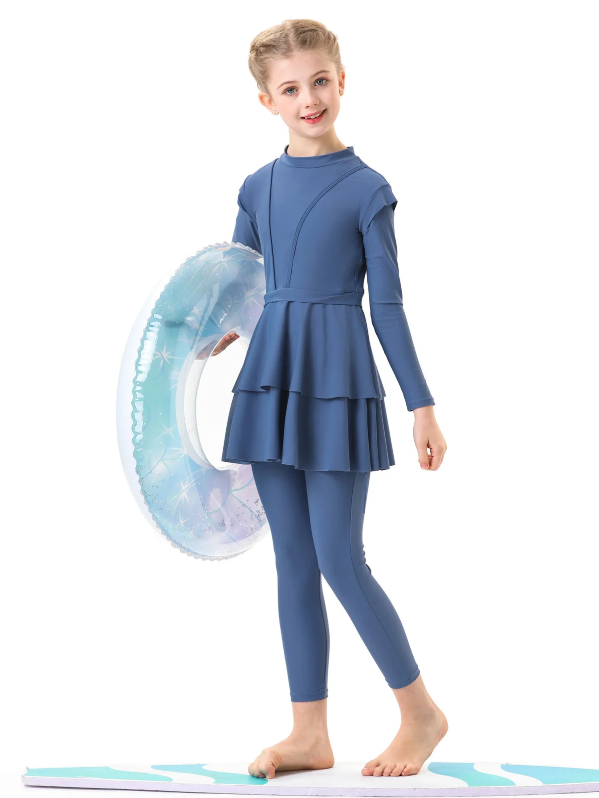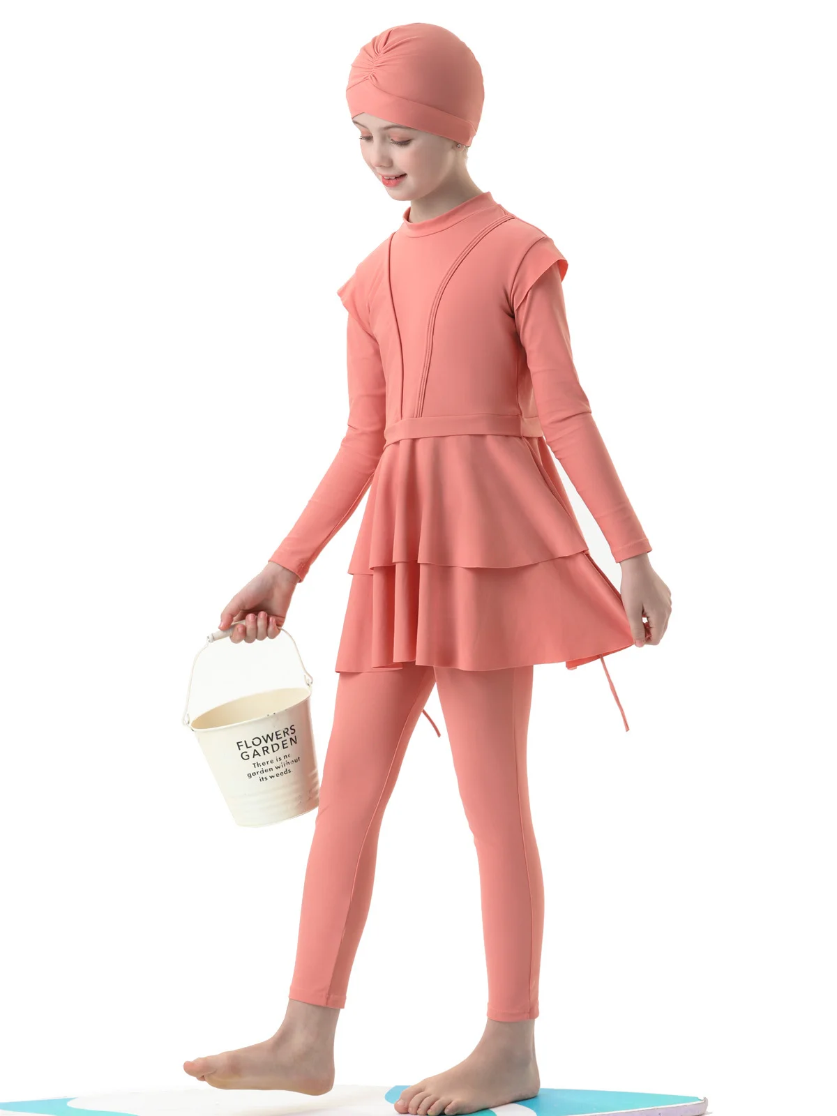 3 Pieces Set Muslim Kids Red Gray Swimwear Girl With Swim Cap Burkini Femme Musulmane Swimsuit Clothing Trajes De Baño Mujer
