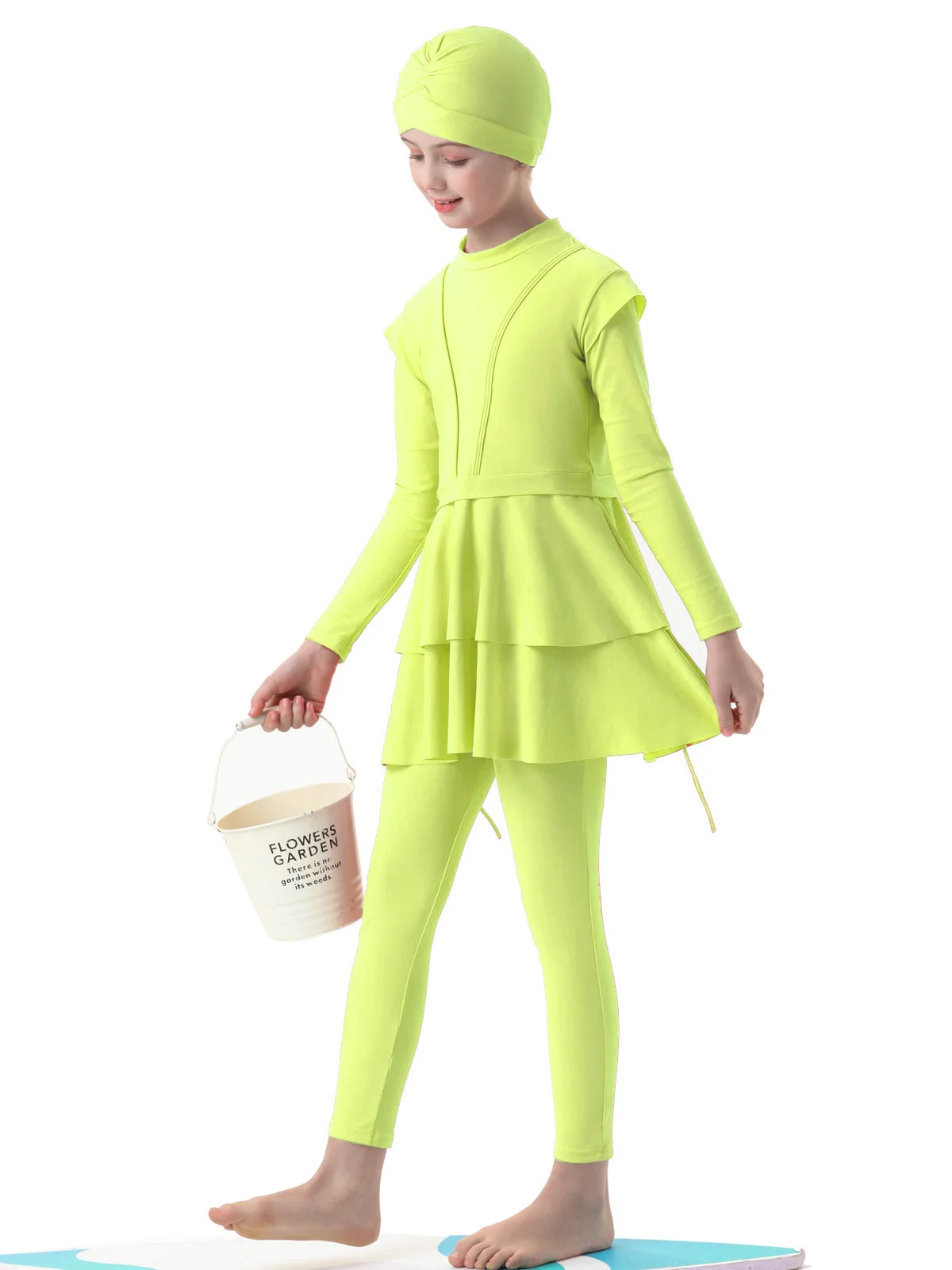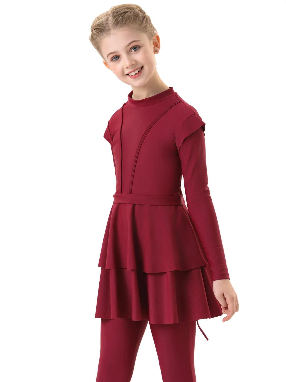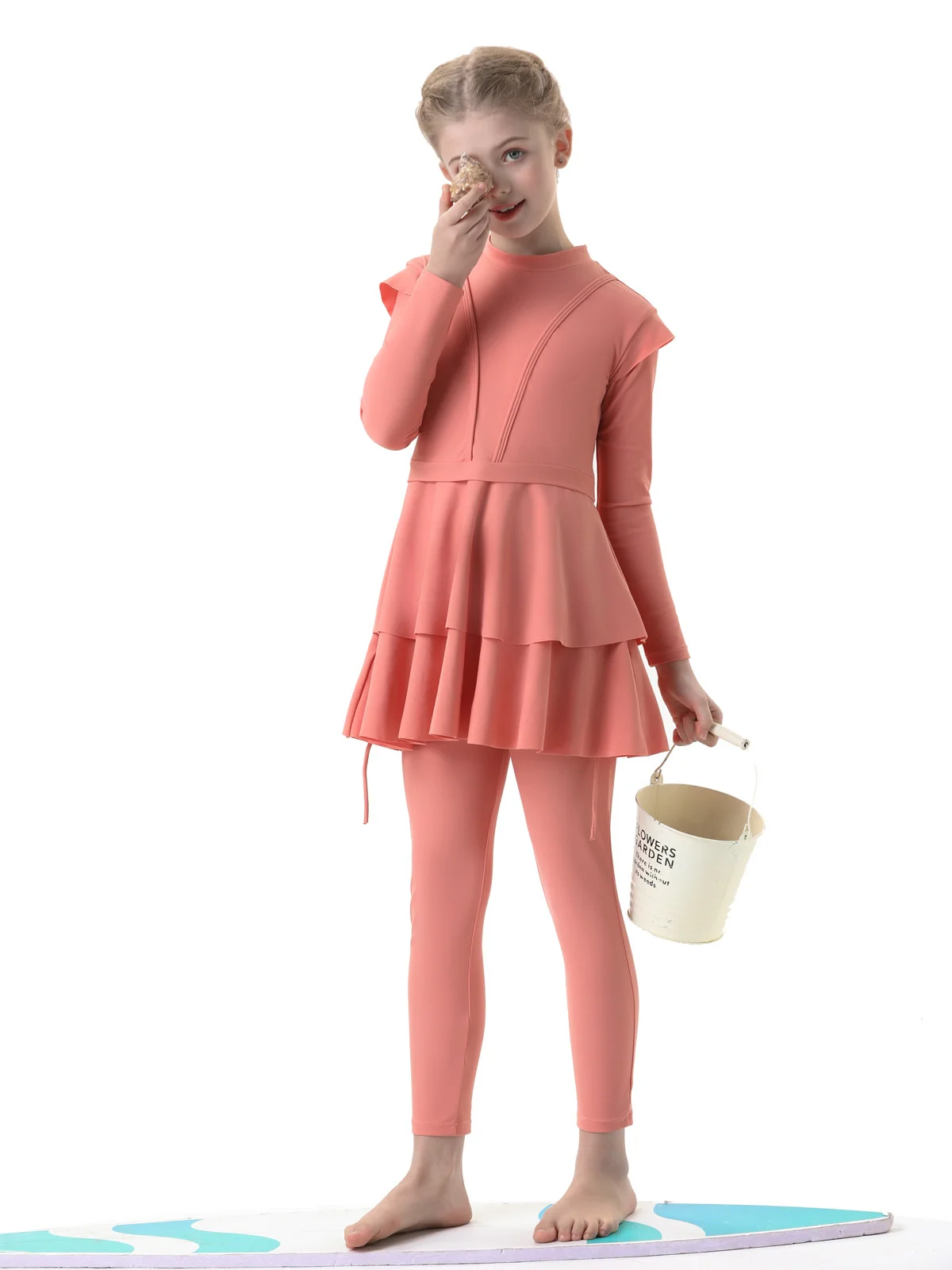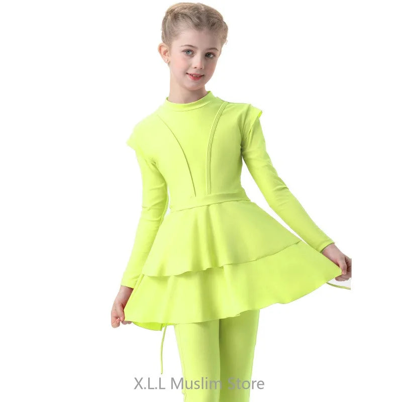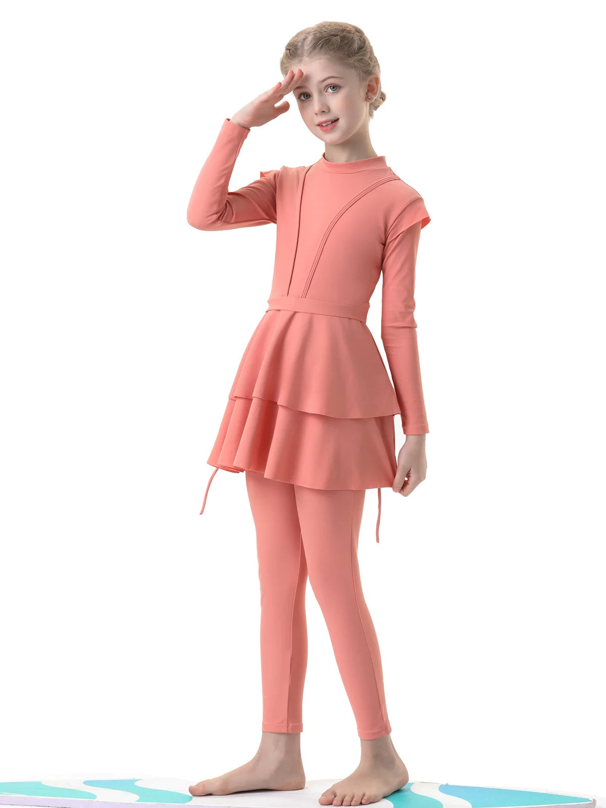 3 Pieces Set Muslim Kids Red Gray Swimwear Girl With Swim Cap Burkini Femme Musulmane Swimsuit Clothing Trajes De Baño Mujer