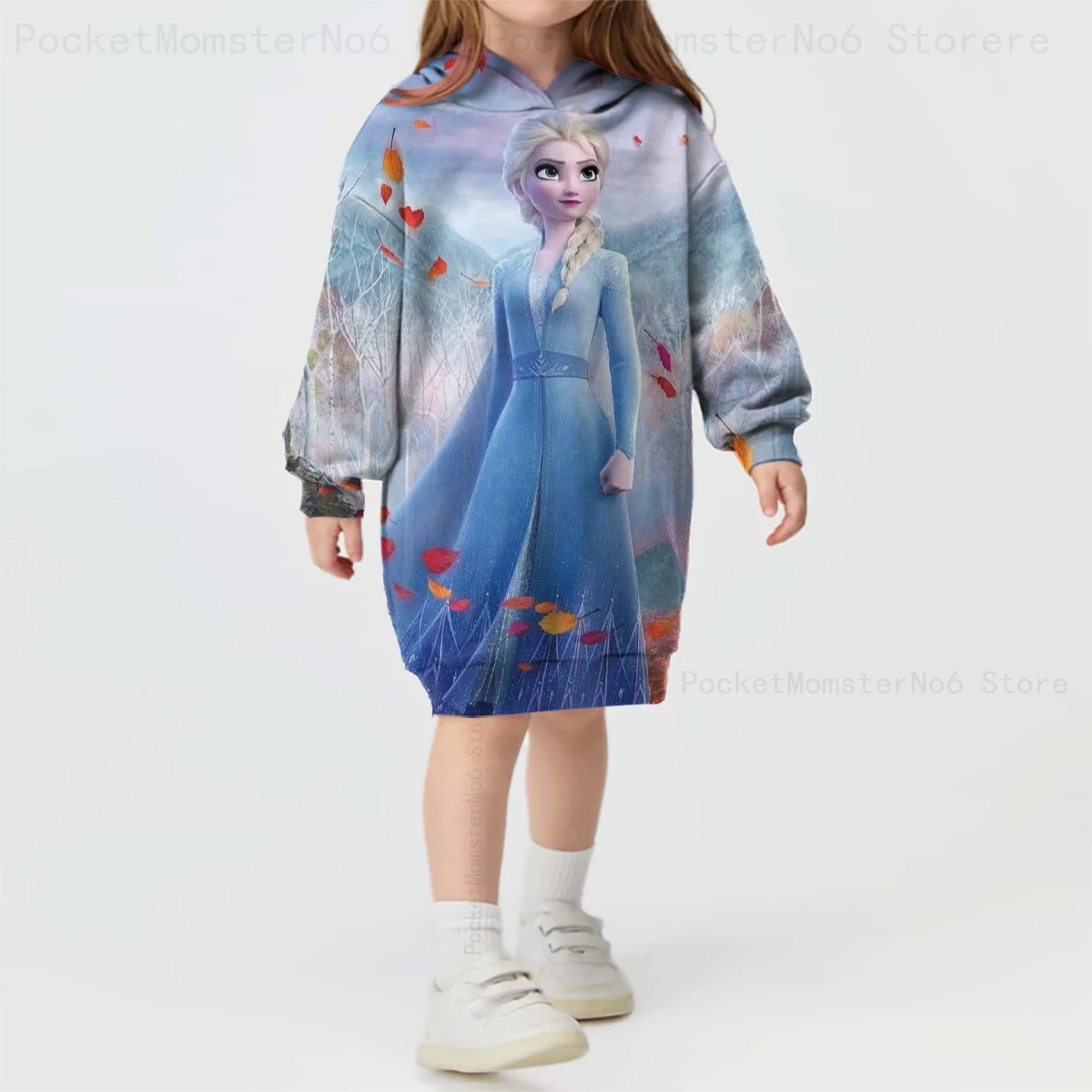 3D Printing Spring and Autumn Disney Frozen New Long-sleeved Hoodie Cute Princess Dress Kids Casual Girls Decoration