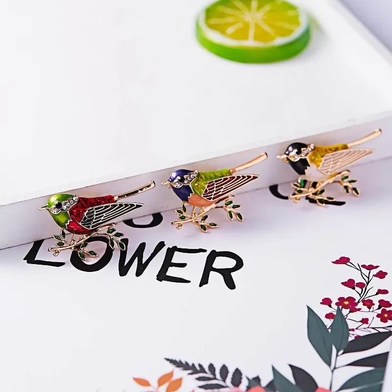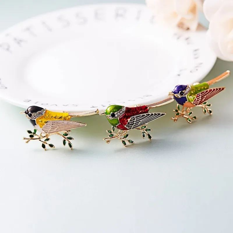3pcs/set Women Fashion Rhinestone Enamel Bird Brooch Cute Vivid Flying Fledgling Animal Brooch Scarf Dress Coat Lapel Pins Gift