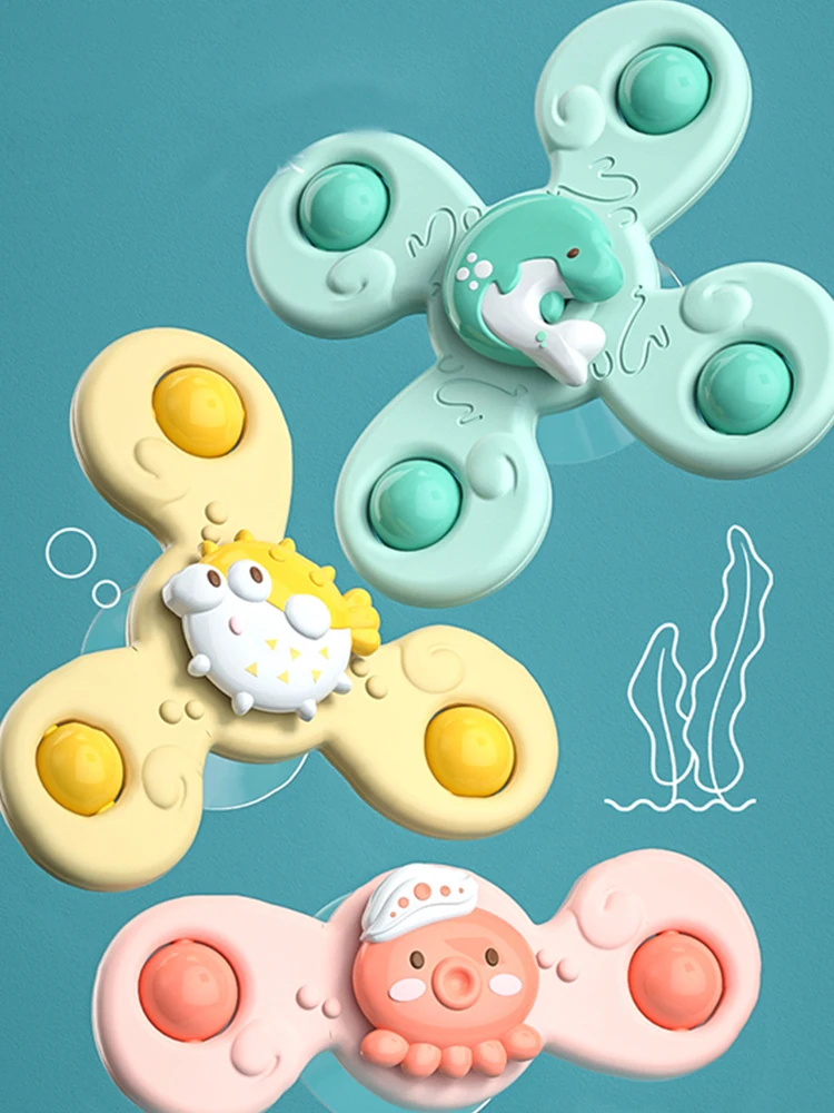 3Pcs Suction Cups Spinning Top Relief Stress Educational Toys Baby Spinners Bath Toys For Toddlers Bath Gifts