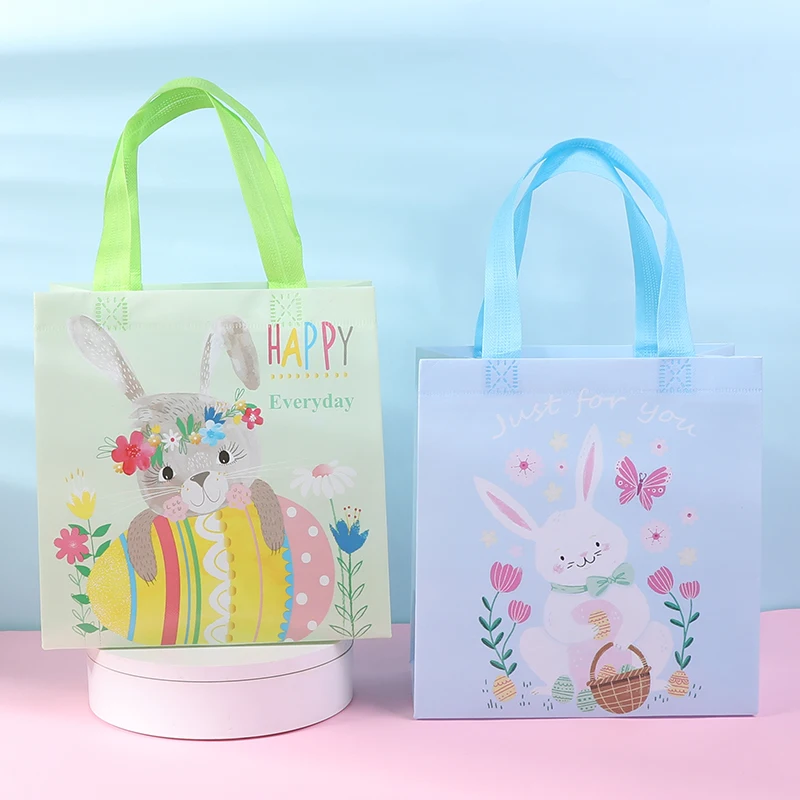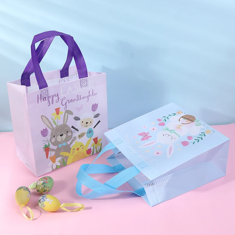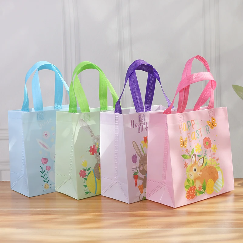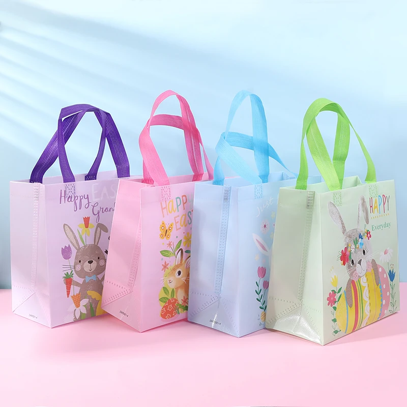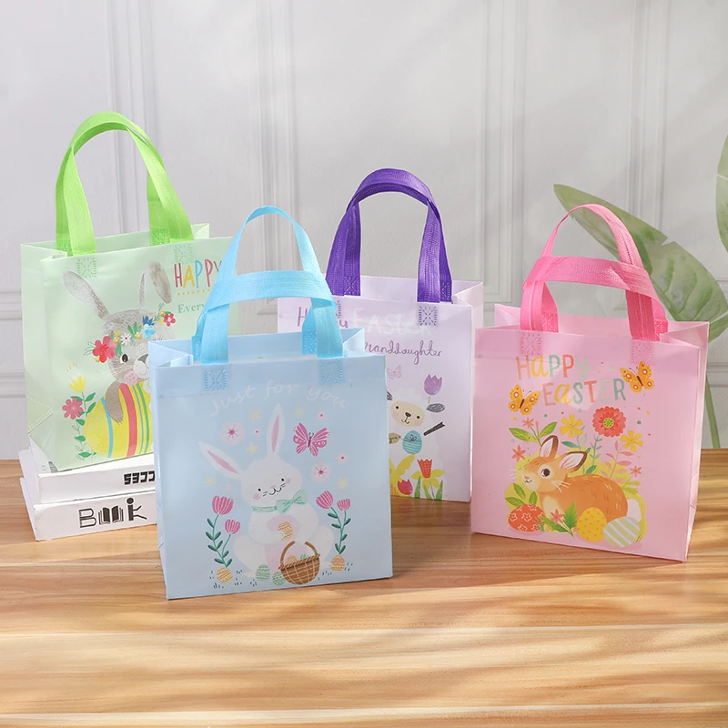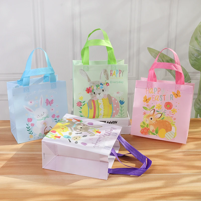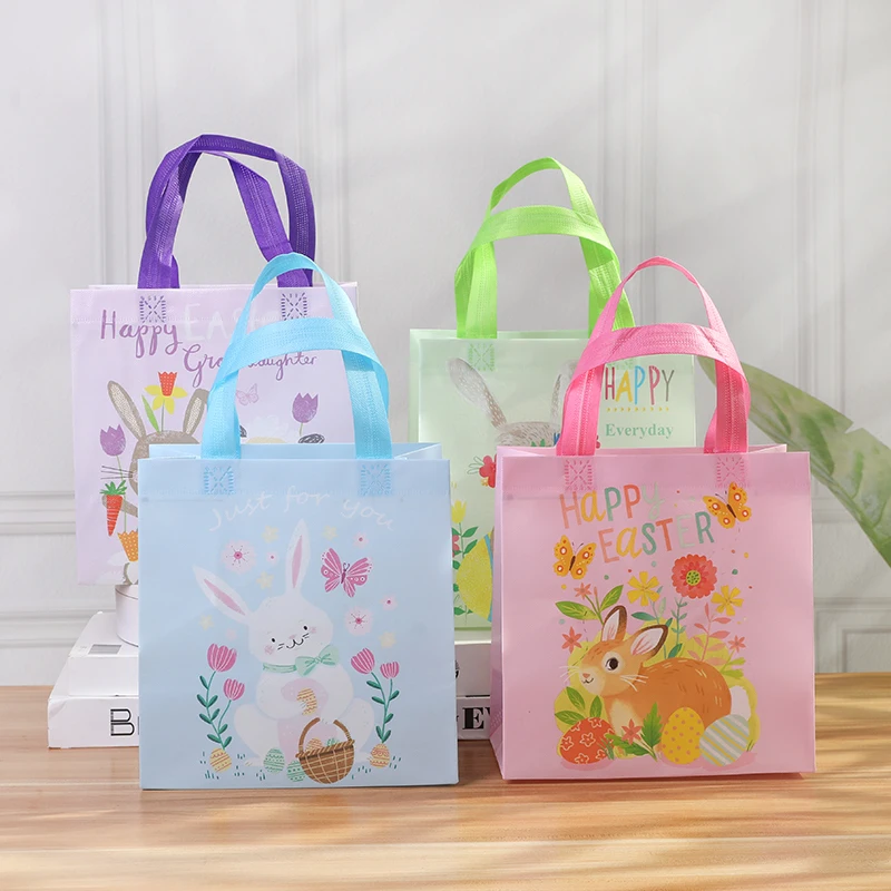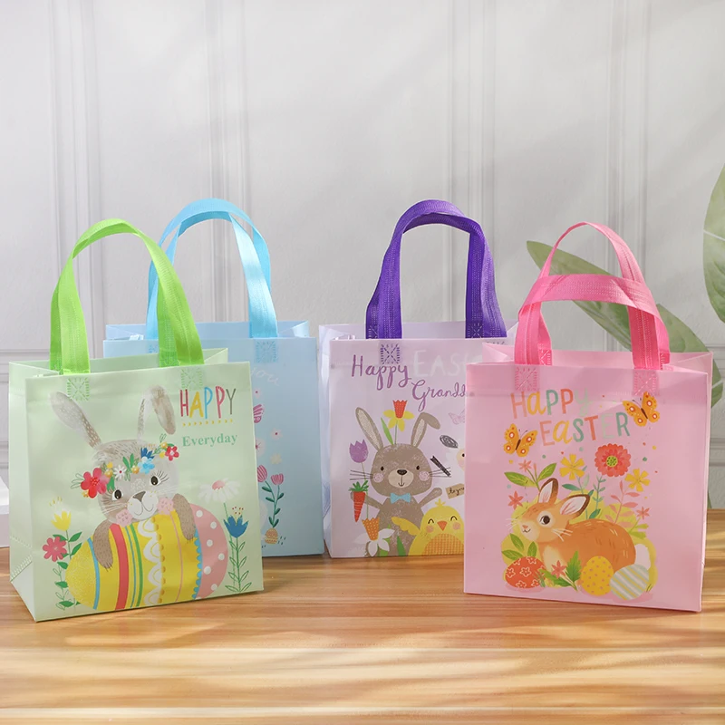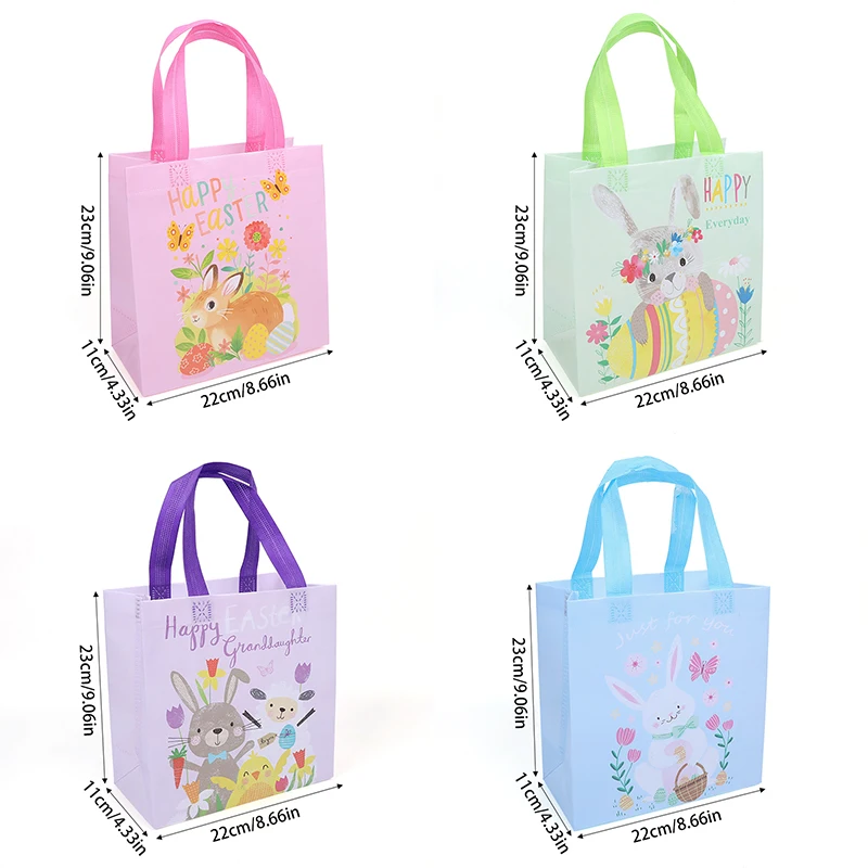 4pcs Easter Waterproof Non-woven Gift Bag Cartoon Egg Bunny Printed Candy Packaging Bag With Handles Happy Easter Party Supplies