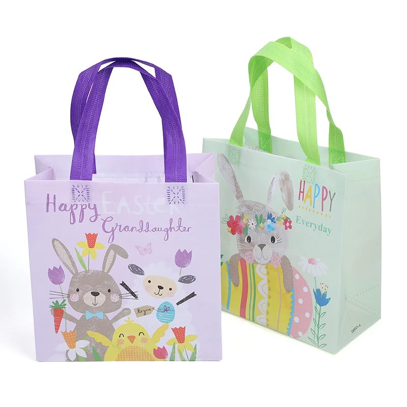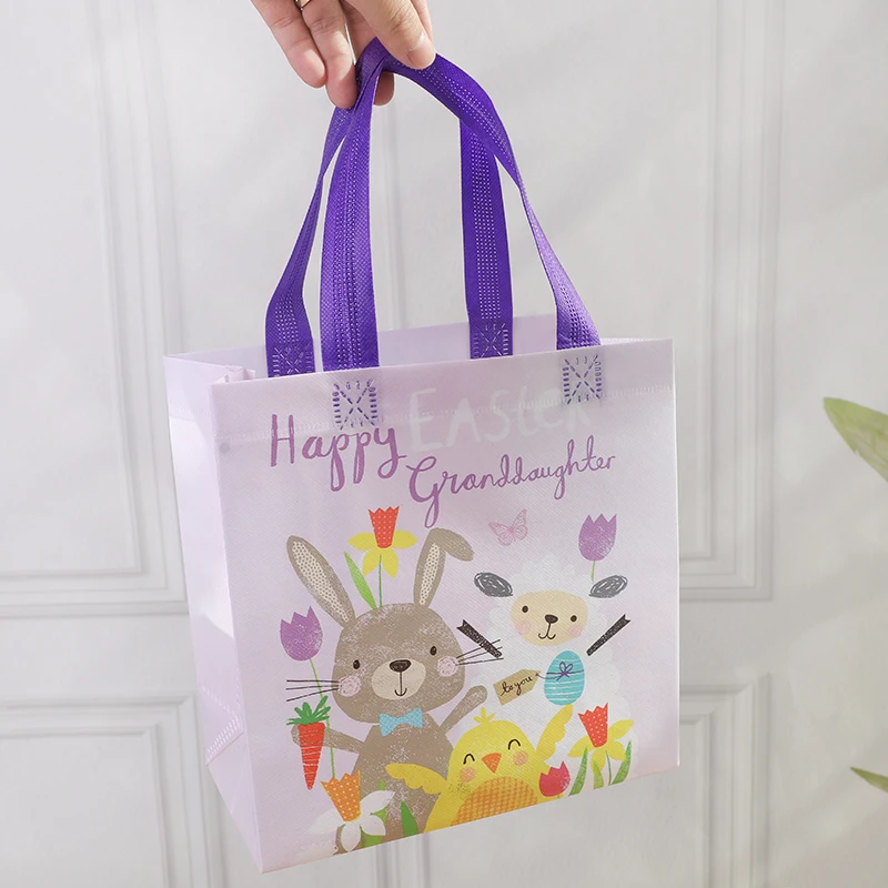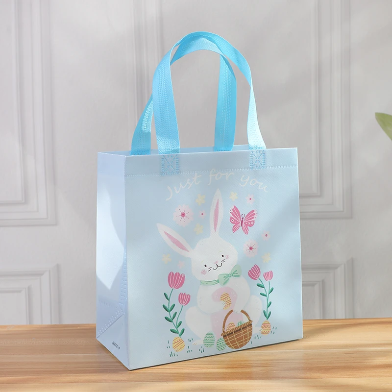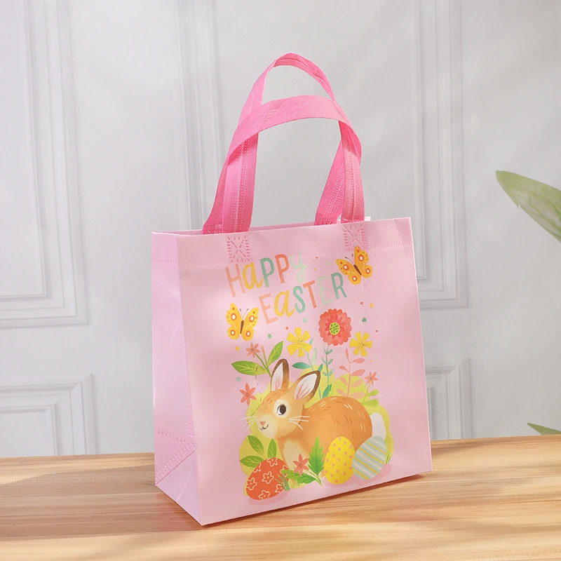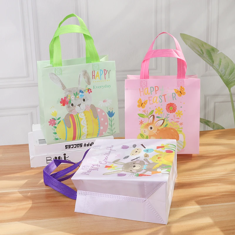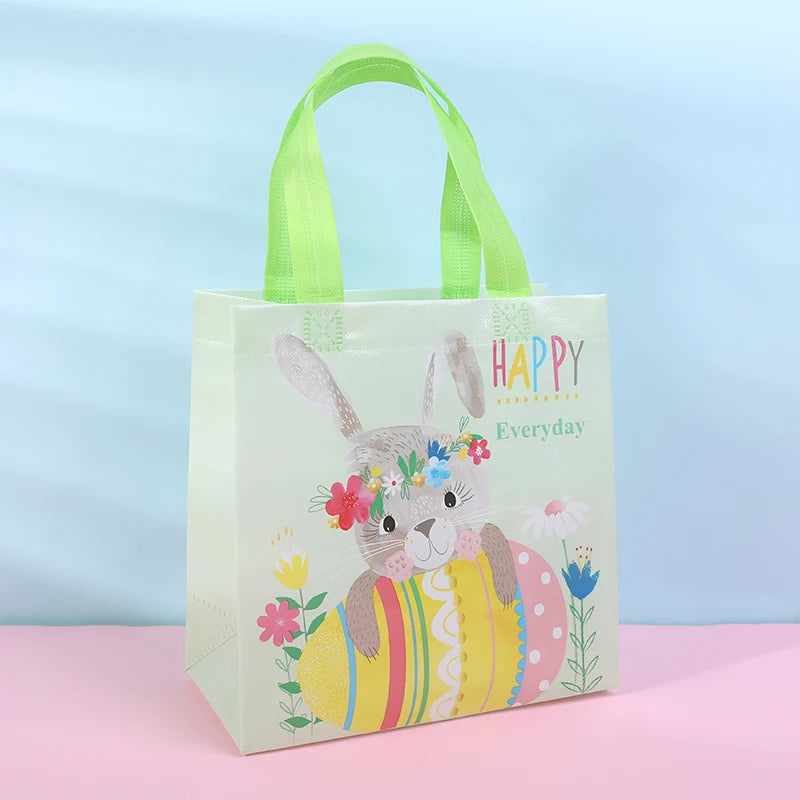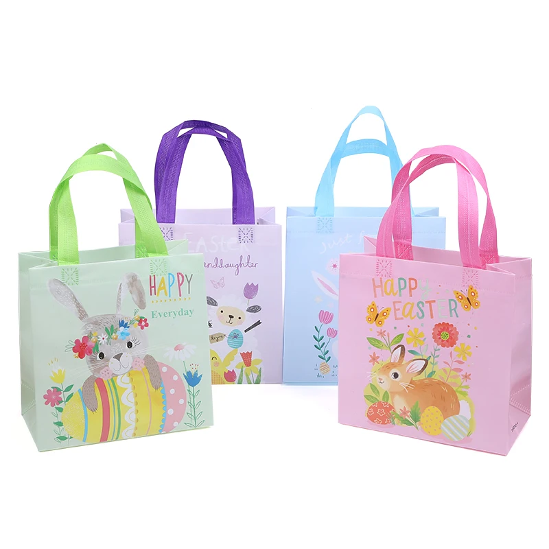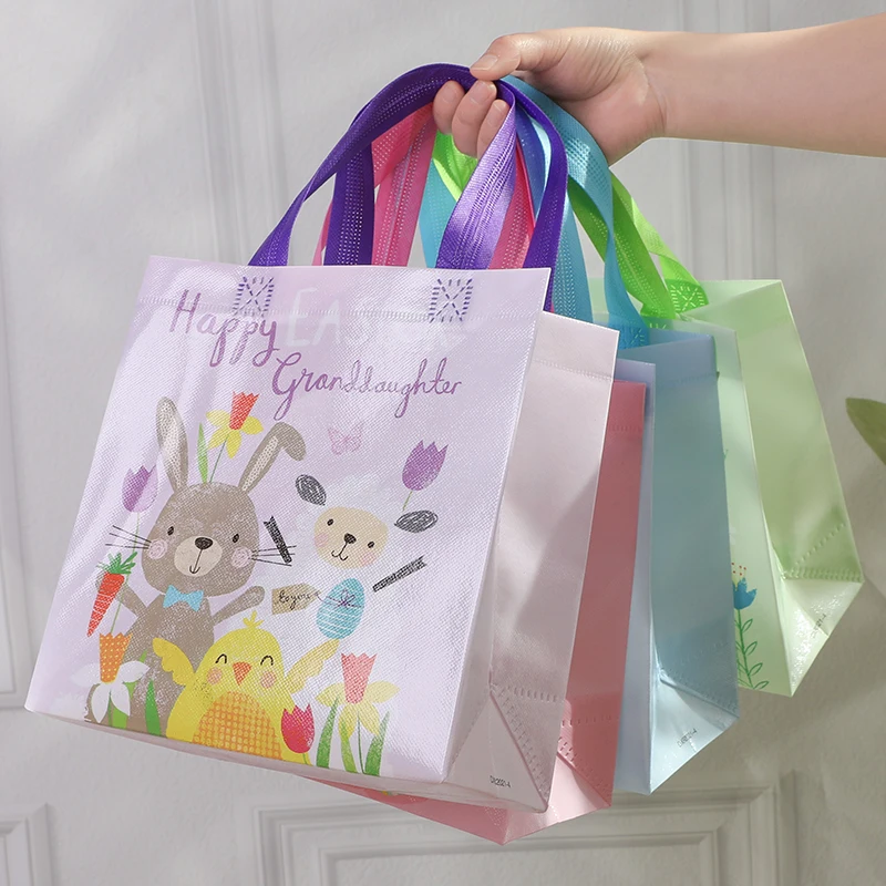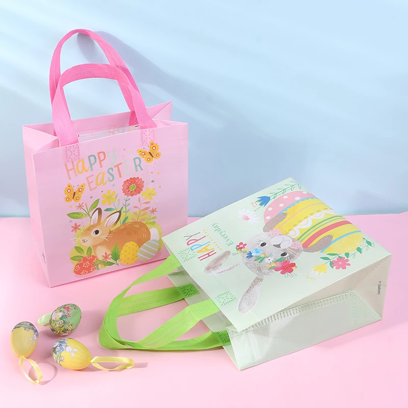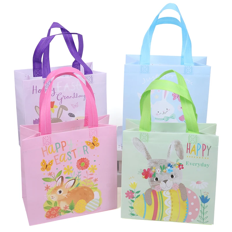 4pcs Easter Waterproof Non-woven Gift Bag Cartoon Egg Bunny Printed Candy Packaging Bag With Handles Happy Easter Party Supplies