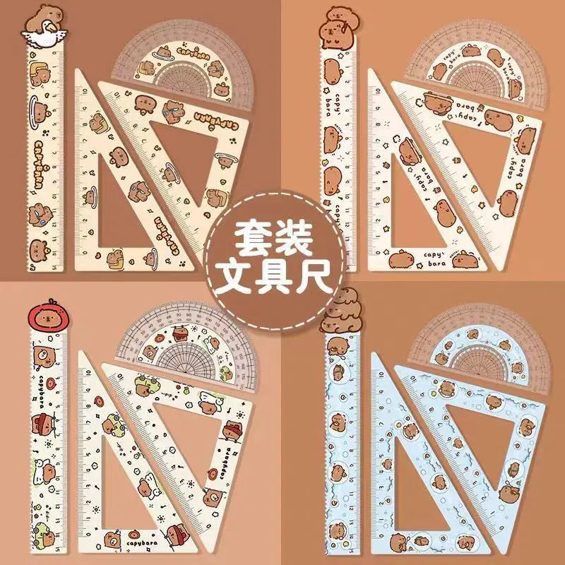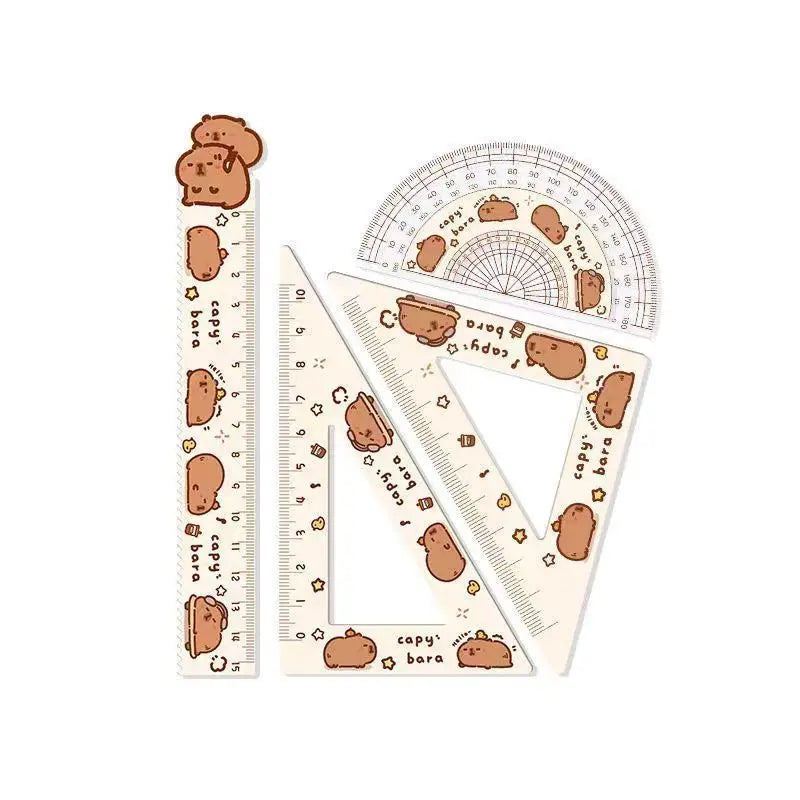 4pcs/set Creative Acrylic Capybara Set of Rulers Drawing Tools Cute Cartoon Soft Ruler Set Office Supplies Set Square