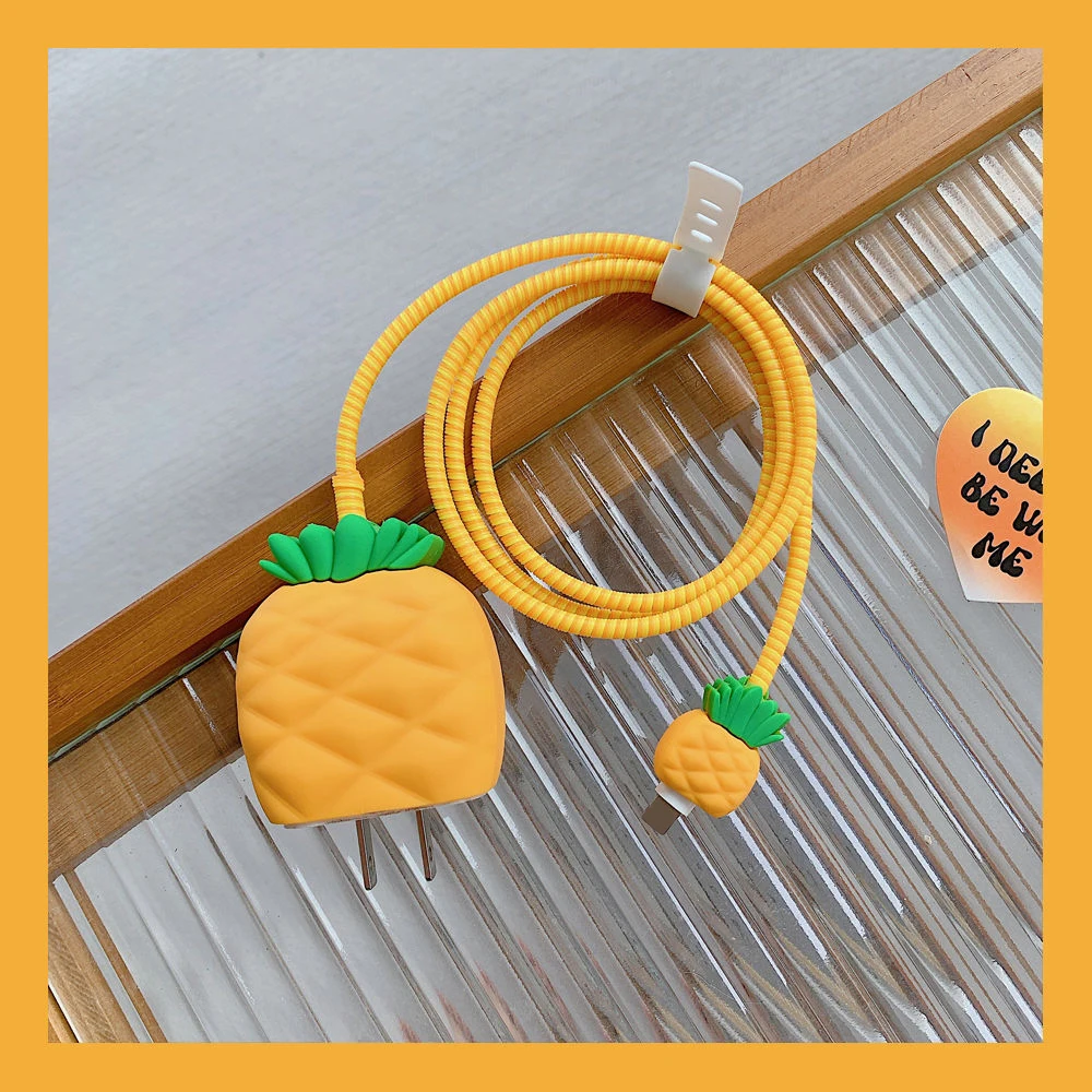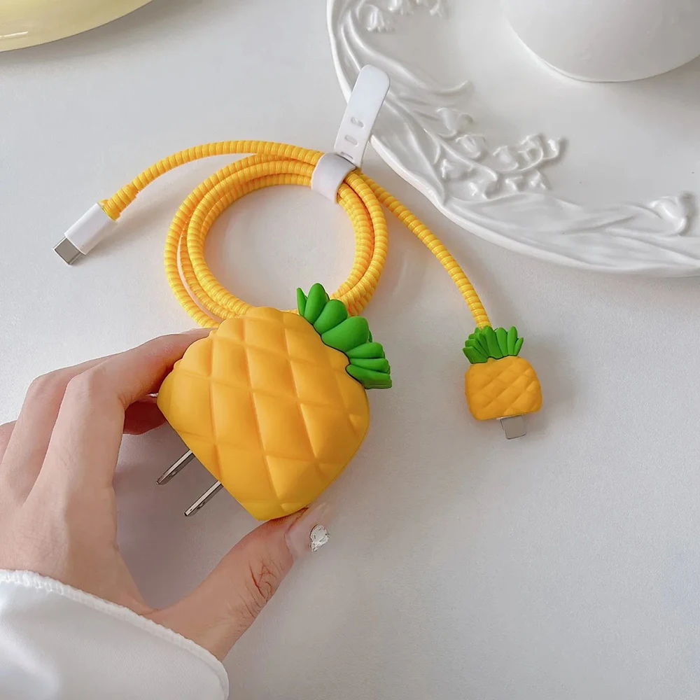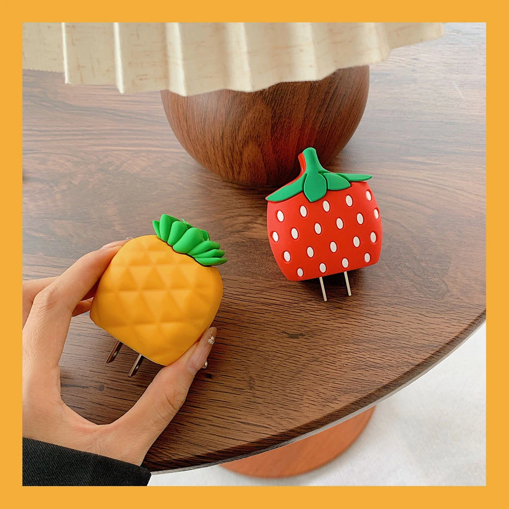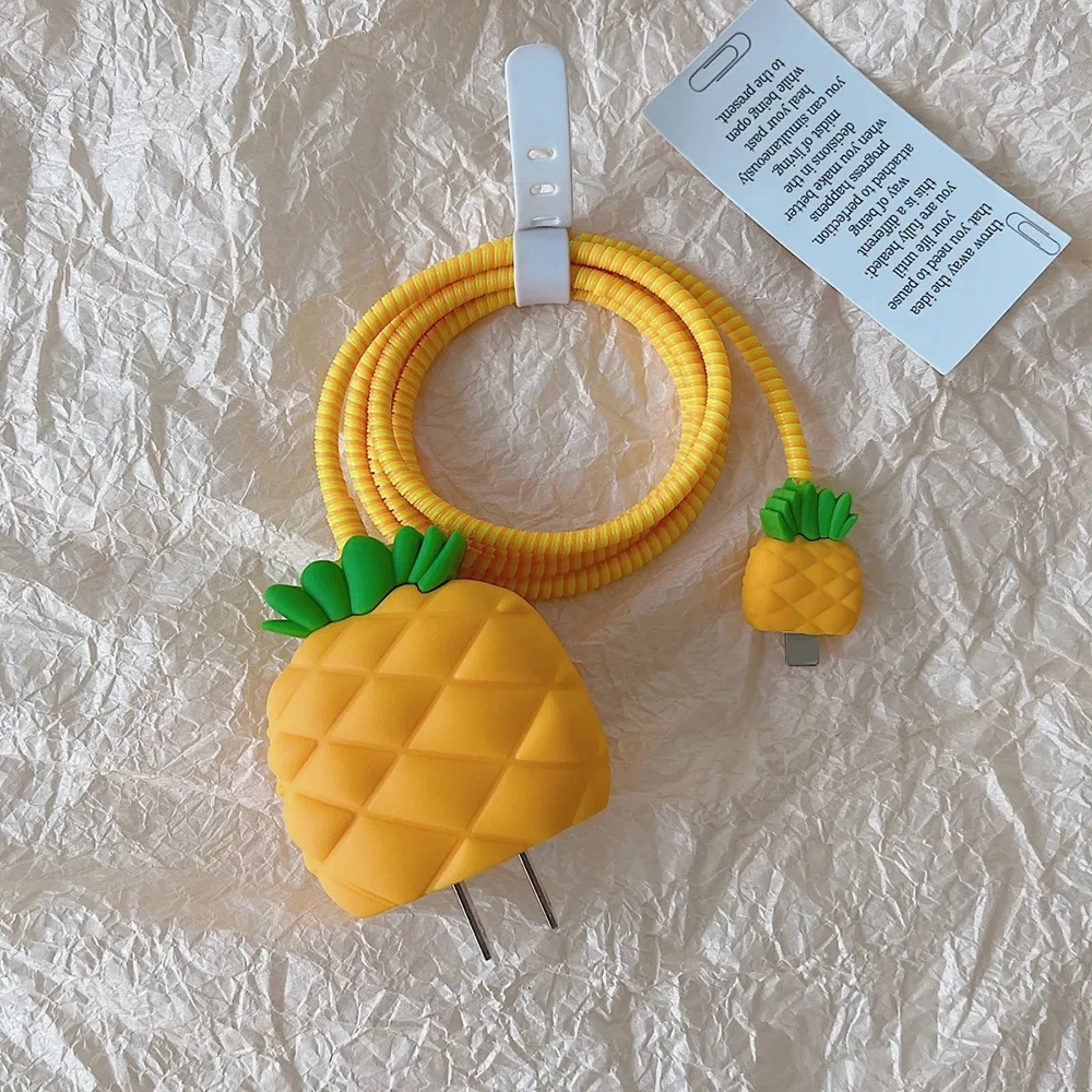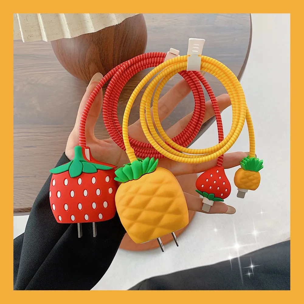 4pcs Strawberry Pineapple 3D Charger Protective Case For iPhone 18W 20W Fast Charge Protection Cover Cable Winder Accessories