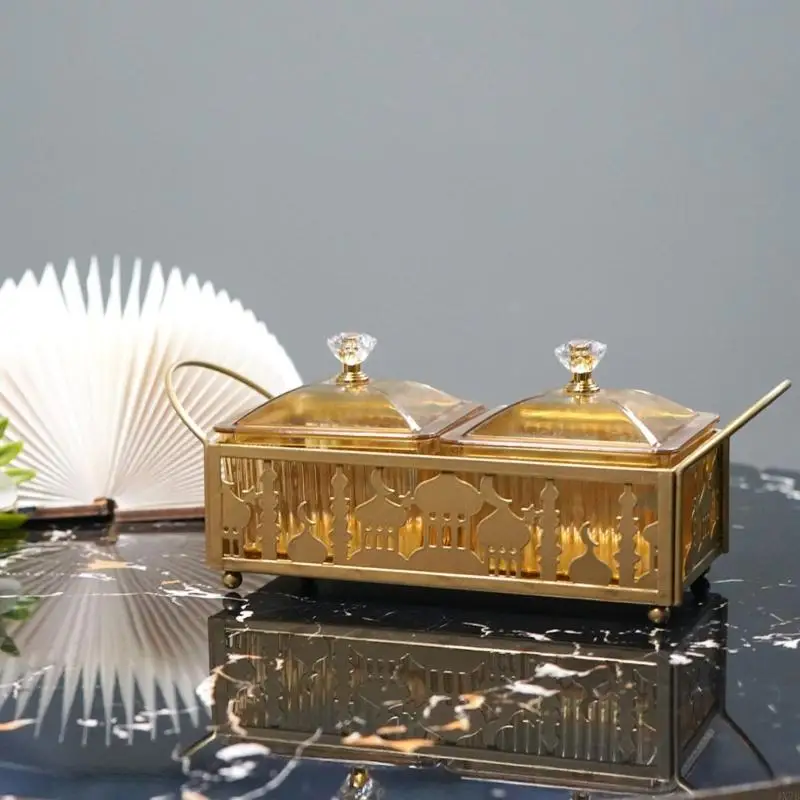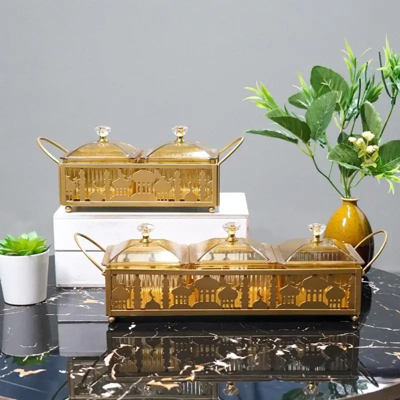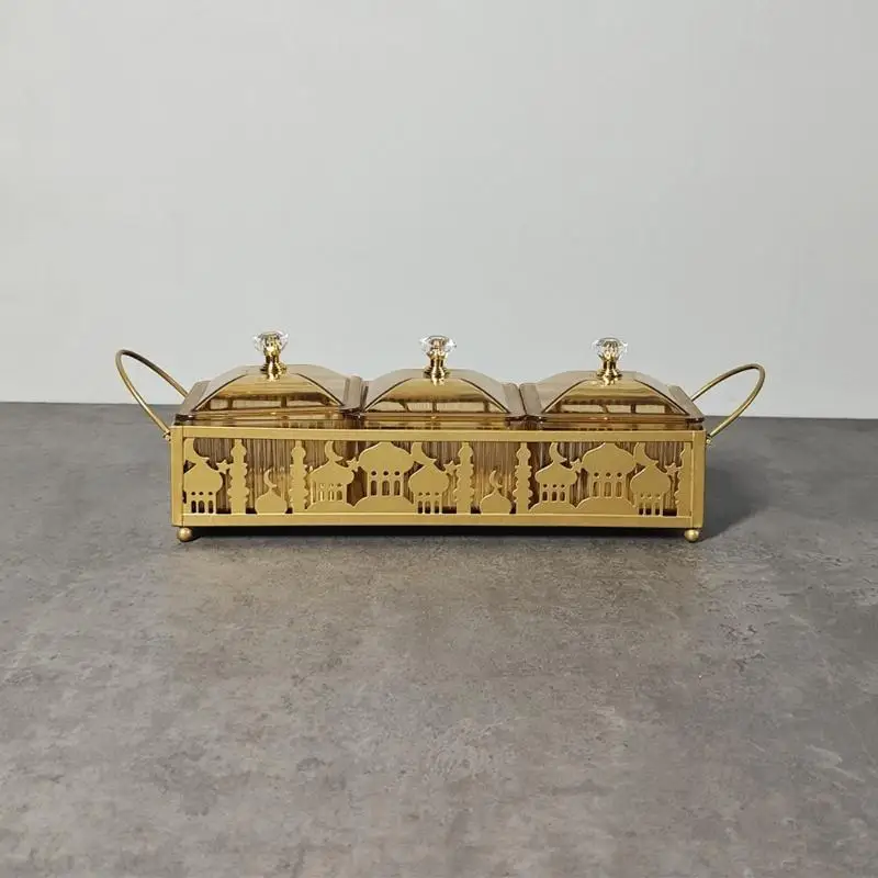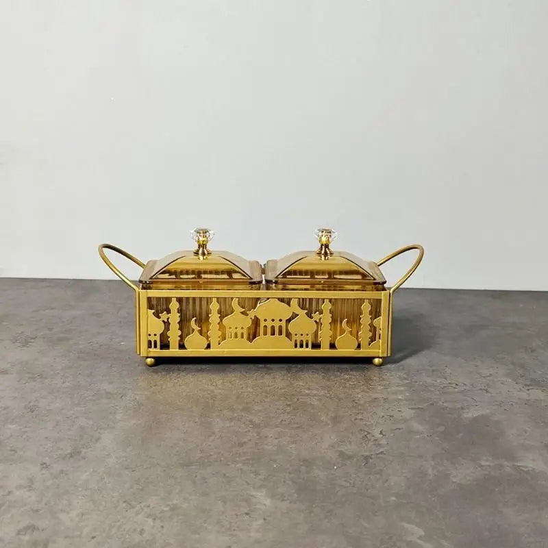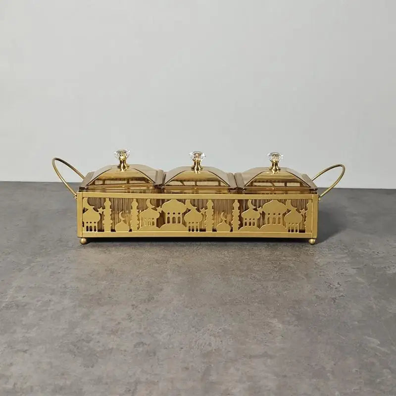 Elevates your eid celebration with our tray, features intricate designs and a golden hues that add elegances to any festival gathering.
