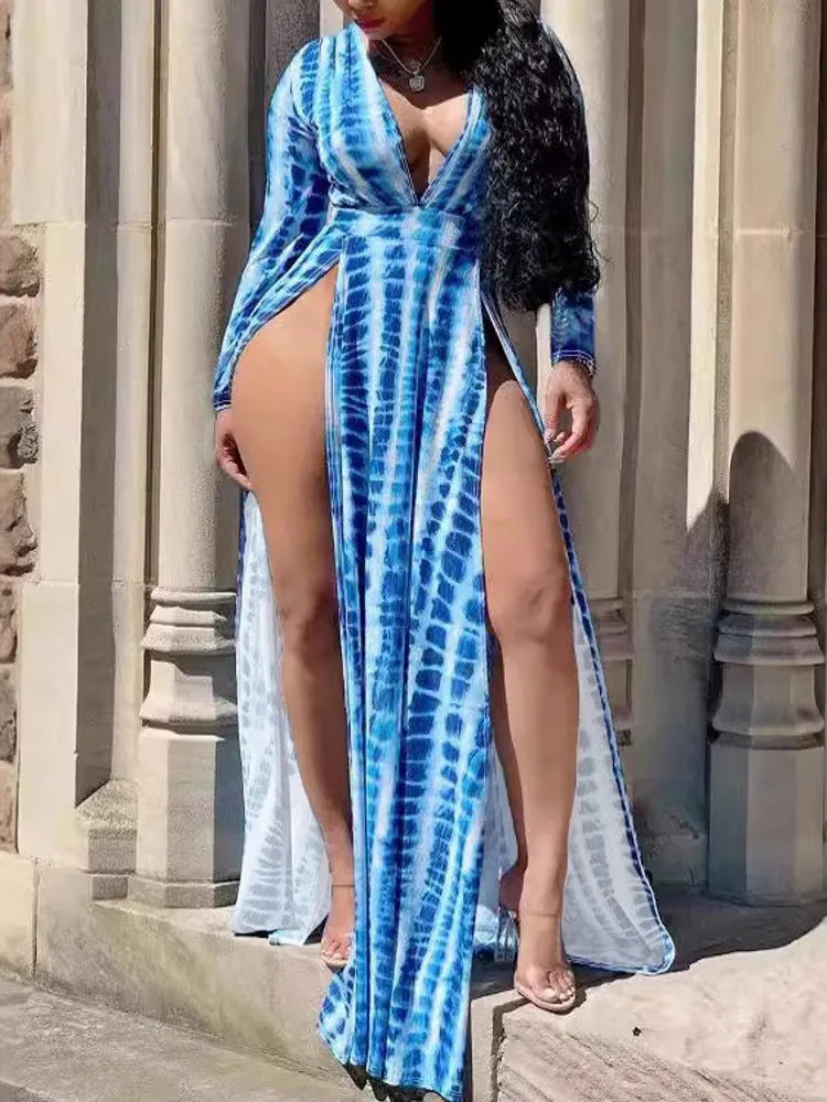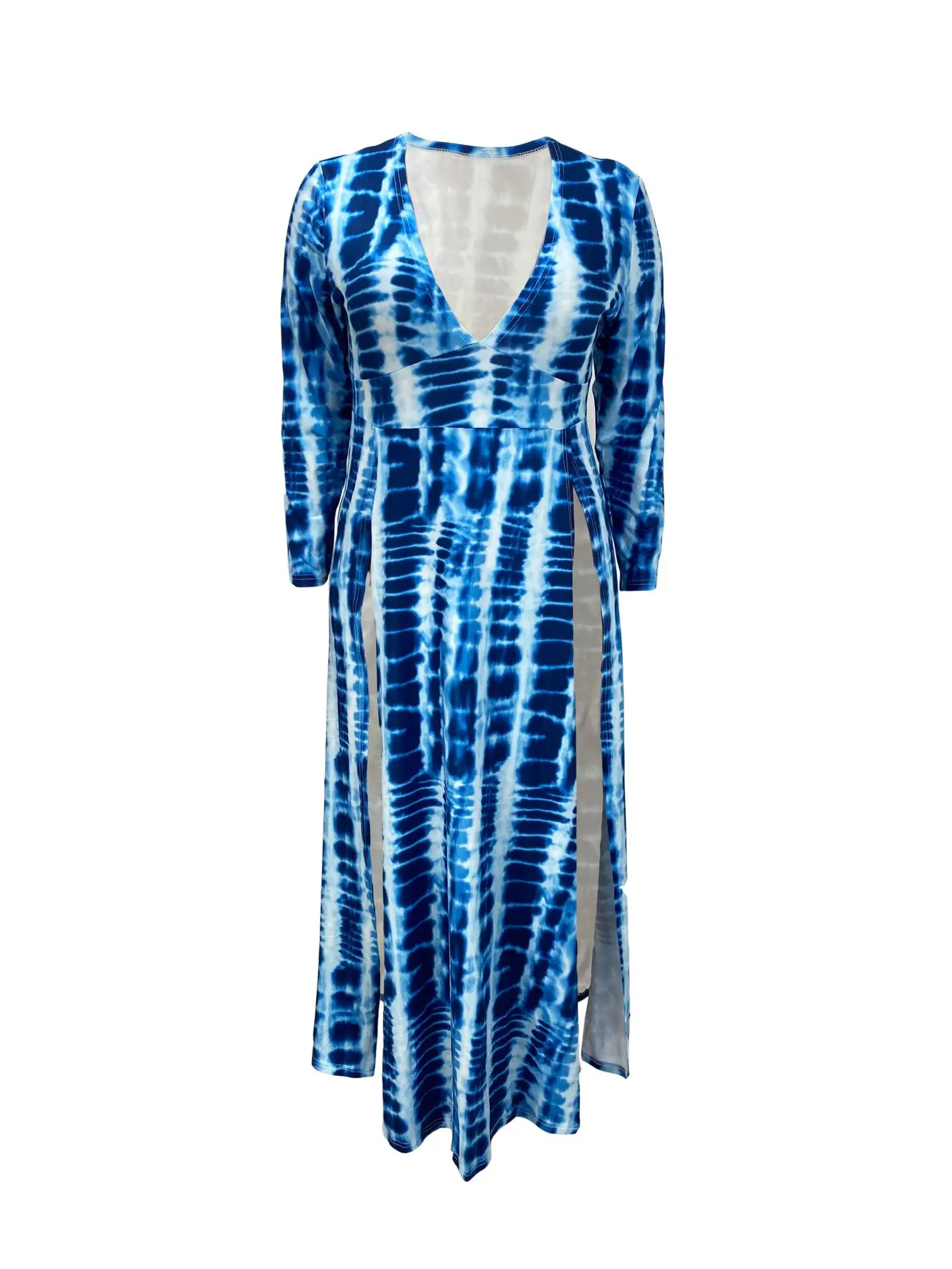 5XL 4XL Plus Size Clothes Dresses Women Split Robes Summer Autumn Print Loose Street Style Casual Big Size Maxi Dress 2025