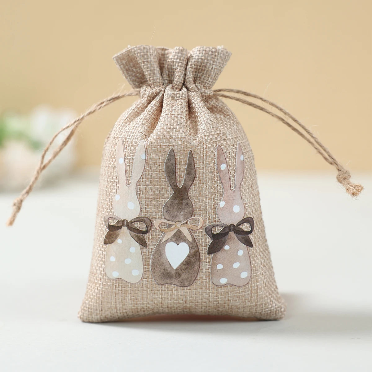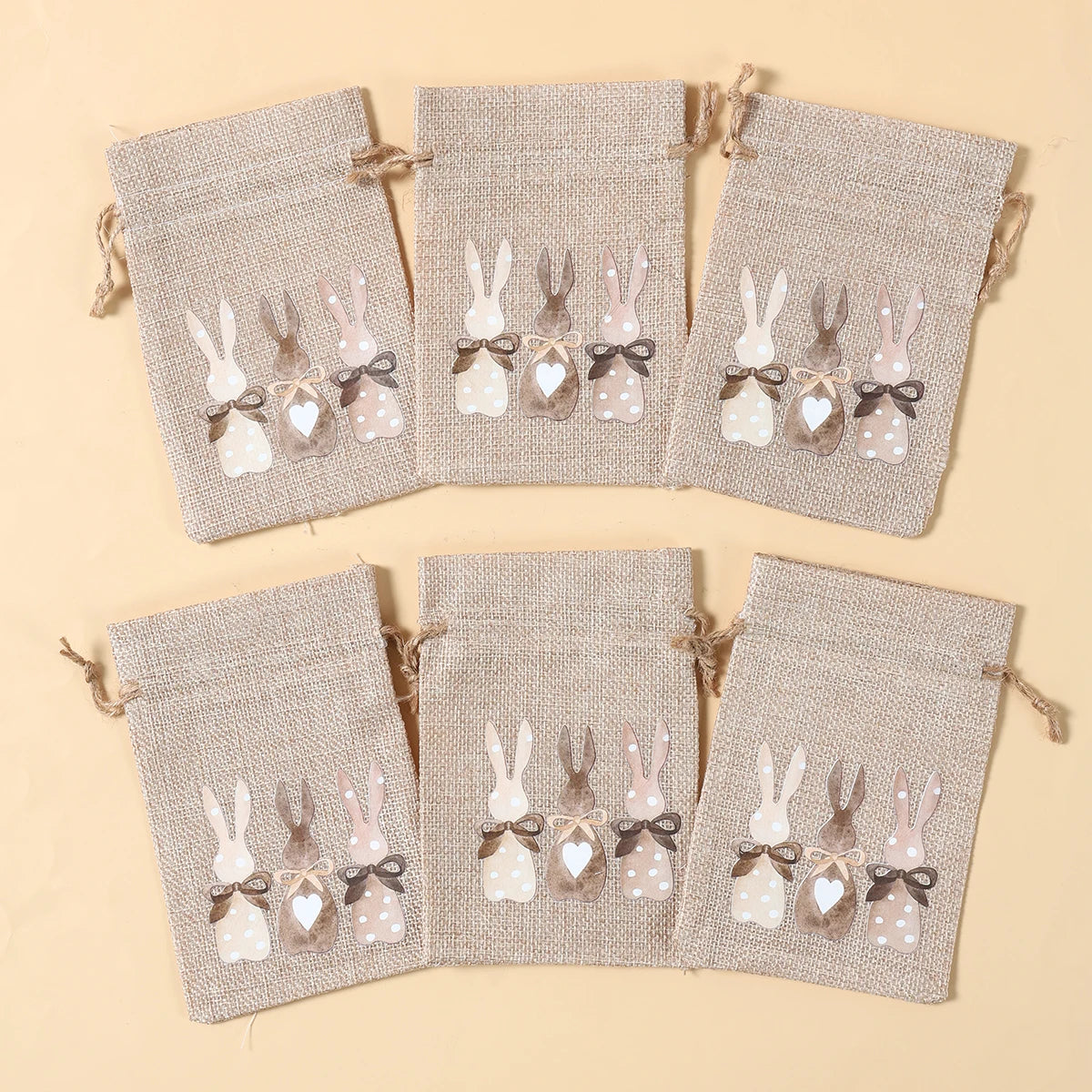 6Pcs Easter Linen Gift Bag Bunny Candy Cookie Packing Bag Spring Easter Party Favor Supplies Kids Candy Gifts Easter Decor 2025