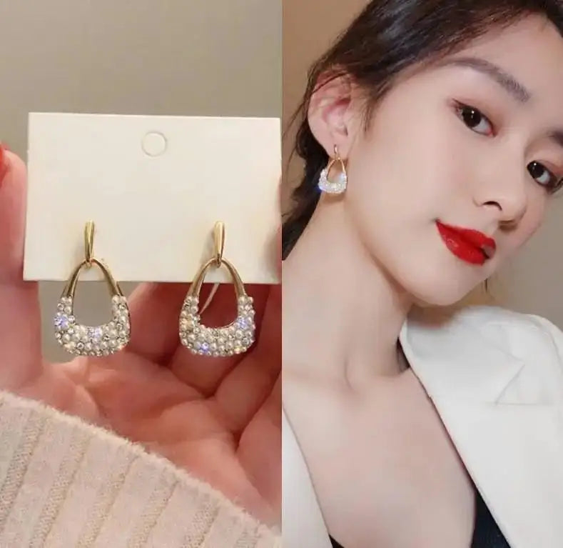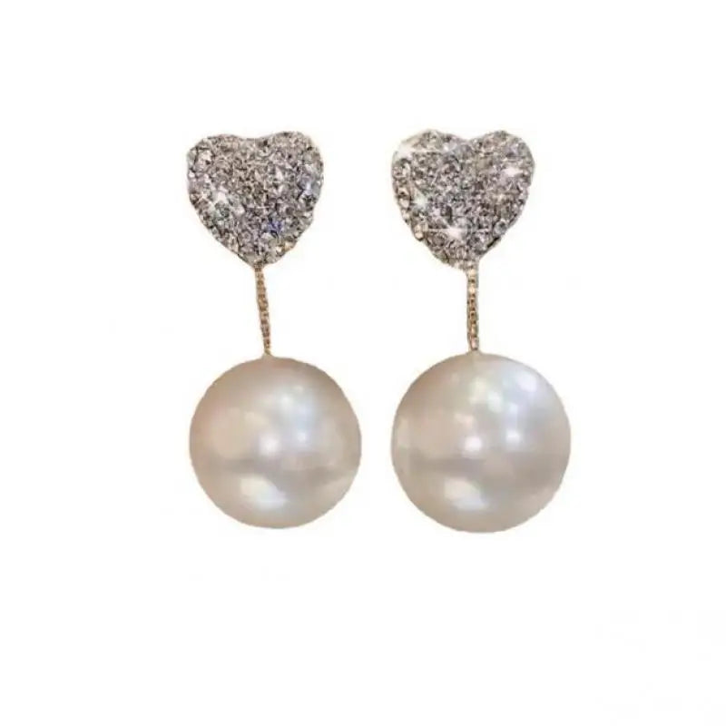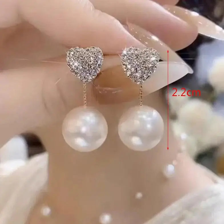 925 Silver Needle Korean Fashion Crystal Heart Earrings For Women Jewelry 2024 Trending Women's Red White Pearl Drop Earrings