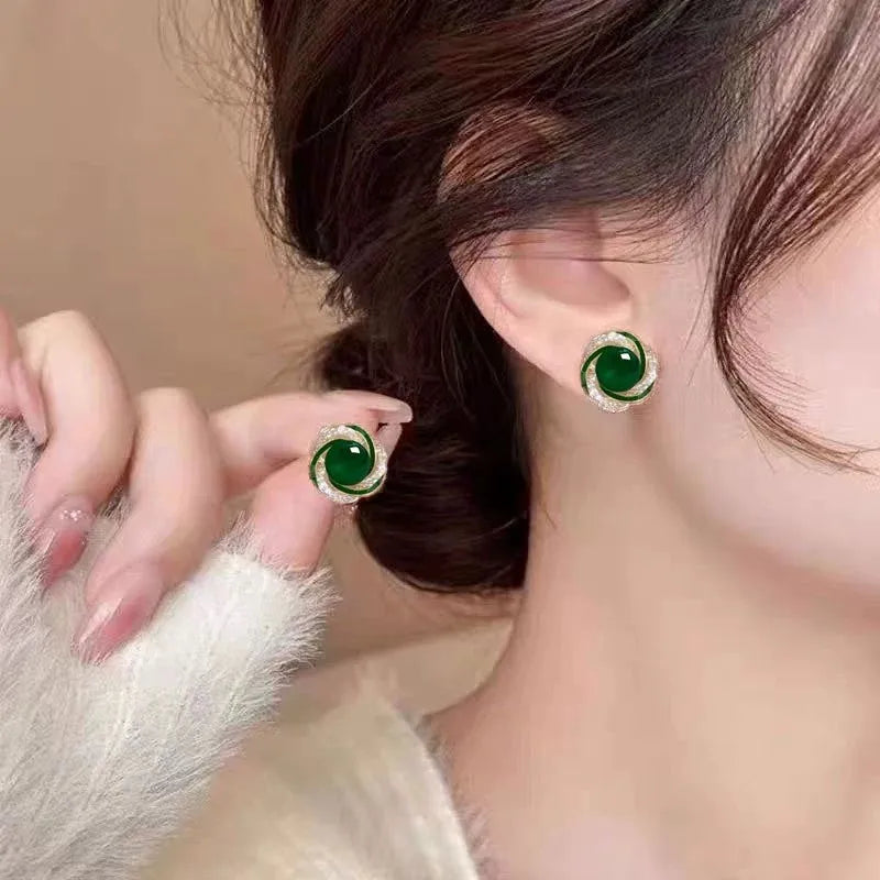 925 Silver Needle Korean Fashion Crystal Pearl Earrings For Women Jewelry 2024 Trending New Red Green White Flower Stud Earrings