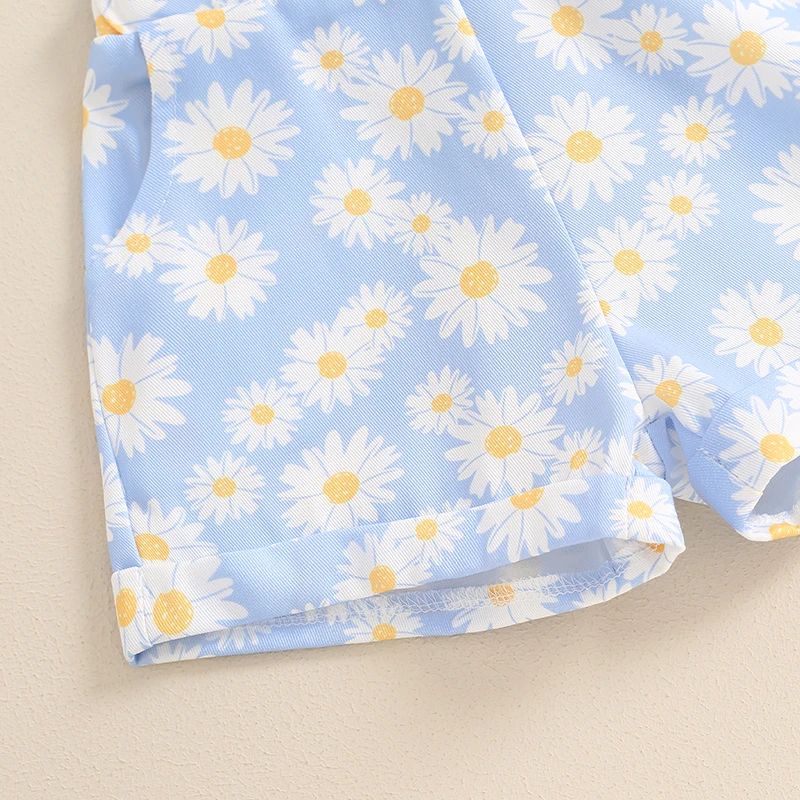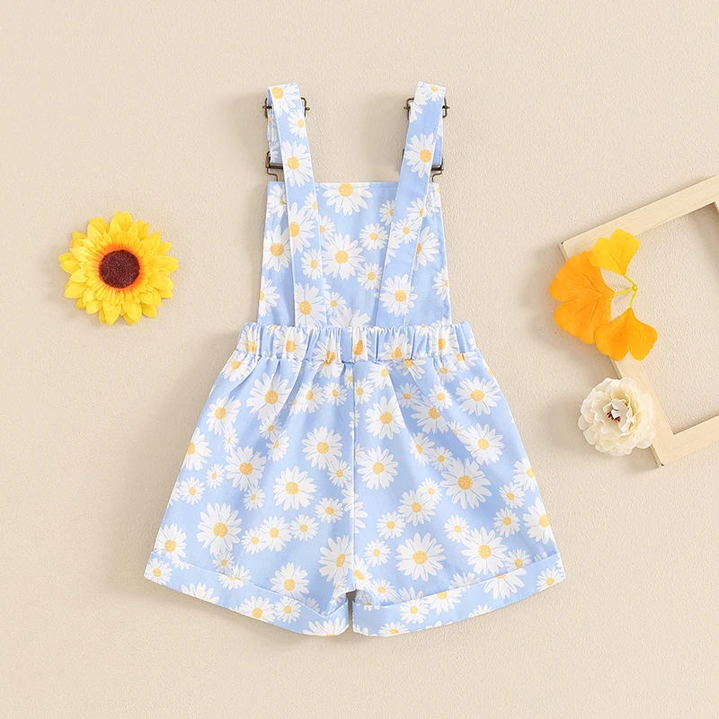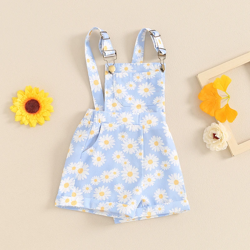 Little Girl Overall Shorts Casual Summer Daisy Print Sleeveless Romper Jumpsuit for Newborn Toddler Cute Clothes