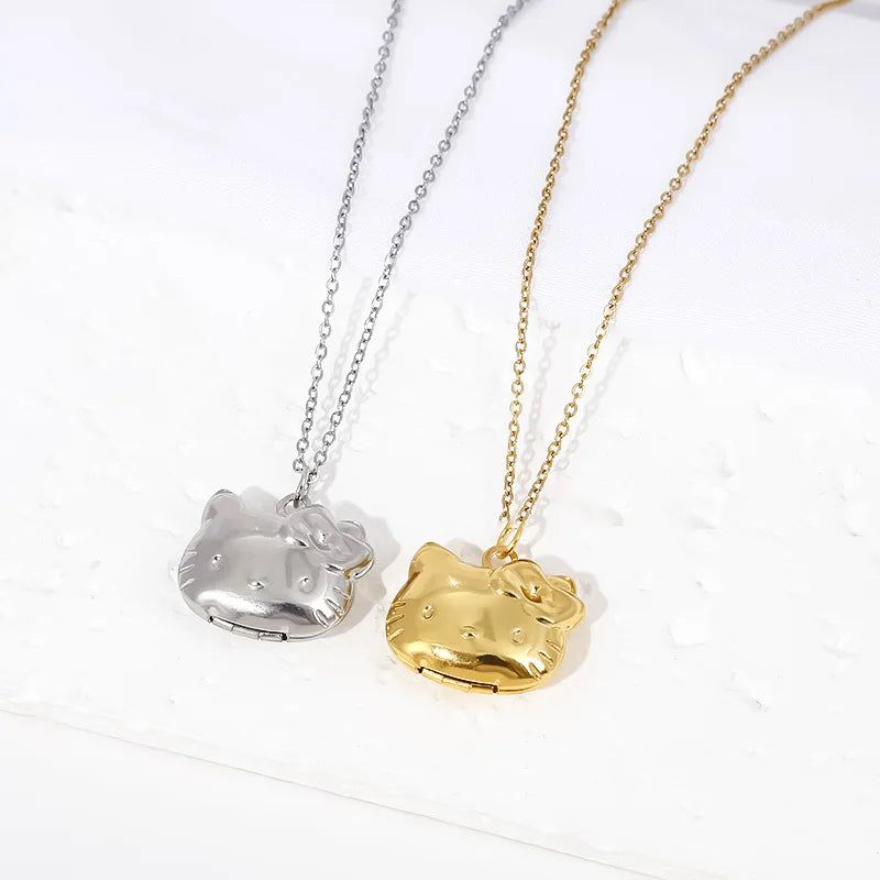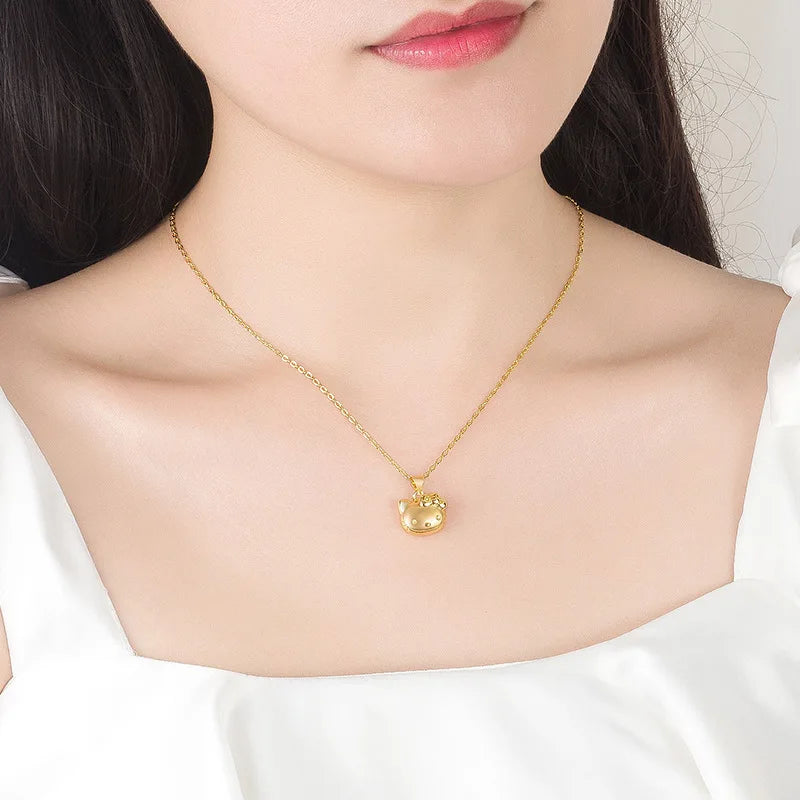 Anime Hello Kitty Sanrio Necklace Y2K Collar Kawaii Adjustable Pendant Golden Silvery Colour Jewelry Accessory Girl Gift