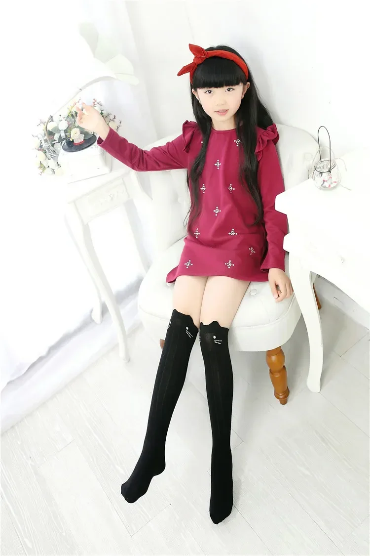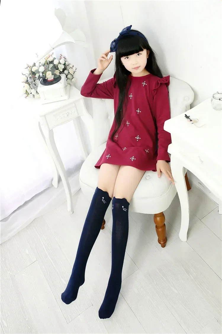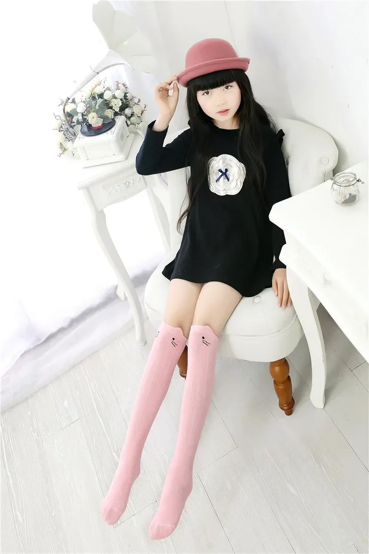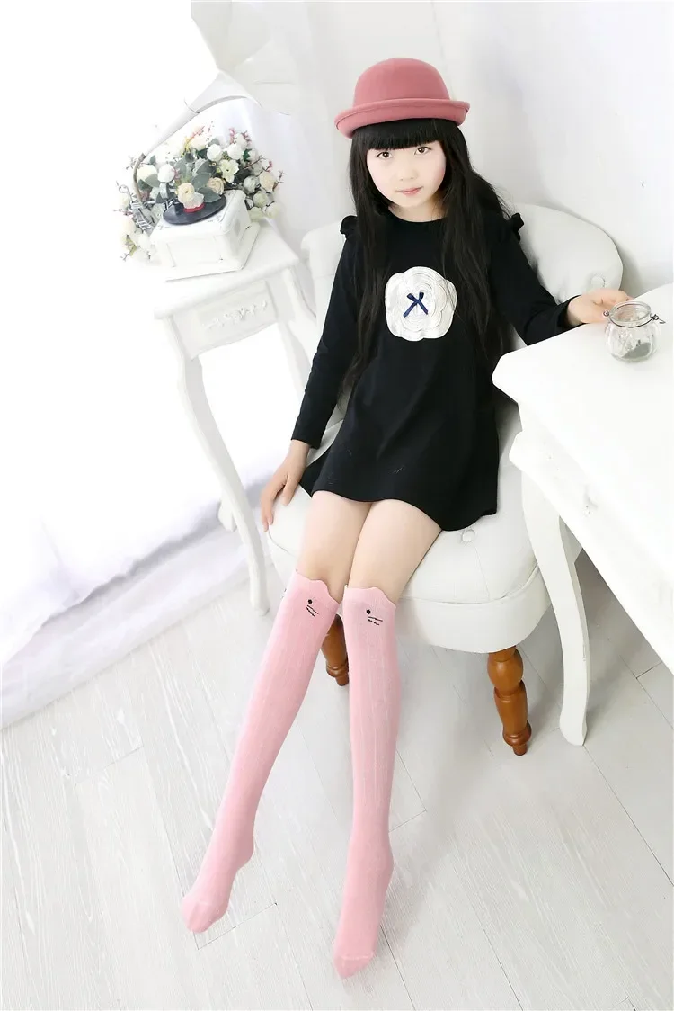 Baby Boys Girls Sports Knee High Long Socks Cartoon Cat Kids Stockings Cotton Children School Uniform Socks Clothing Accessories