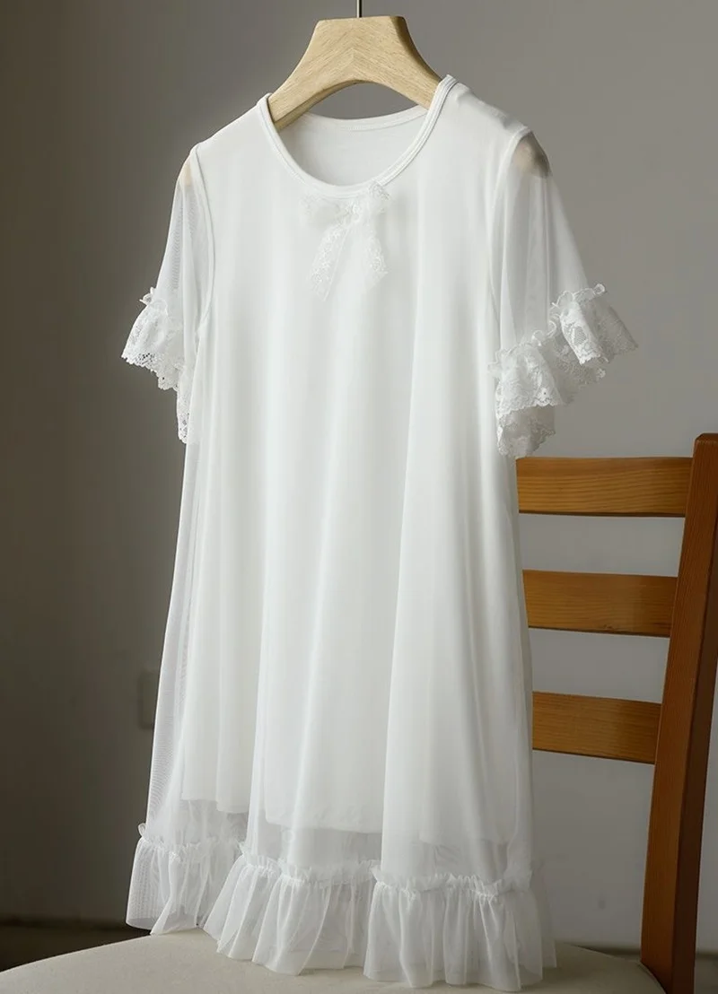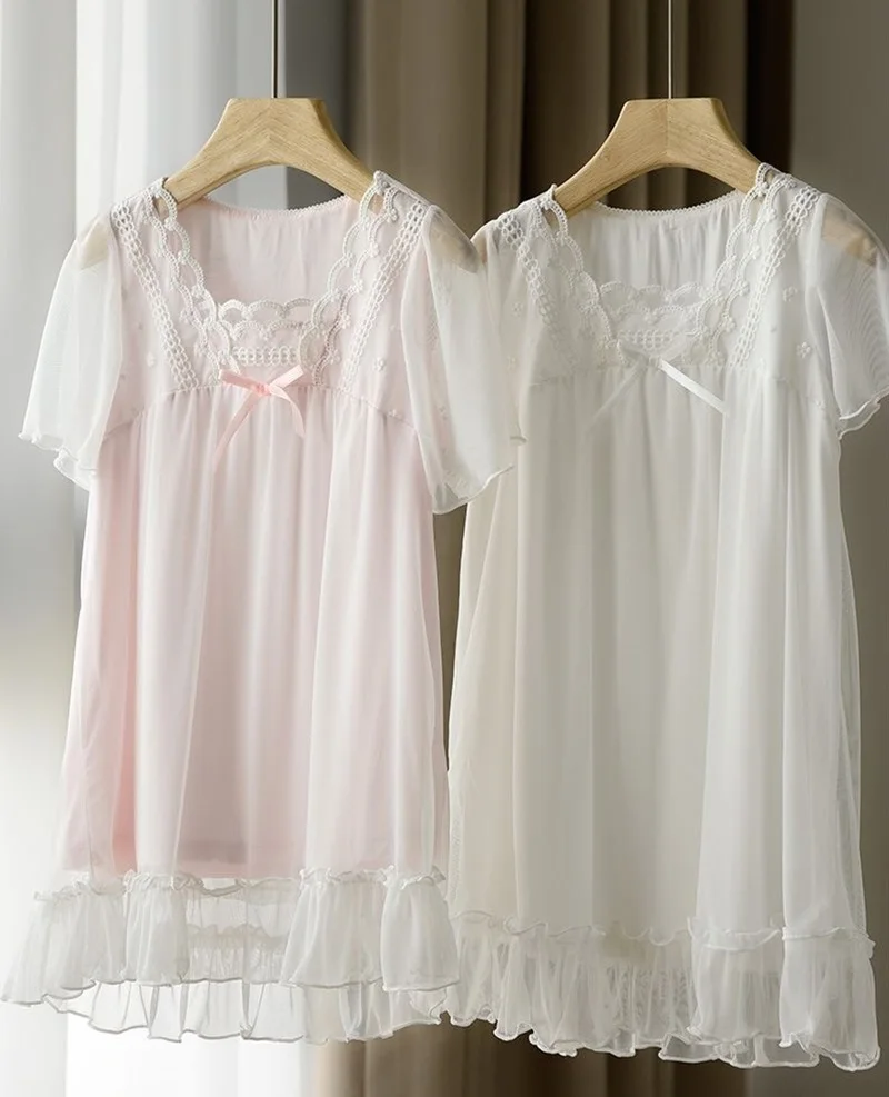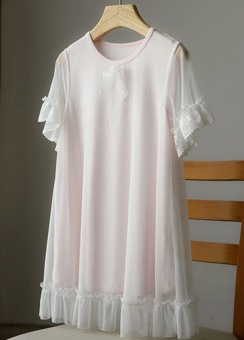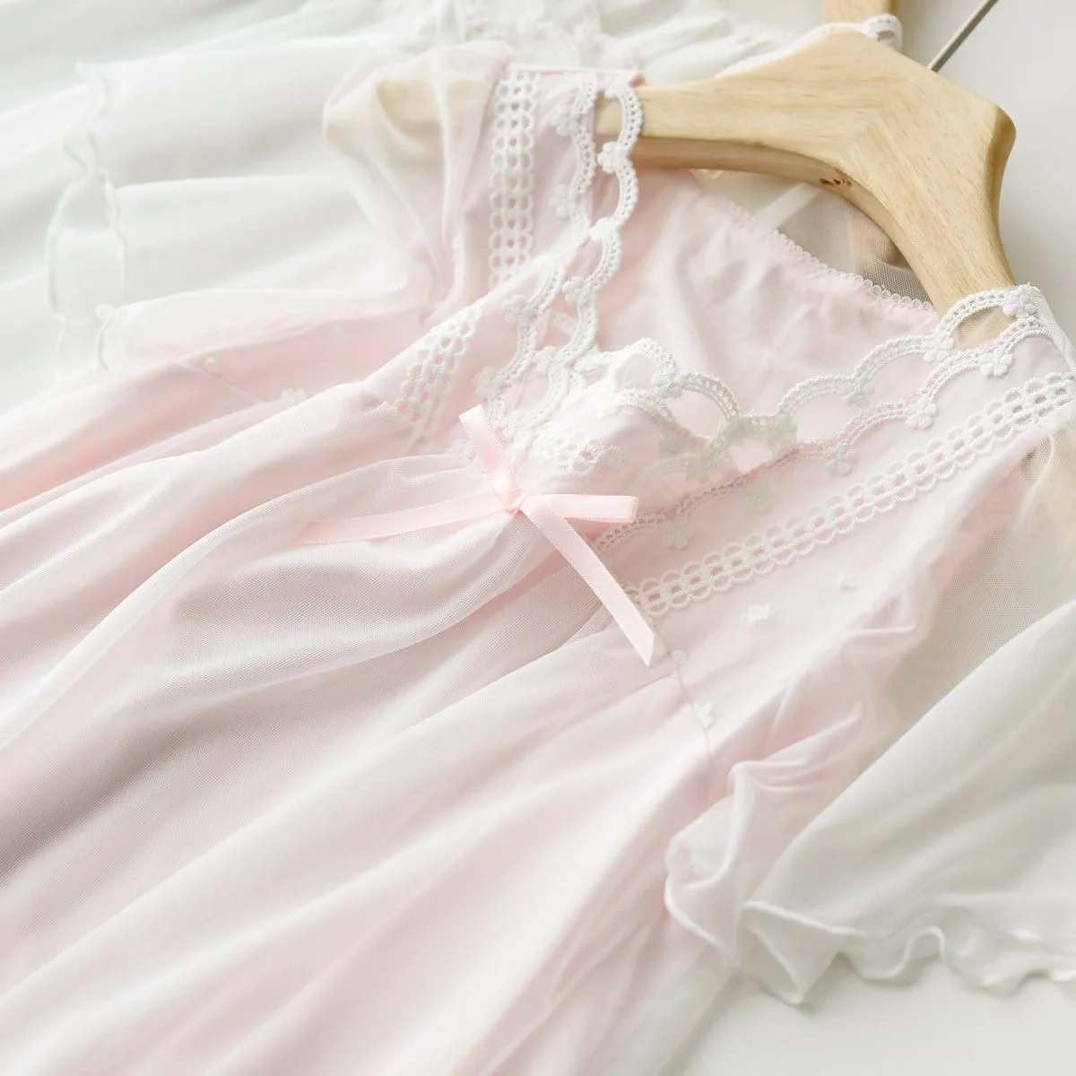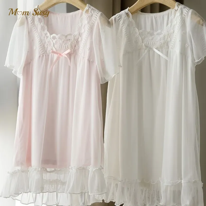 Baby Girl Princess Cotton Lace Night Robe Summer Toddler Teens Child Pajamas Dress Bow Baby Home Suit Child Clothes 3-14Y