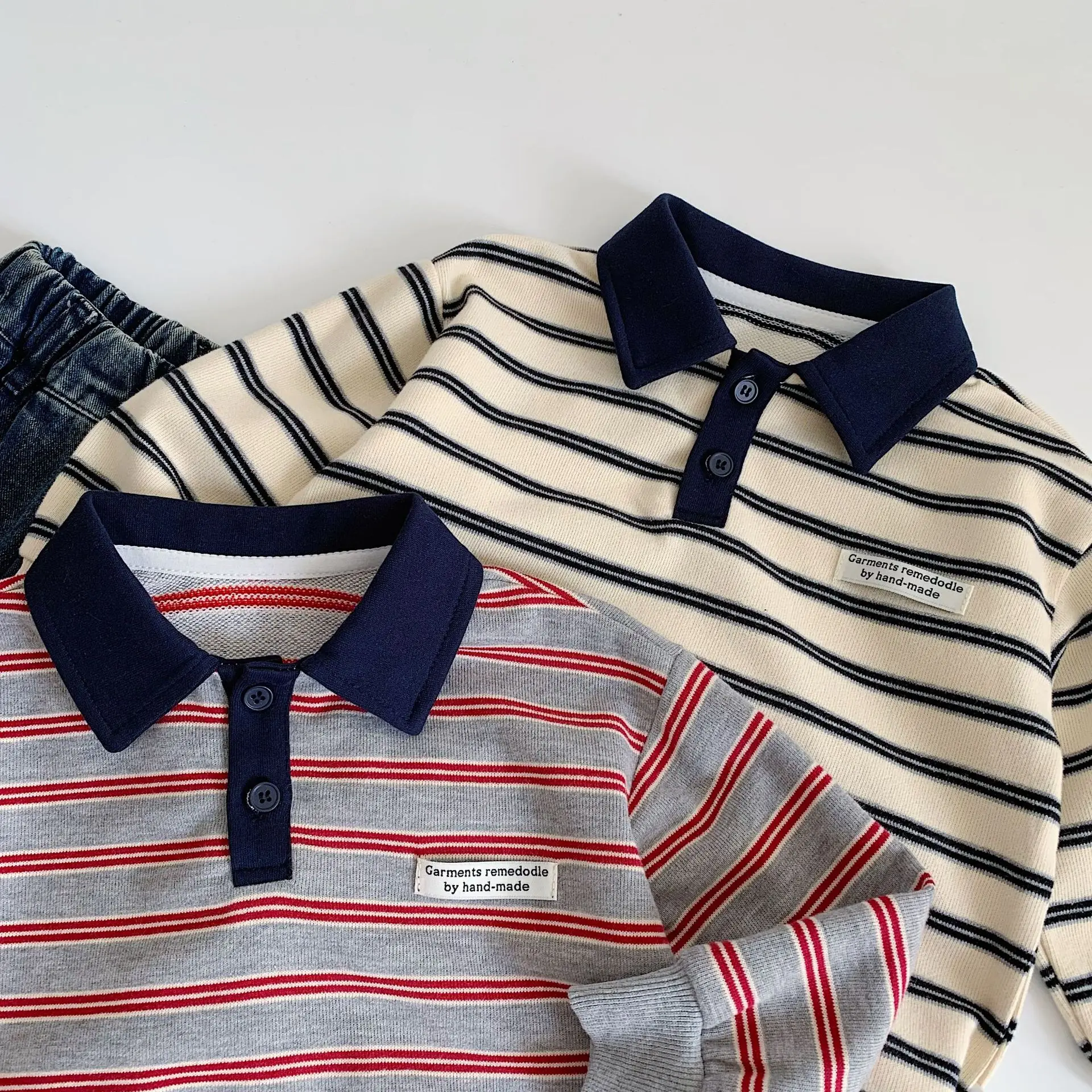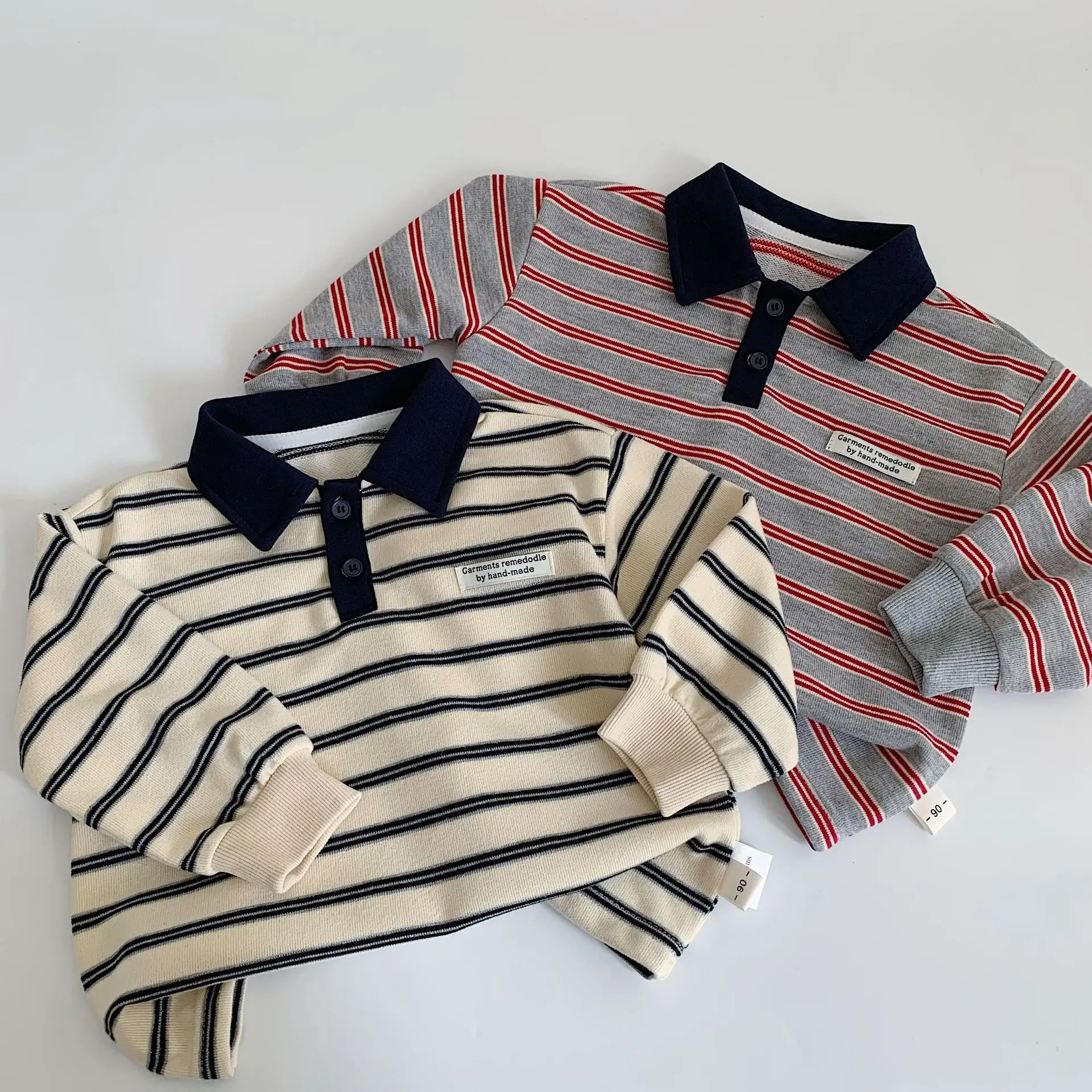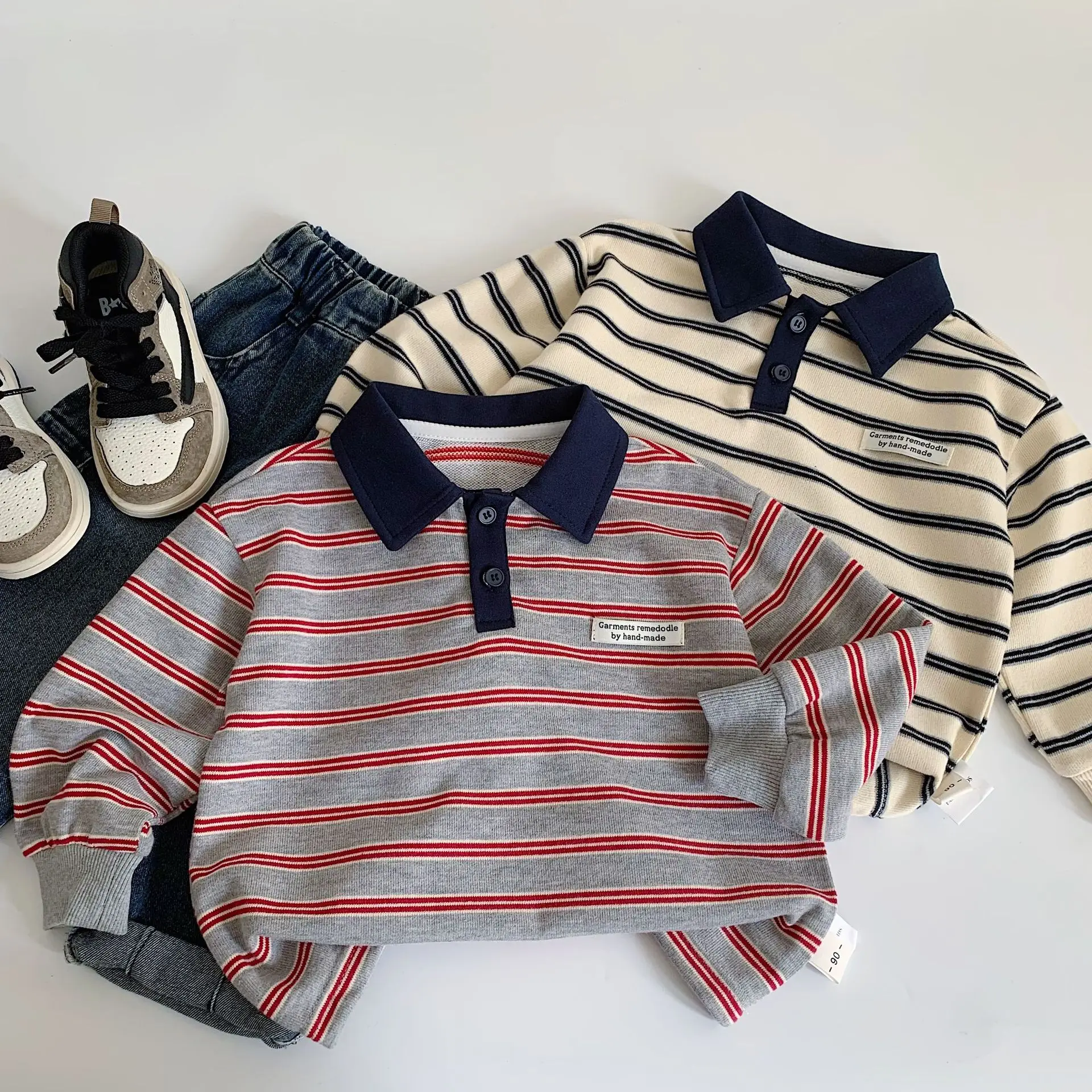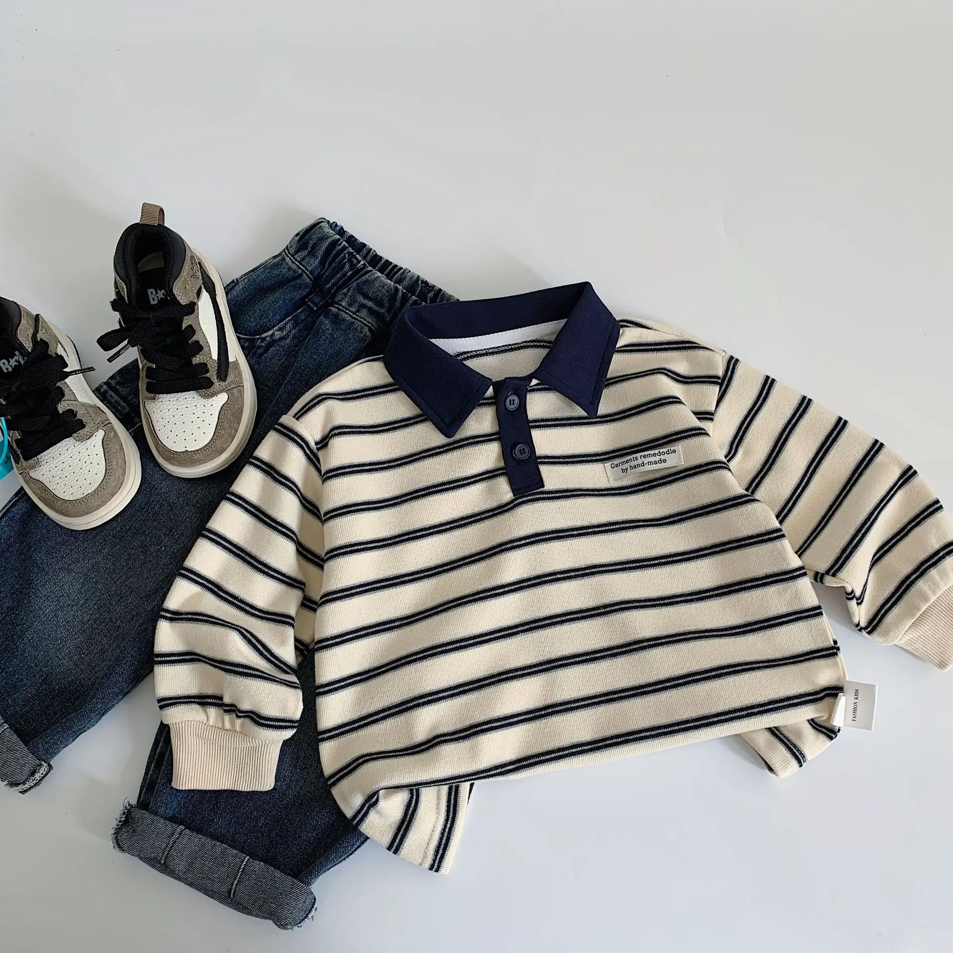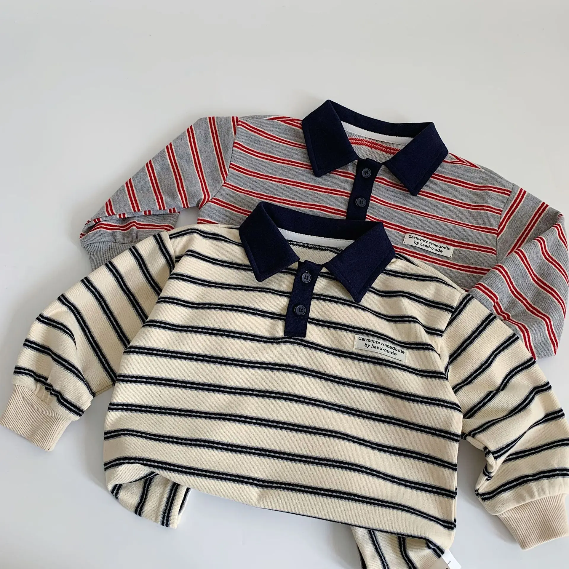 Baby Girls Boys Polo Shirts Kids Long Sleeved Sweatshirt Striped Printed Tops Spring Autumn Children's Clothing Casual