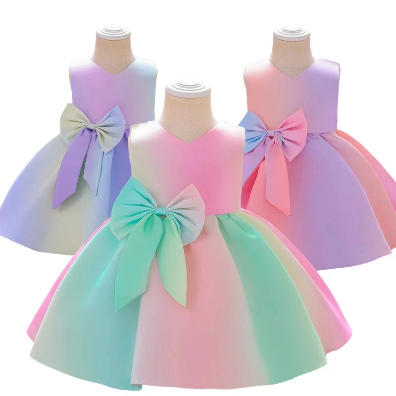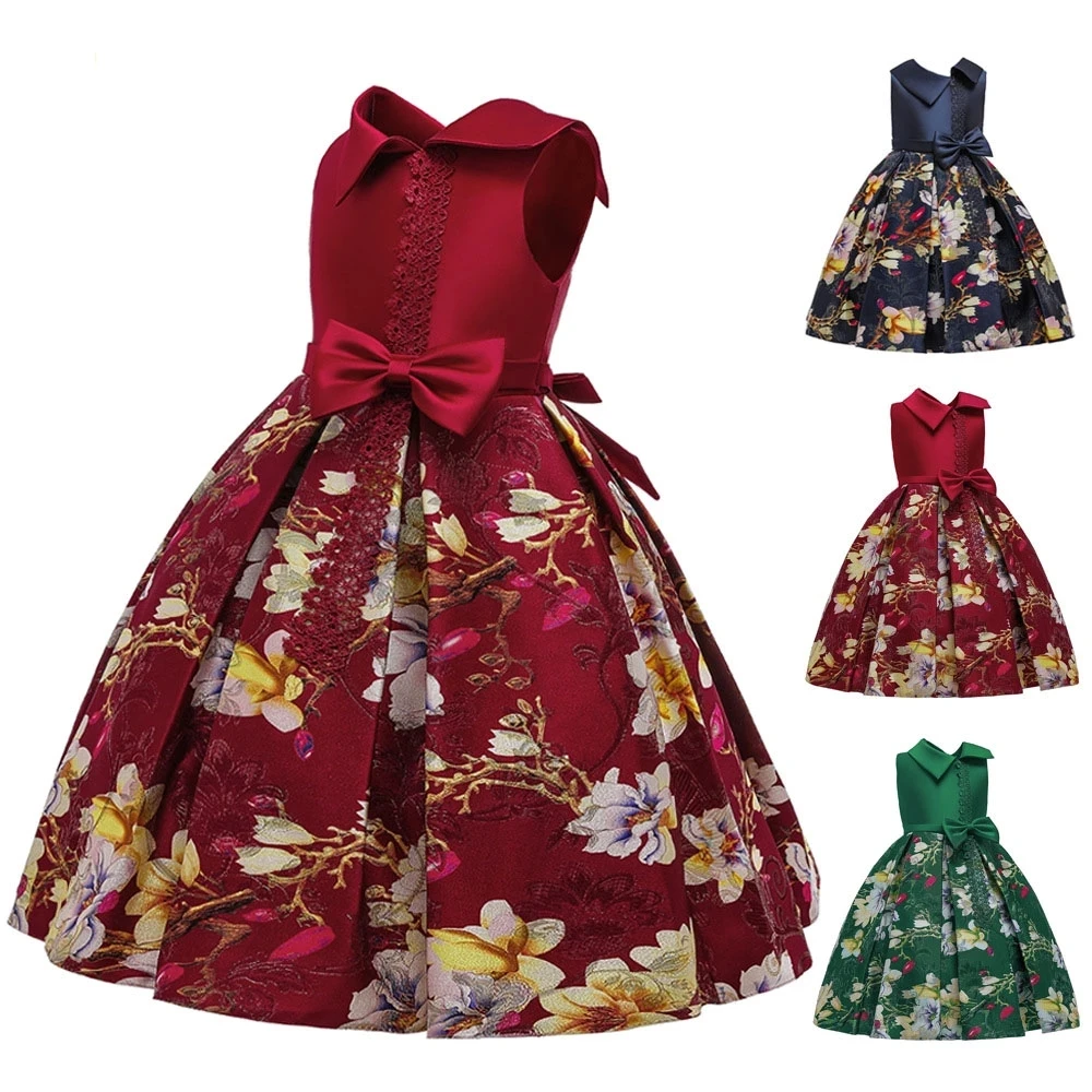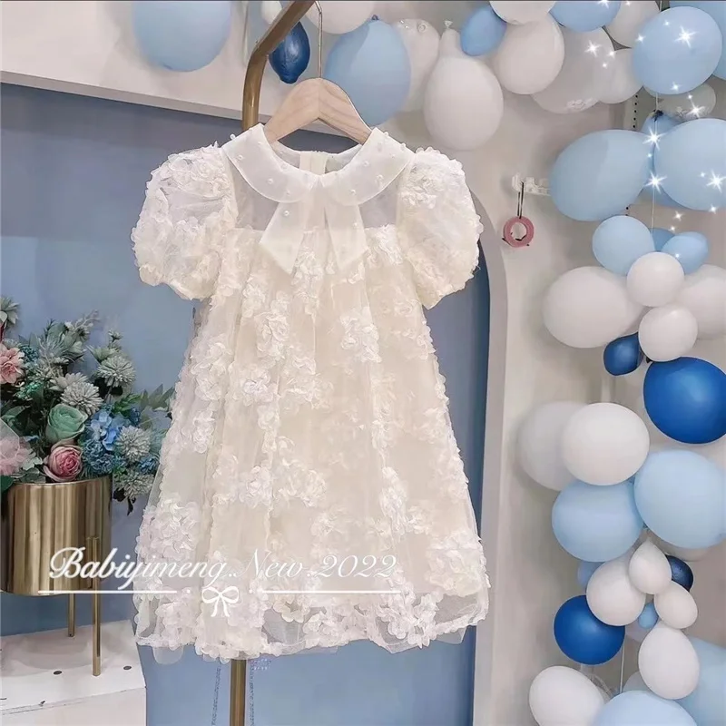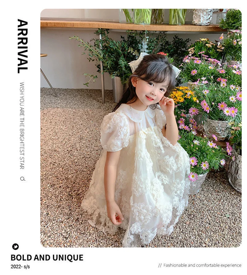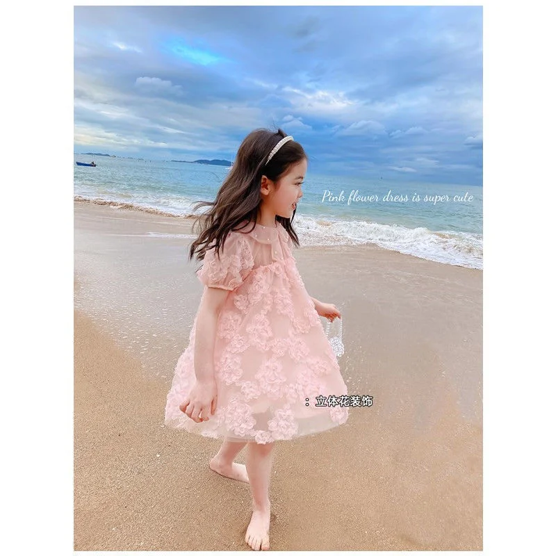 Baby kids Girls 3D Flowers Dress Summer Beaded Collar 2-8 Y