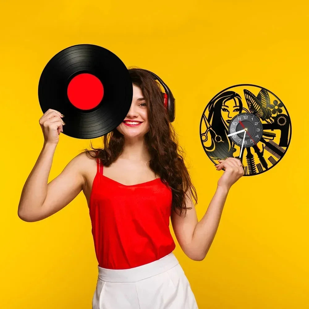 All clocks are made of 12 inch (30 cm) recycled vinyl records. We wish to give them new life but we care about the environment.
