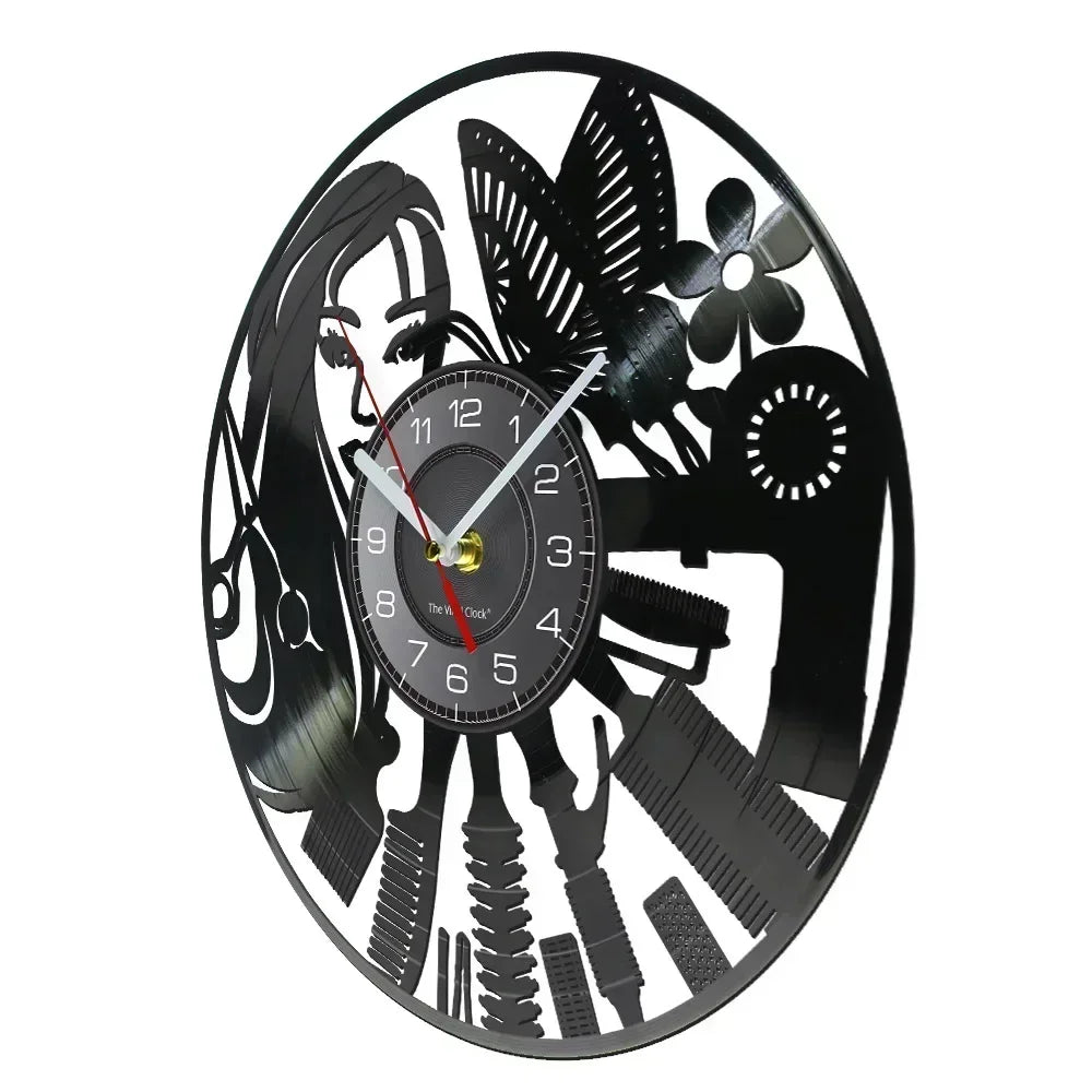 Barber Shop Sign Silent Haircutting Wall Clock Hairdressing Beauty Salon Design Vinyl Record Clock Watch Barber Shop Wall Decor
