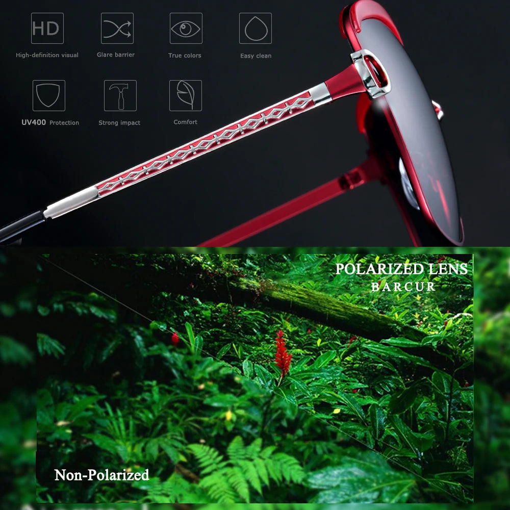 BARCUR Polarized Ladies Sunglasses Women Gradient Lens Round Sun Glasses Square Luxury Brand Oculos Lunette De Soleil Femme