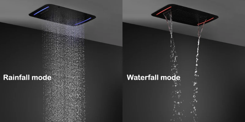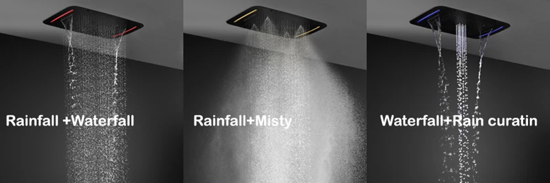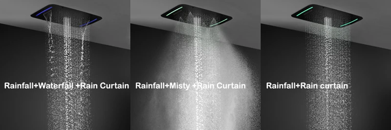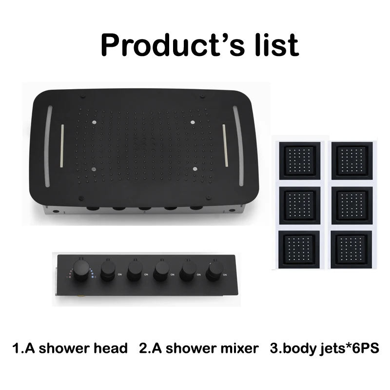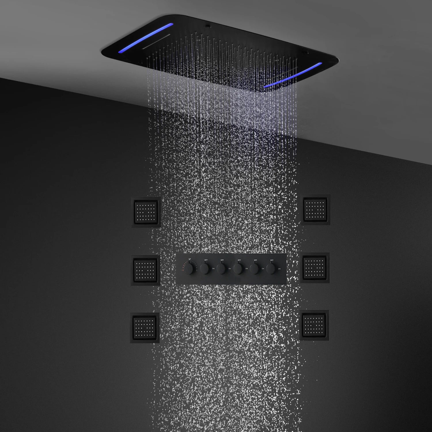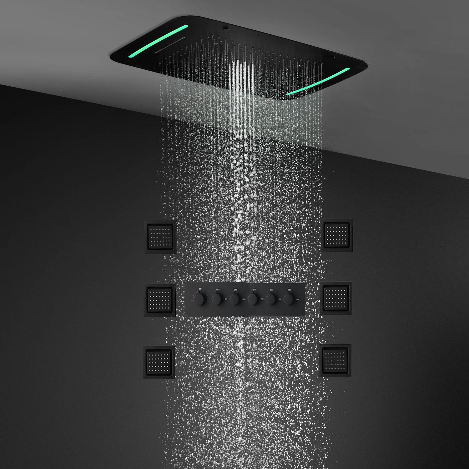 Bathroom Accessories Ceiling Black Shower Set LED Rain Showerheads System 5functions Thermostatic Valve Faucets Massage Body Jet
