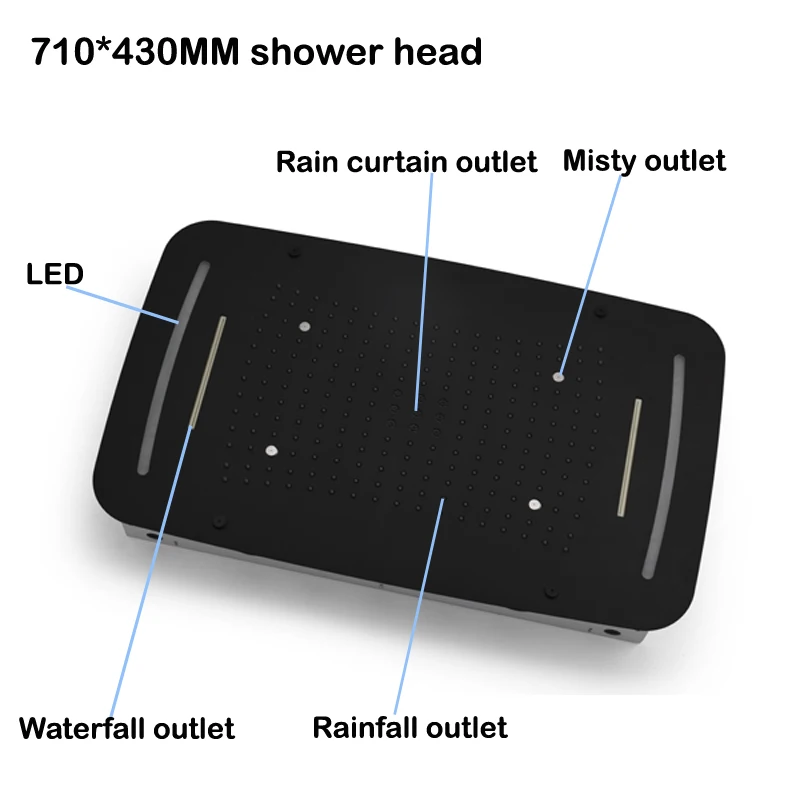 If you choose the shower head is without music ,the shower head size is 430*710MM.