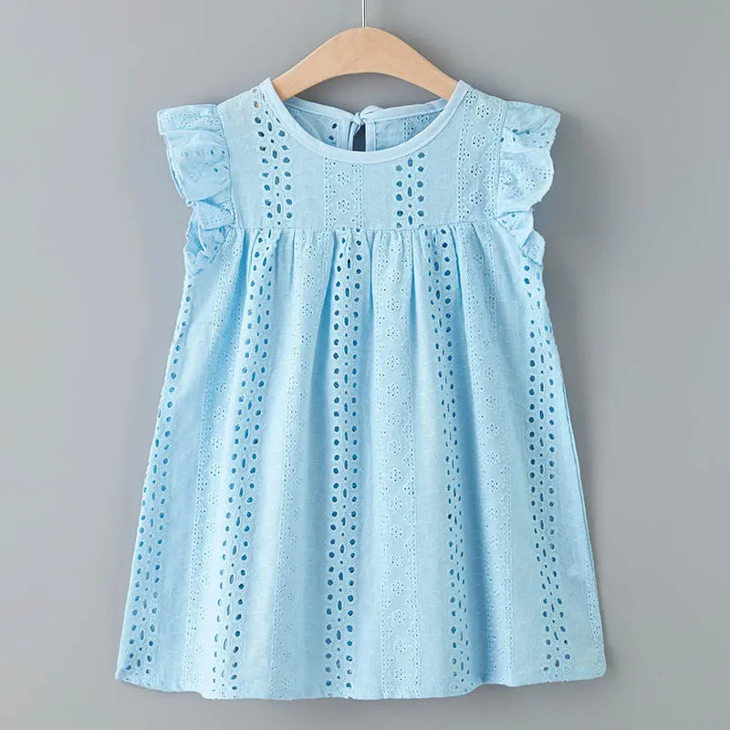 Bear Leader Girls Flower Embroidered Dress Summer Retro Flying Sleeve Princess Dresses Children Casual Clothes Fashion 2-6 Years