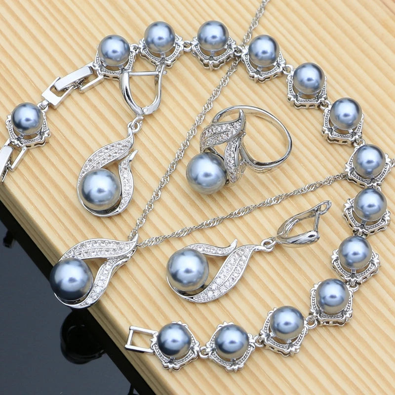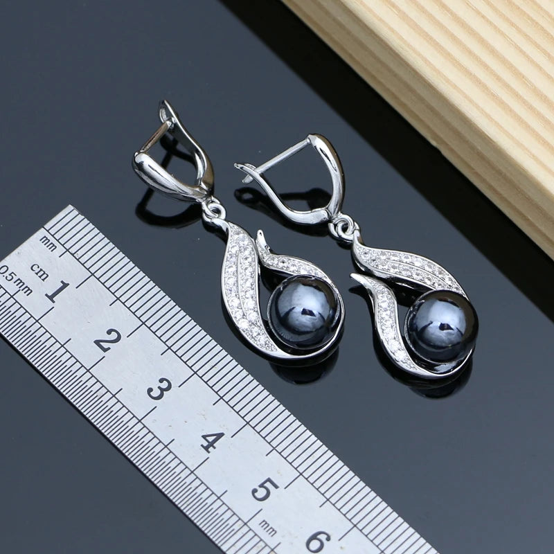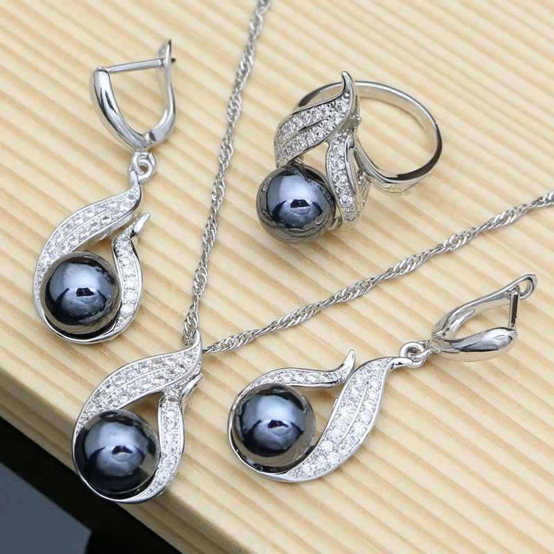 Black Pearls 925 Silver Jewelry Sets for Women Luxury Pearl Beads Bracelet Line Design Earring Ring Necklace for Lady Party Gift