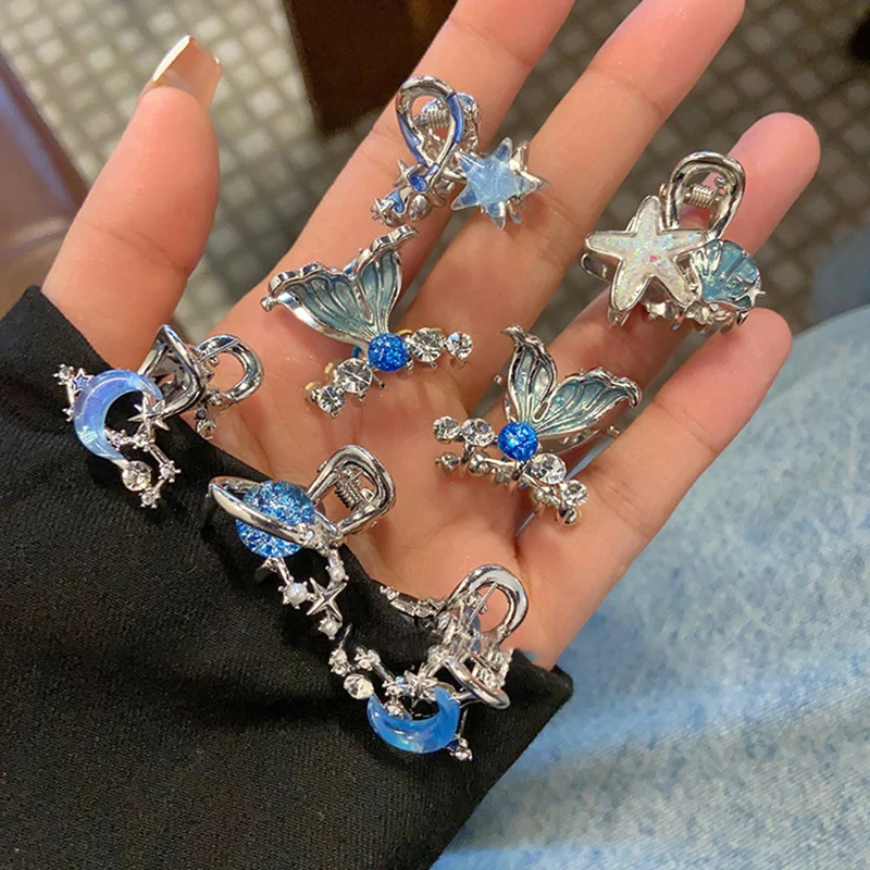 Blue Star Moon Small Claw Women Bangs Side Small Metal Hair Clip Exquisite Compact Girls Spring and Summer Hair Accessories
