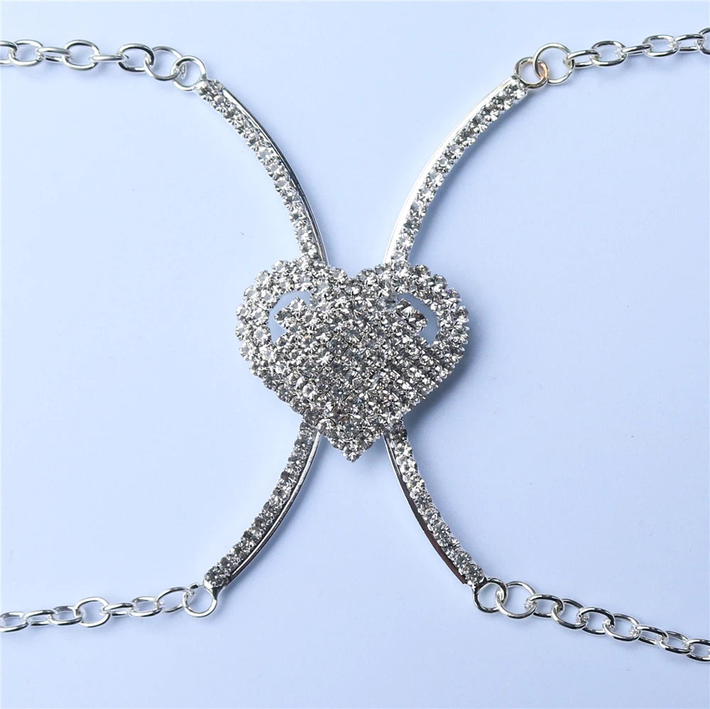 Bra Chest Bracket Pendant Heart Bras Chain Necklace Body Jewelry Rhinestone Top Fashion Gift Beach Bikini Swimwear 2023 Women