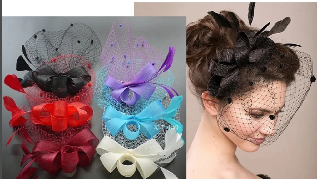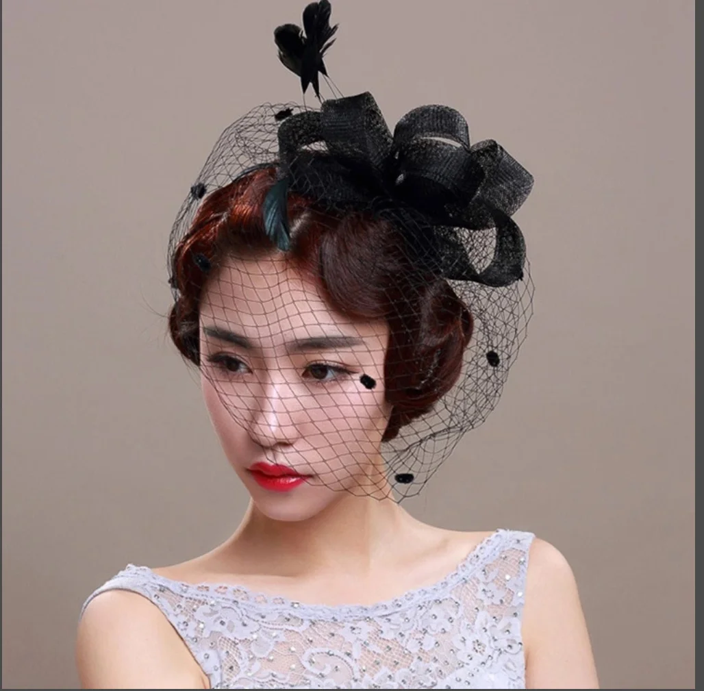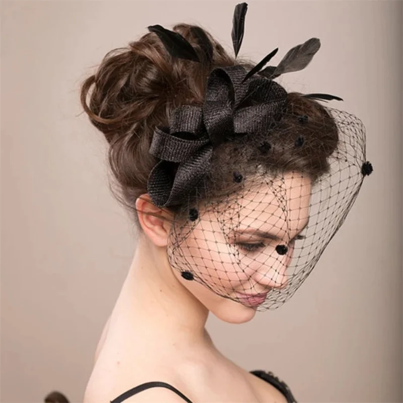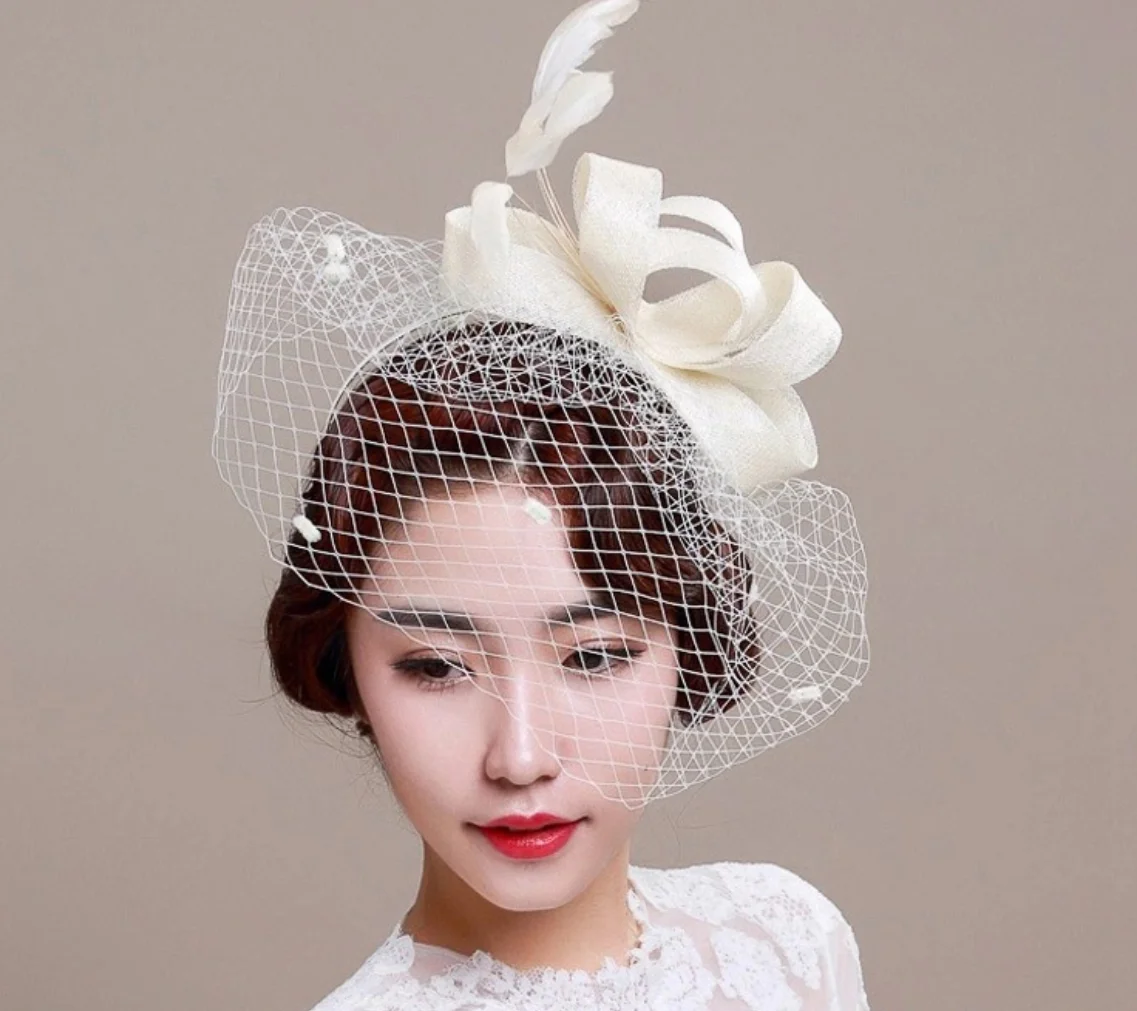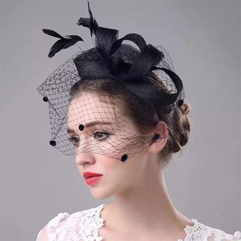 Bridal Net Birdcage Face Veils Wedding Party Feather Vintage Bridal Fascinators Hair Accessories Brides Blusher Vieil Headpiece