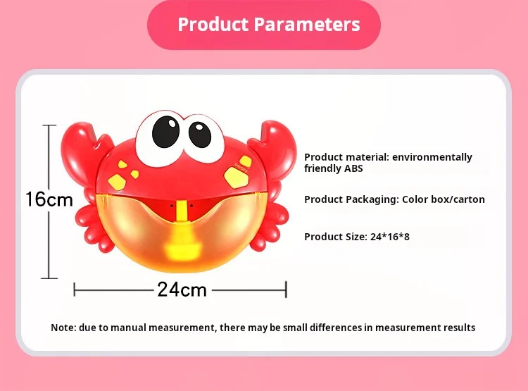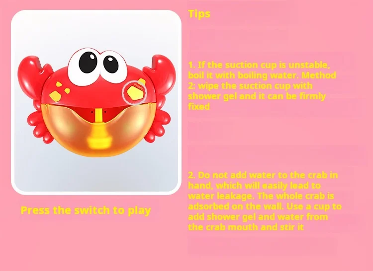 • Fun Bubble Maker :This Bubble Crab baby bath toy is a fun and entertaining way to add bubbles to your child's bath time. It's a playful toy that can make bath time more enjoyable for your little one.