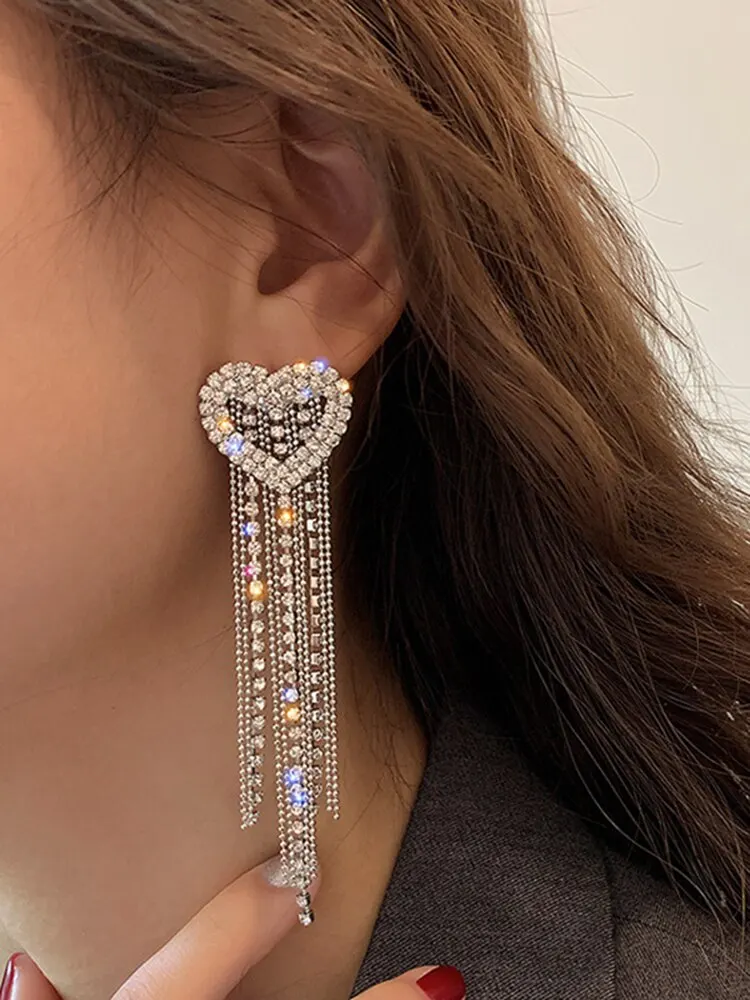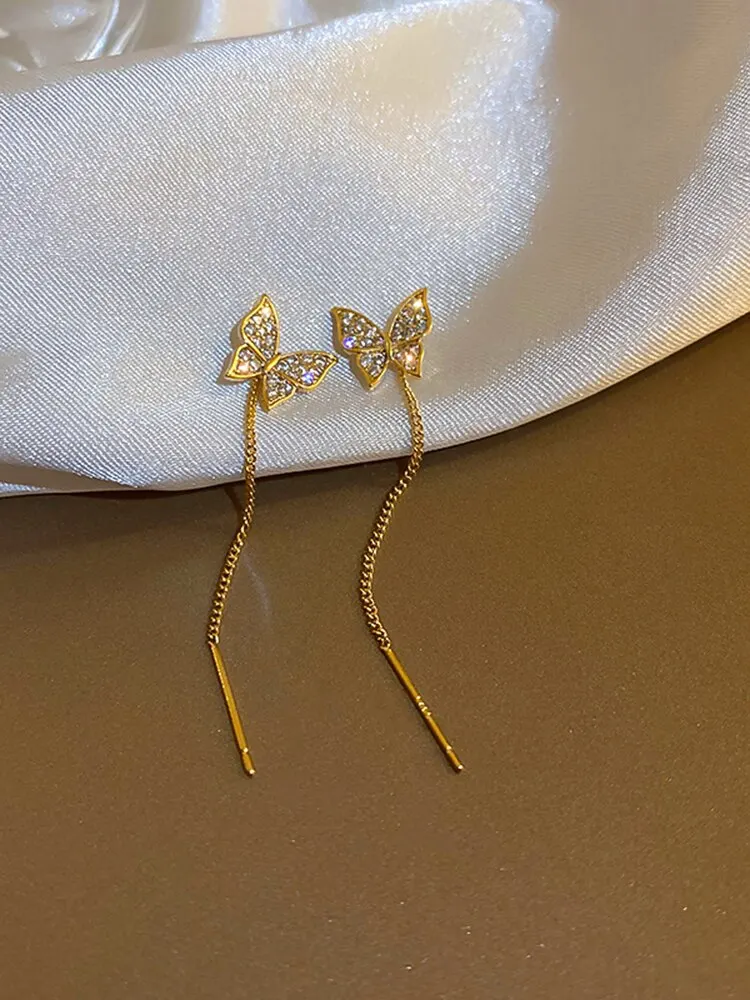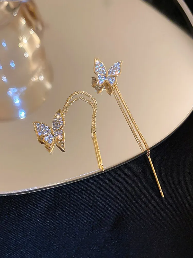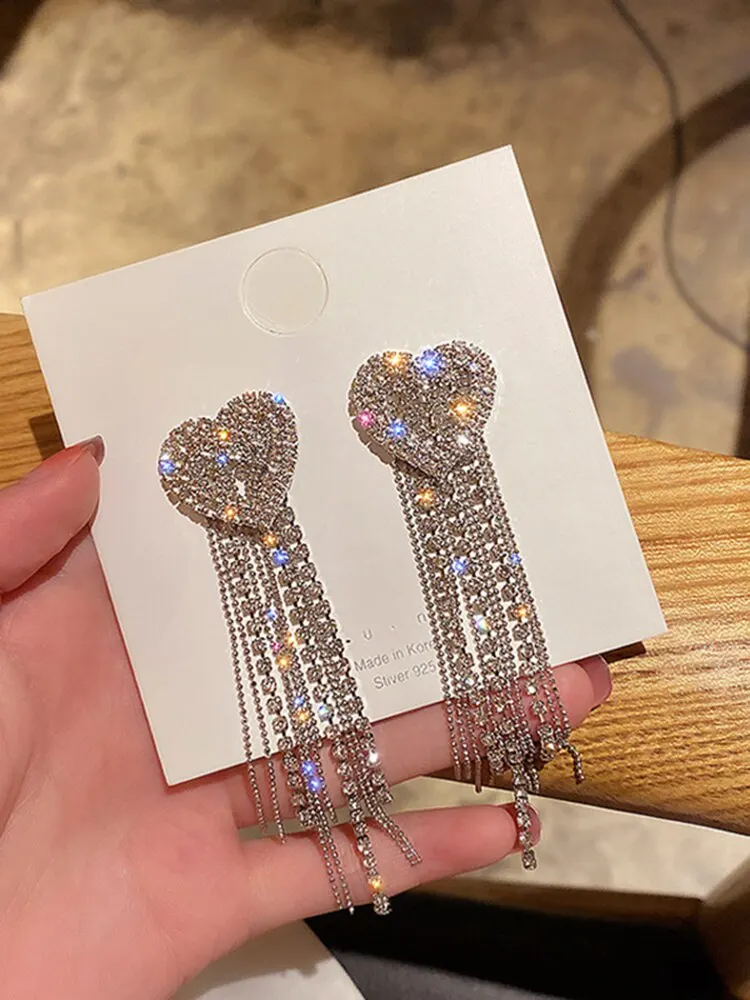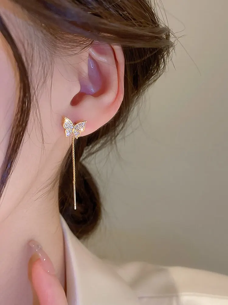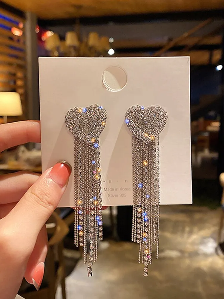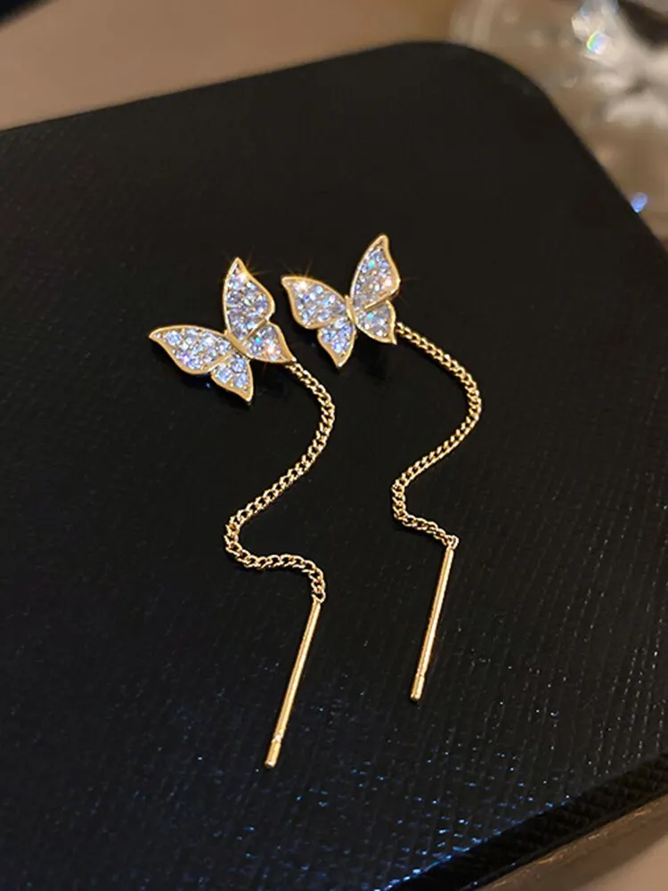 Butterfly Earrings For Women Sparkly Rhinestone Long Tassel Earrings Heart Drop Earrings Wedding Party Jewelry Valentine Gifts