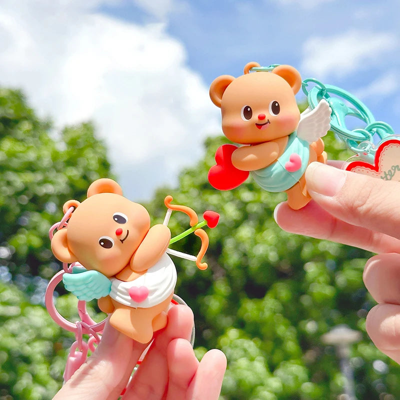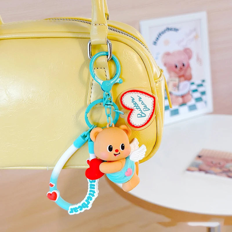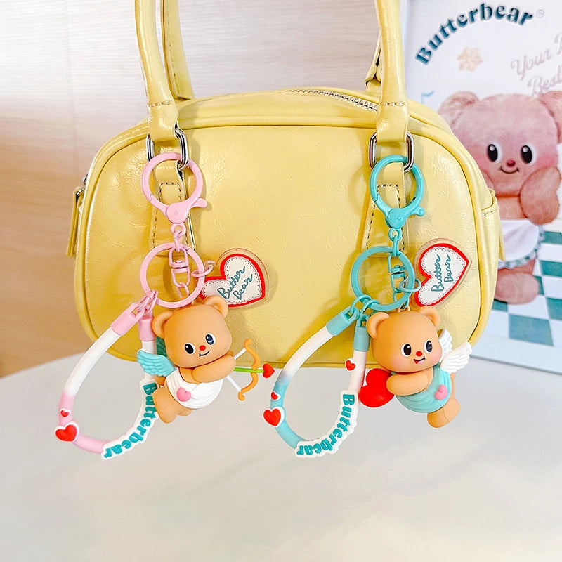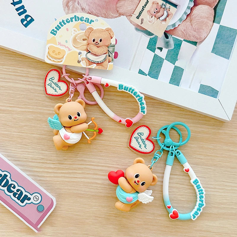 Cartoon Butter Bear Keychain Cute Anime PVC Bear Keyring Toys For Women Girls Cupid Dolls Pendant Bag Accessories Couple Gift