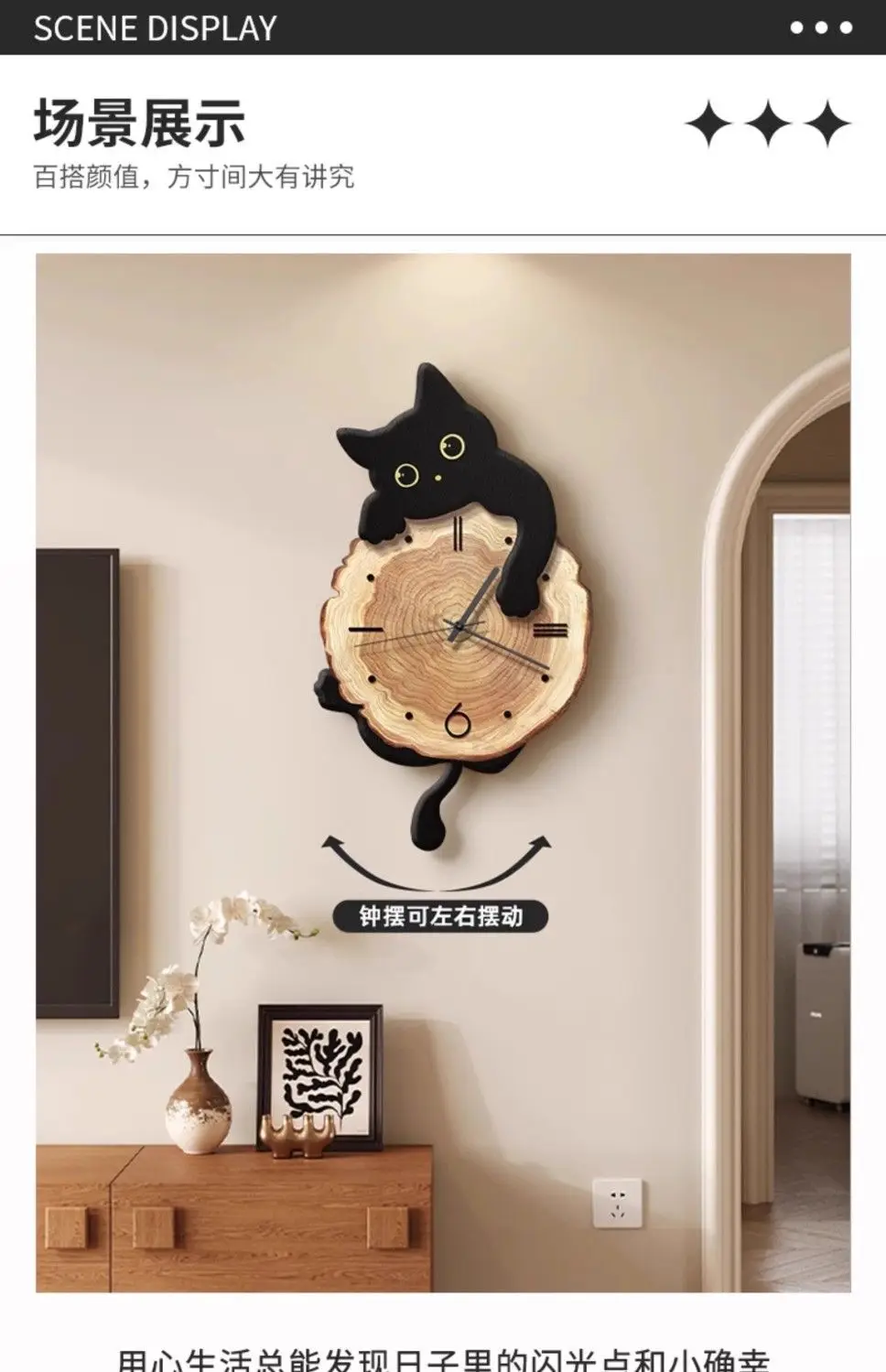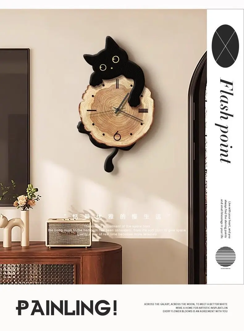 Cartoon Cat Wall Clock Creative Cat Tail Swing Wall Clock Quartz Mute Wall Clock Home Decoration Living Room Bedroom Decoration