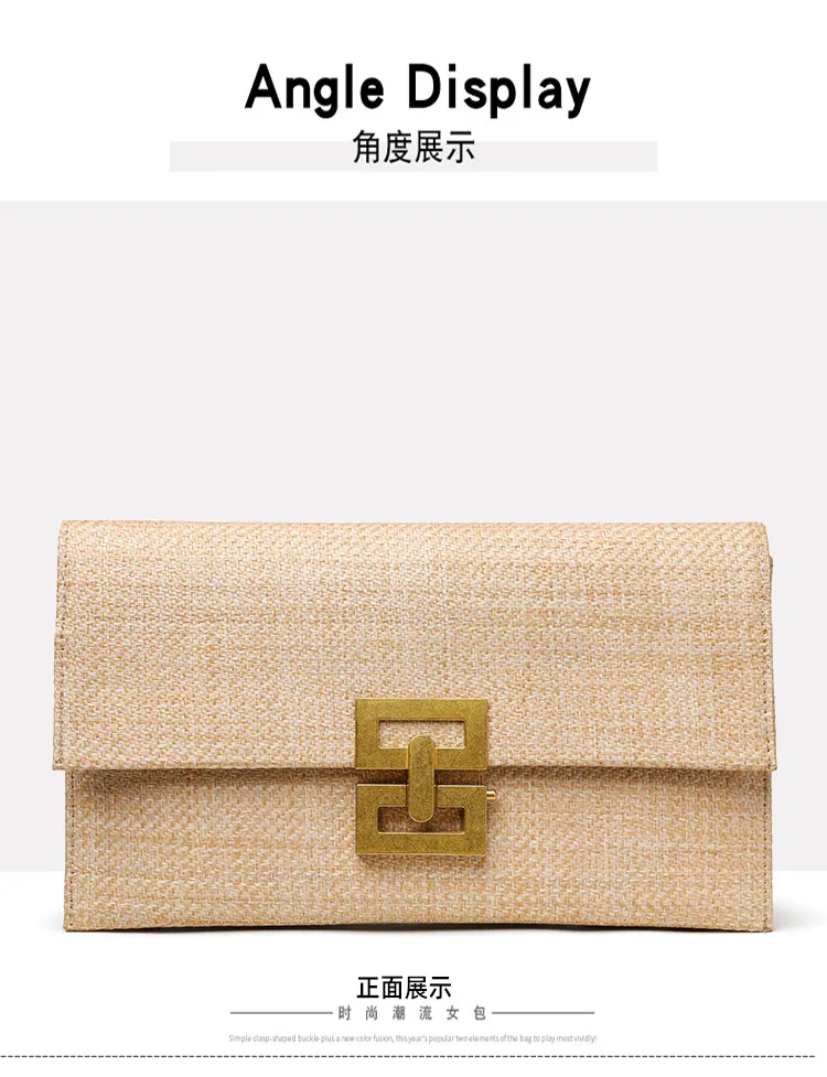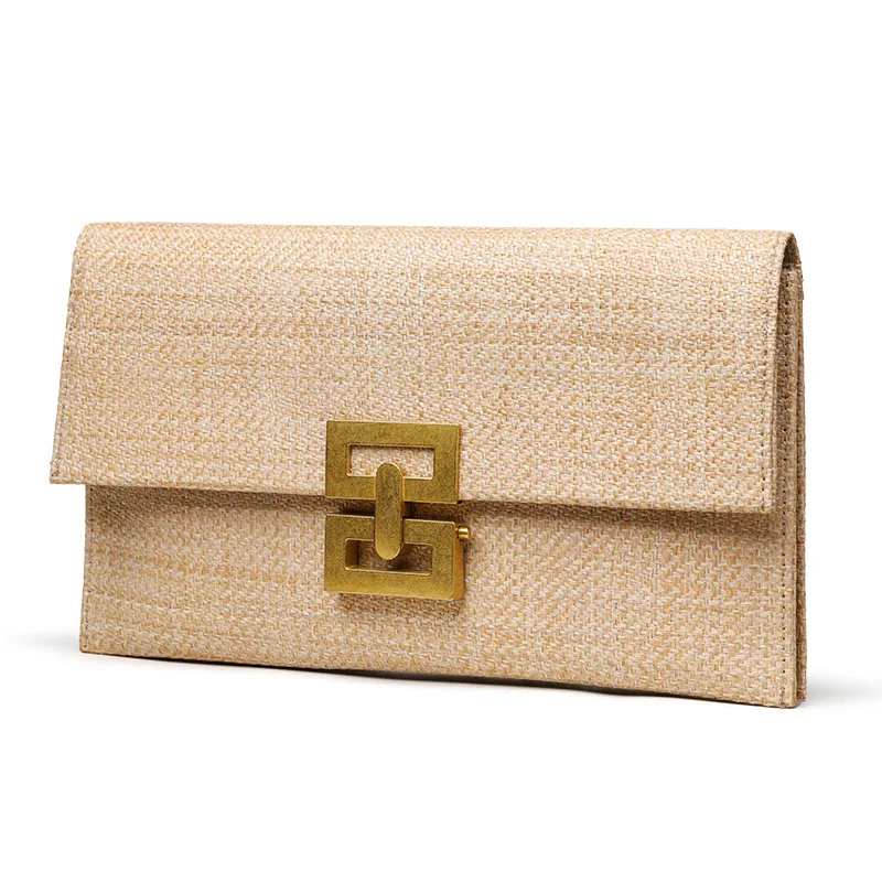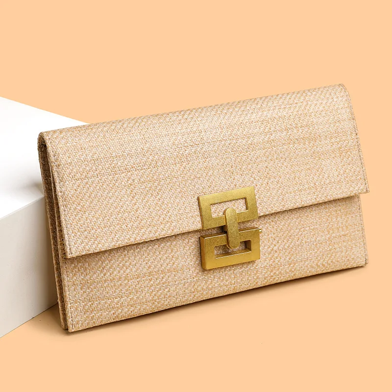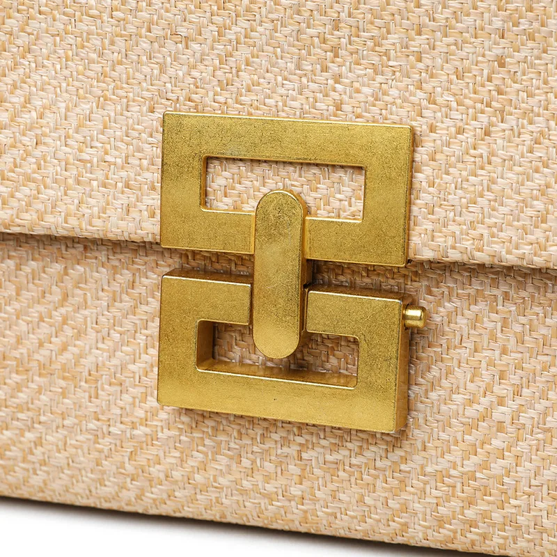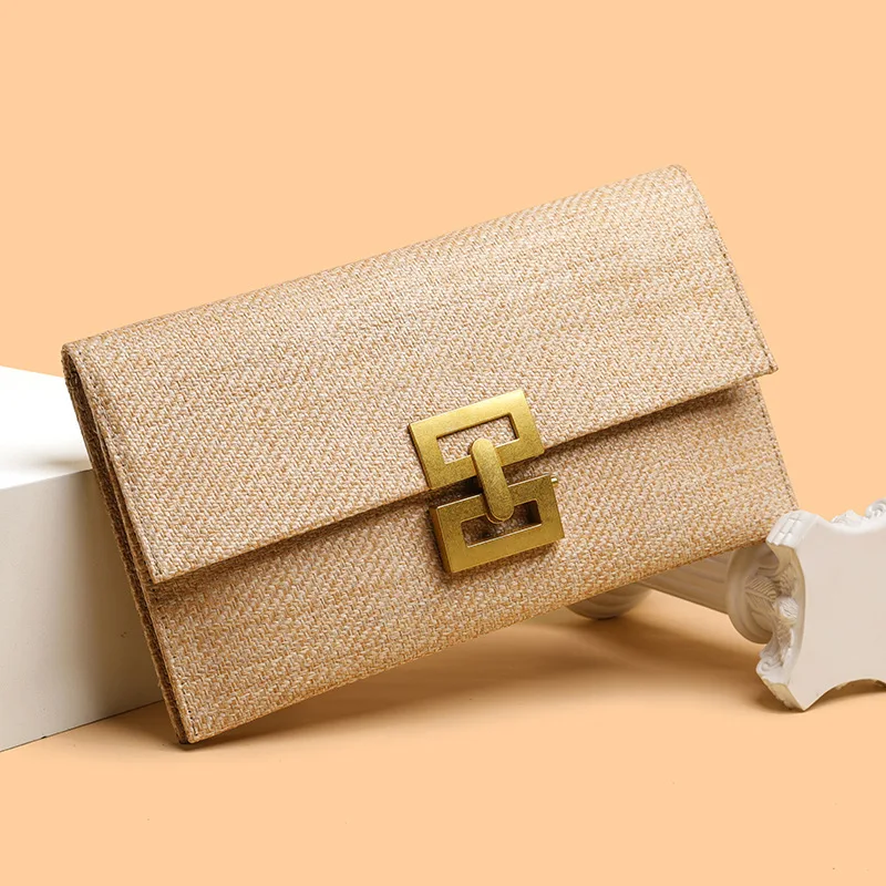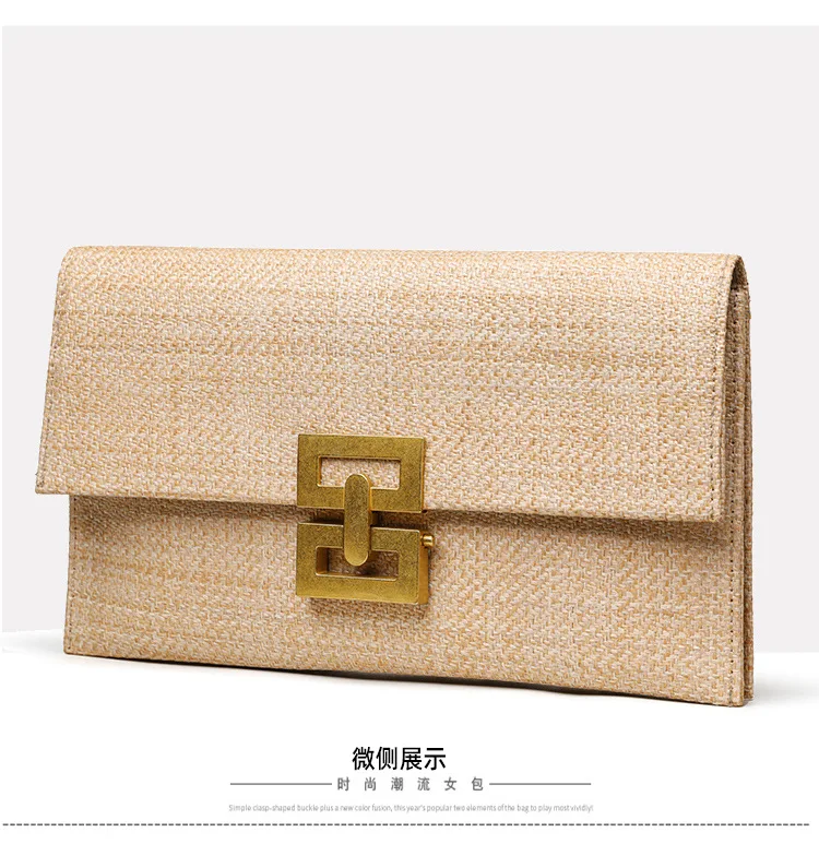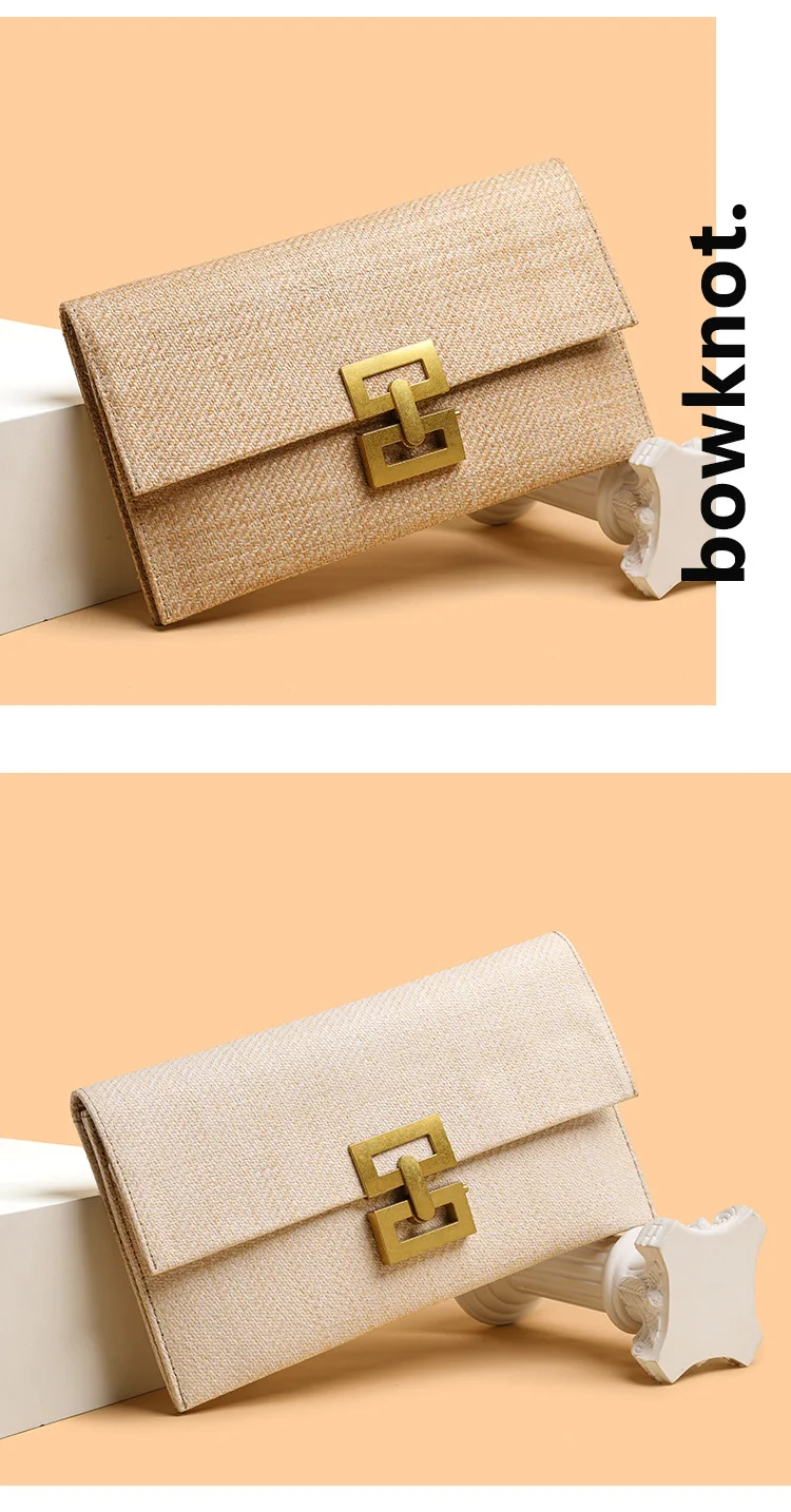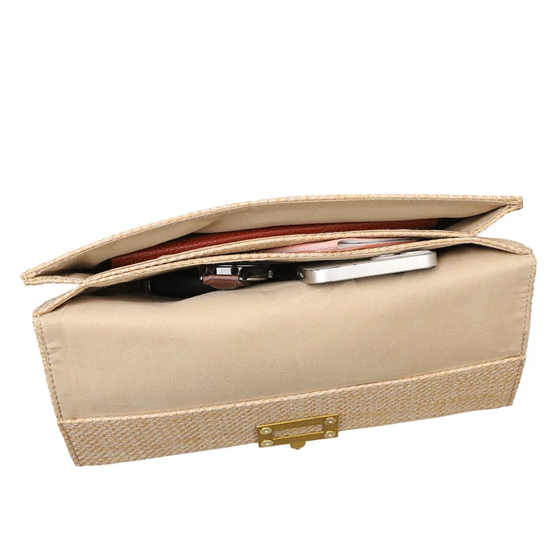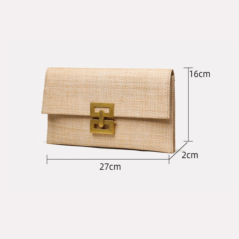 Casual Straw Clutch Bag for Women Chic Metal Lock Lady Handbags Vintage Summer Beach Bag Fashion Party Purses for Female 2024