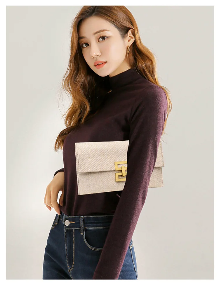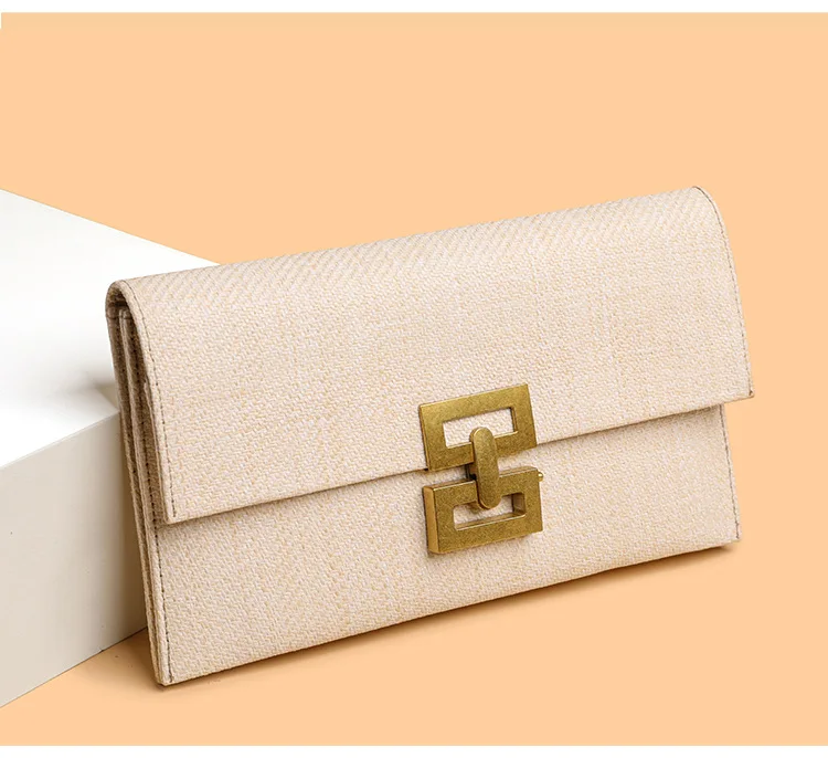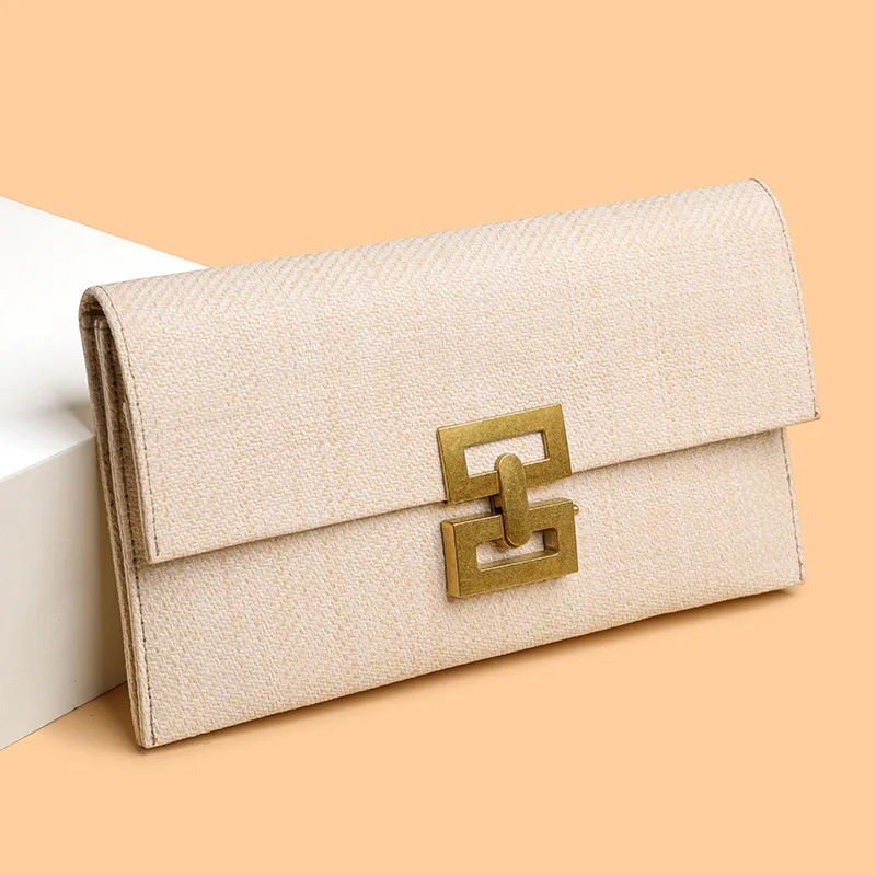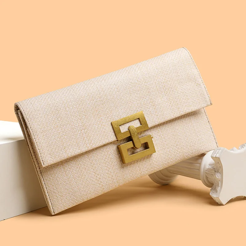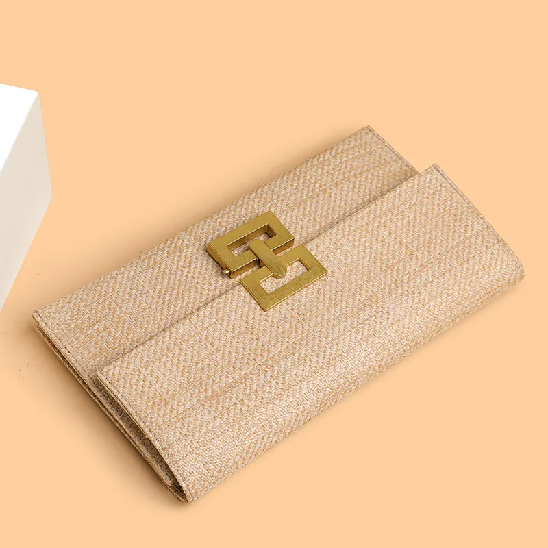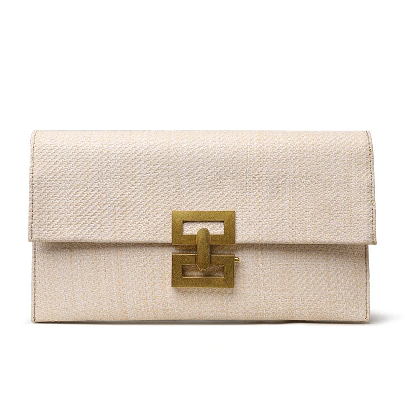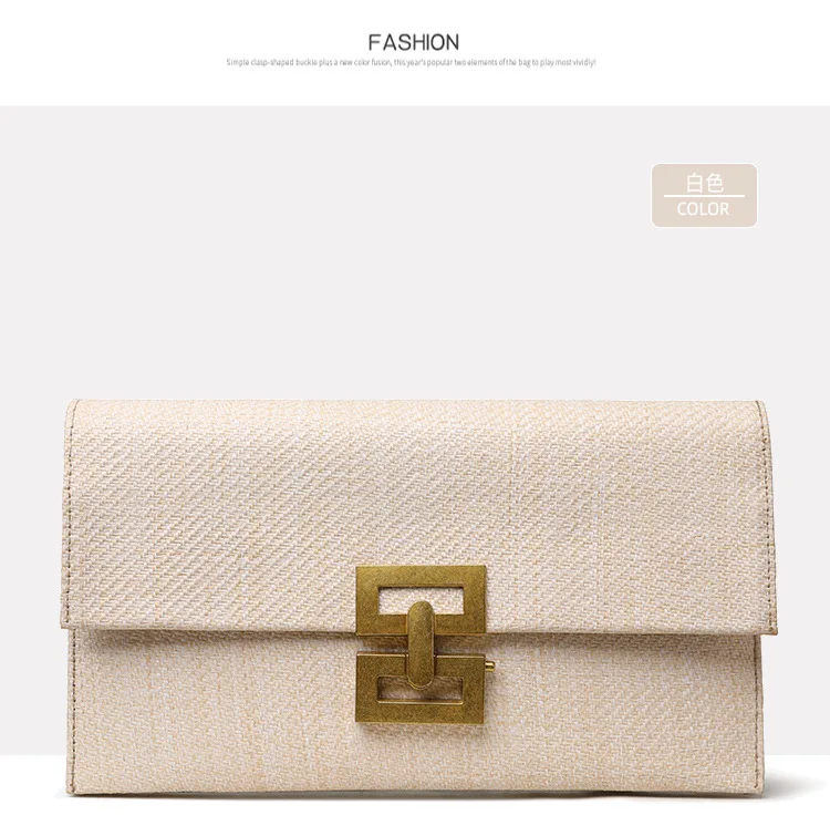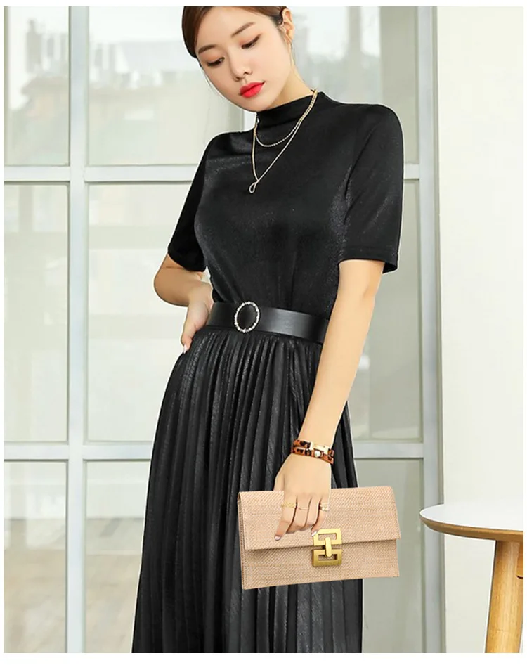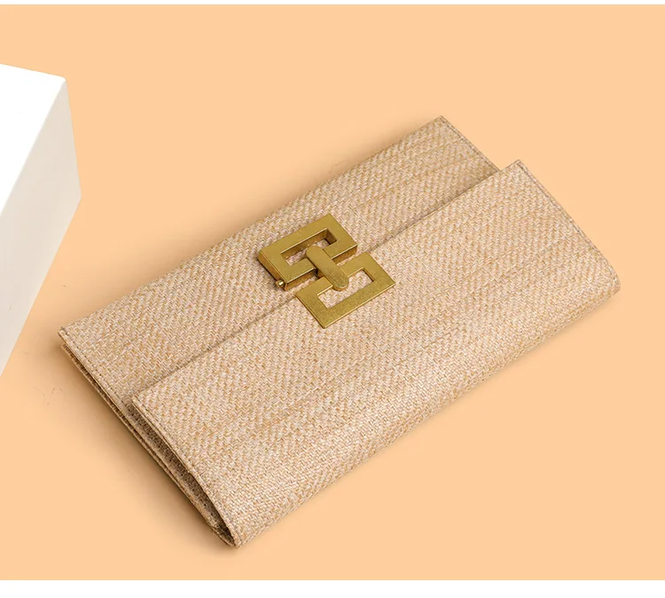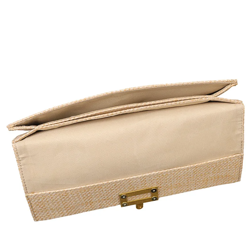 Casual Straw Clutch Bag for Women Chic Metal Lock Lady Handbags Vintage Summer Beach Bag Fashion Party Purses for Female 2024