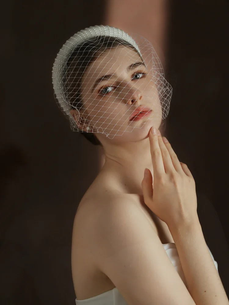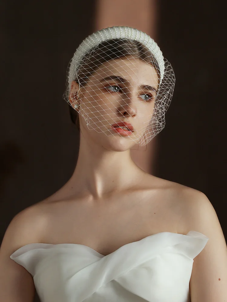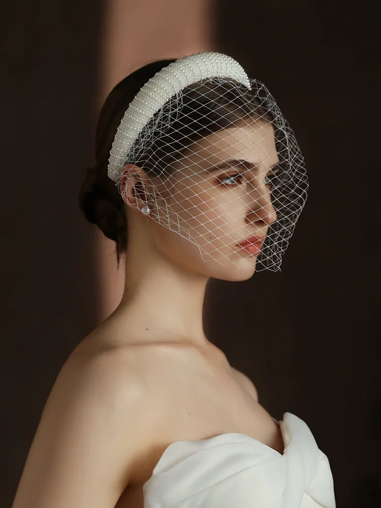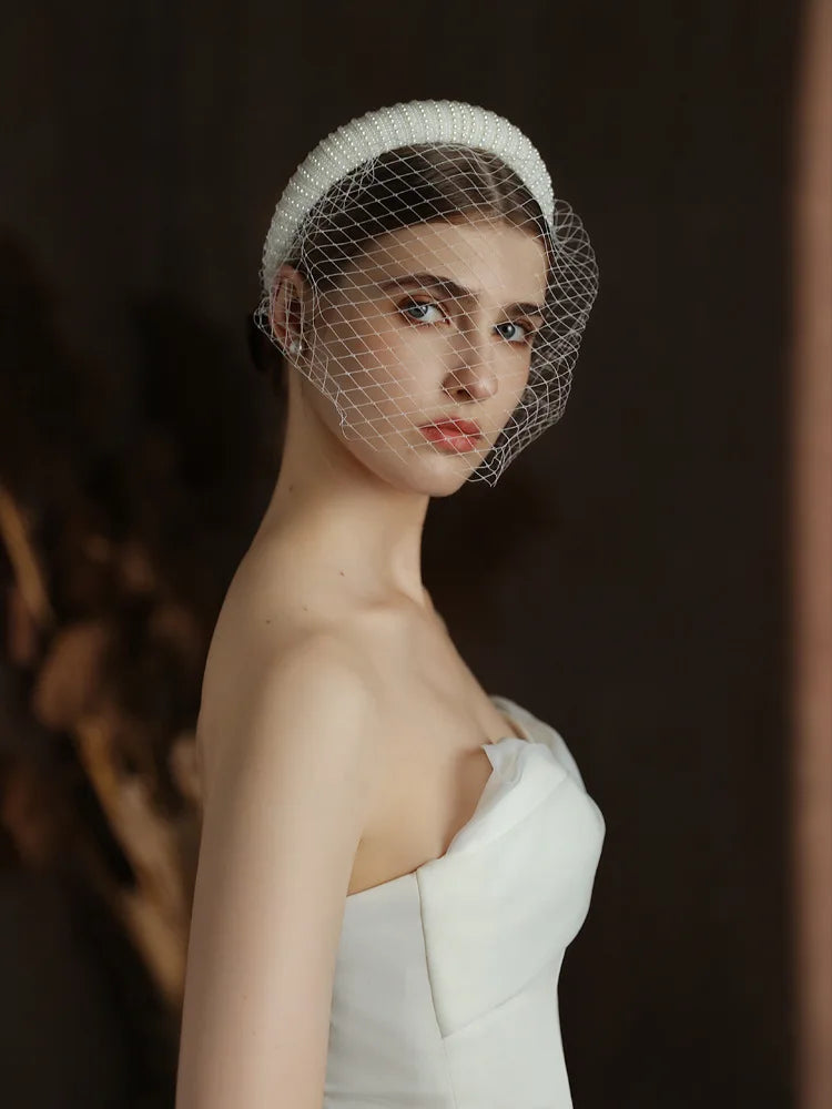 CC Short Veils for Women Wedding Hair Accessory Bridal Headdress Engagement Hairwear Blusher Veil Imitation Pearl Hairband V320
