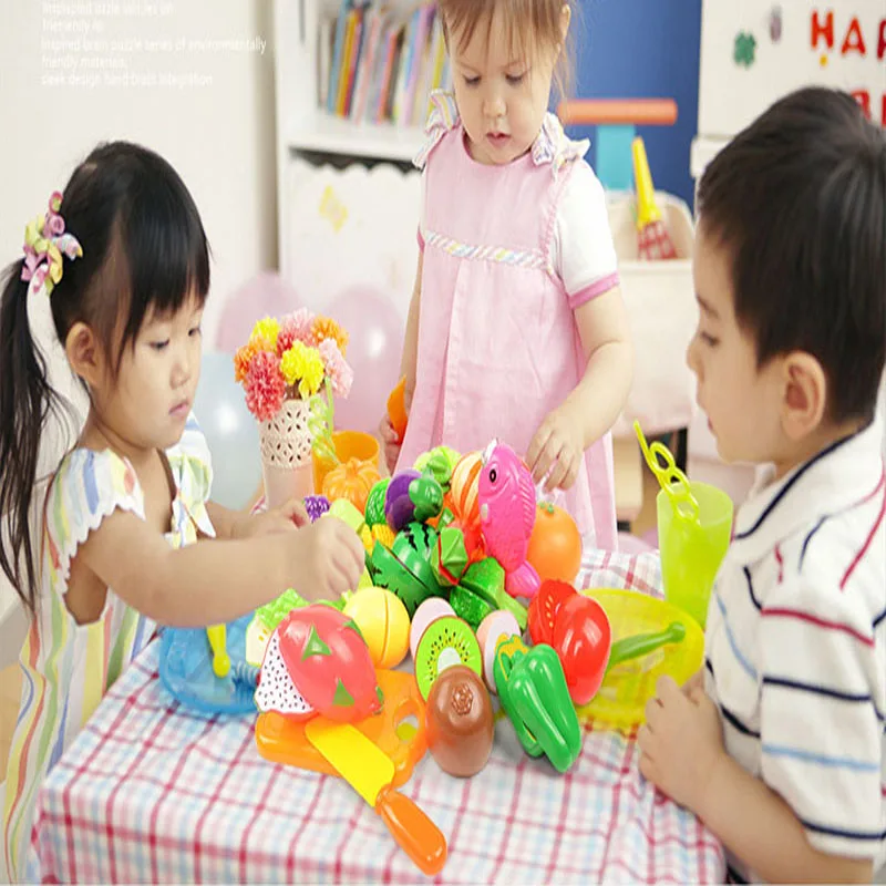 Children Simulation Kitchen Toys Set Pretend Play Fruit Vegetable Pizza Cutting Early Education Toys for Kids Play House Game