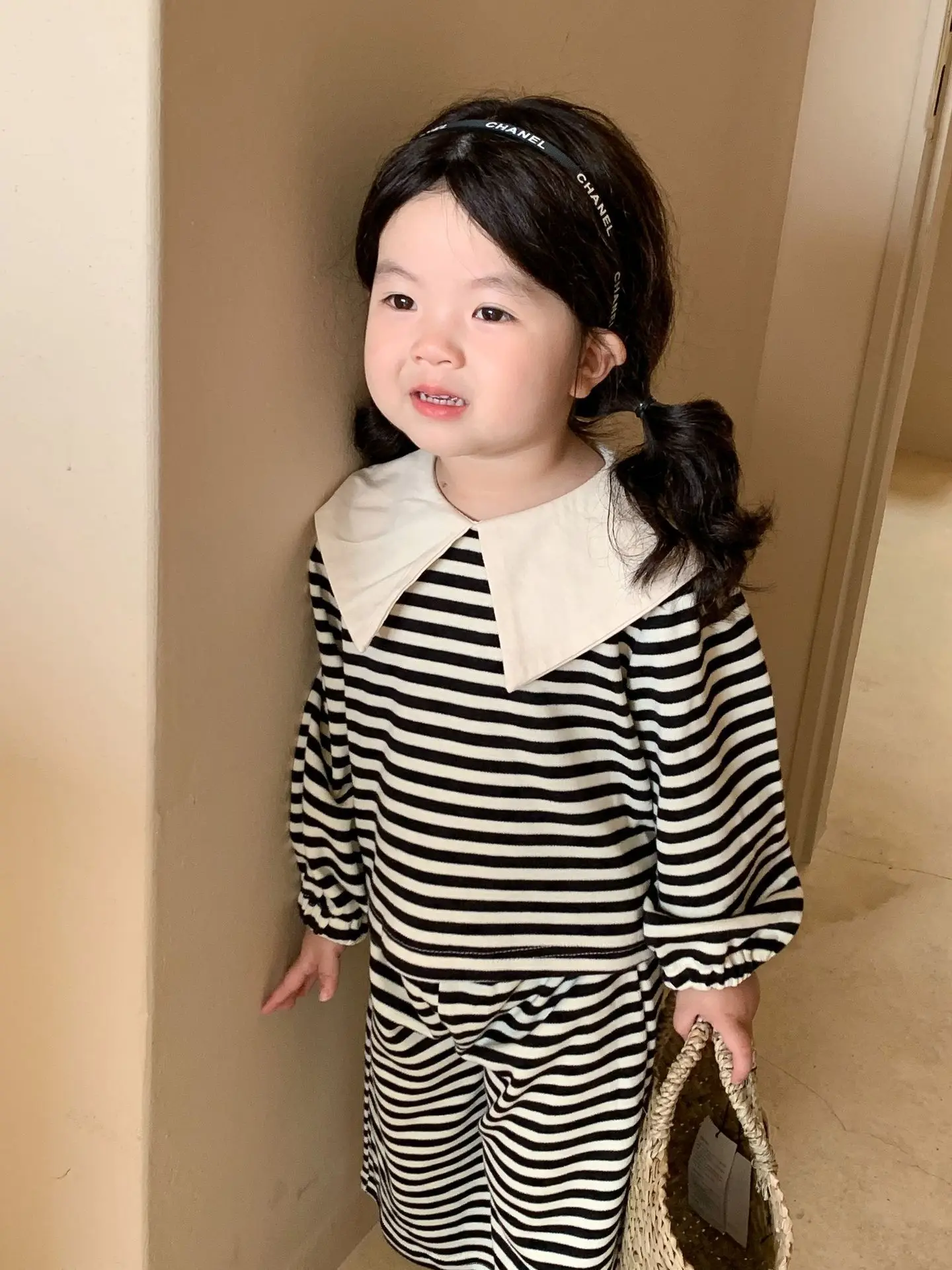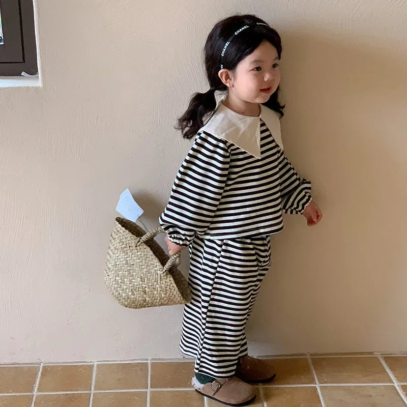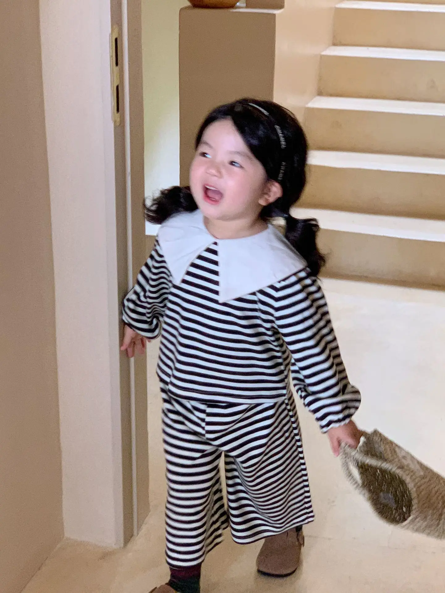 Children's Clothing Sets Big Lapel Striped Top and Wide-leg Pants 2pcs Sets Baby Girl Outfit Set Toddler Girl Clothes
