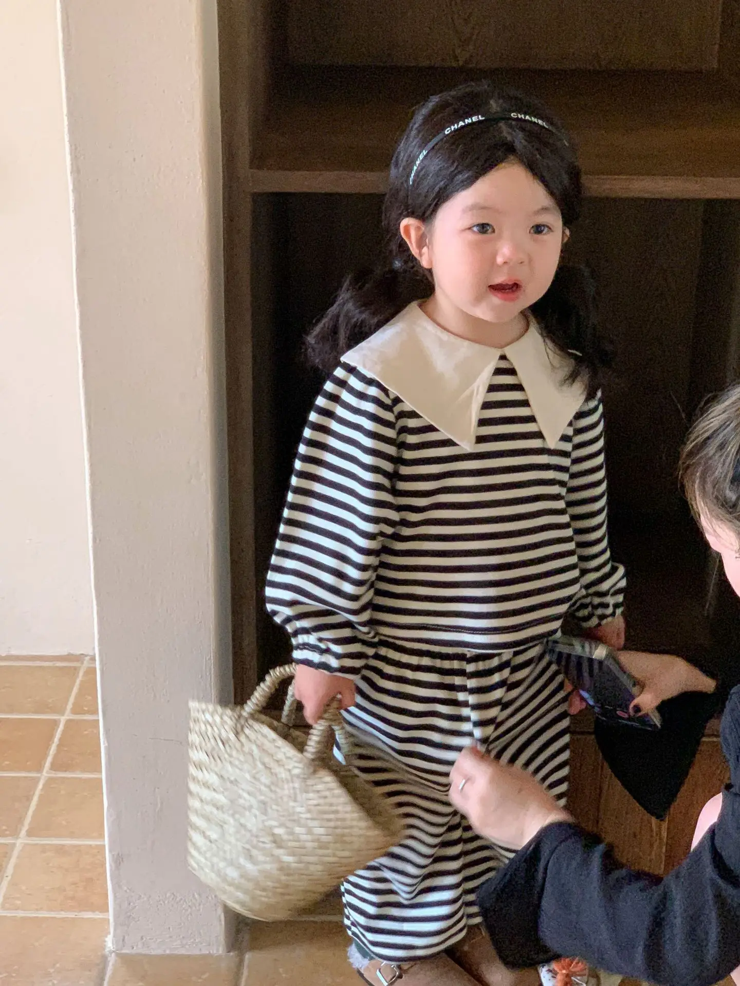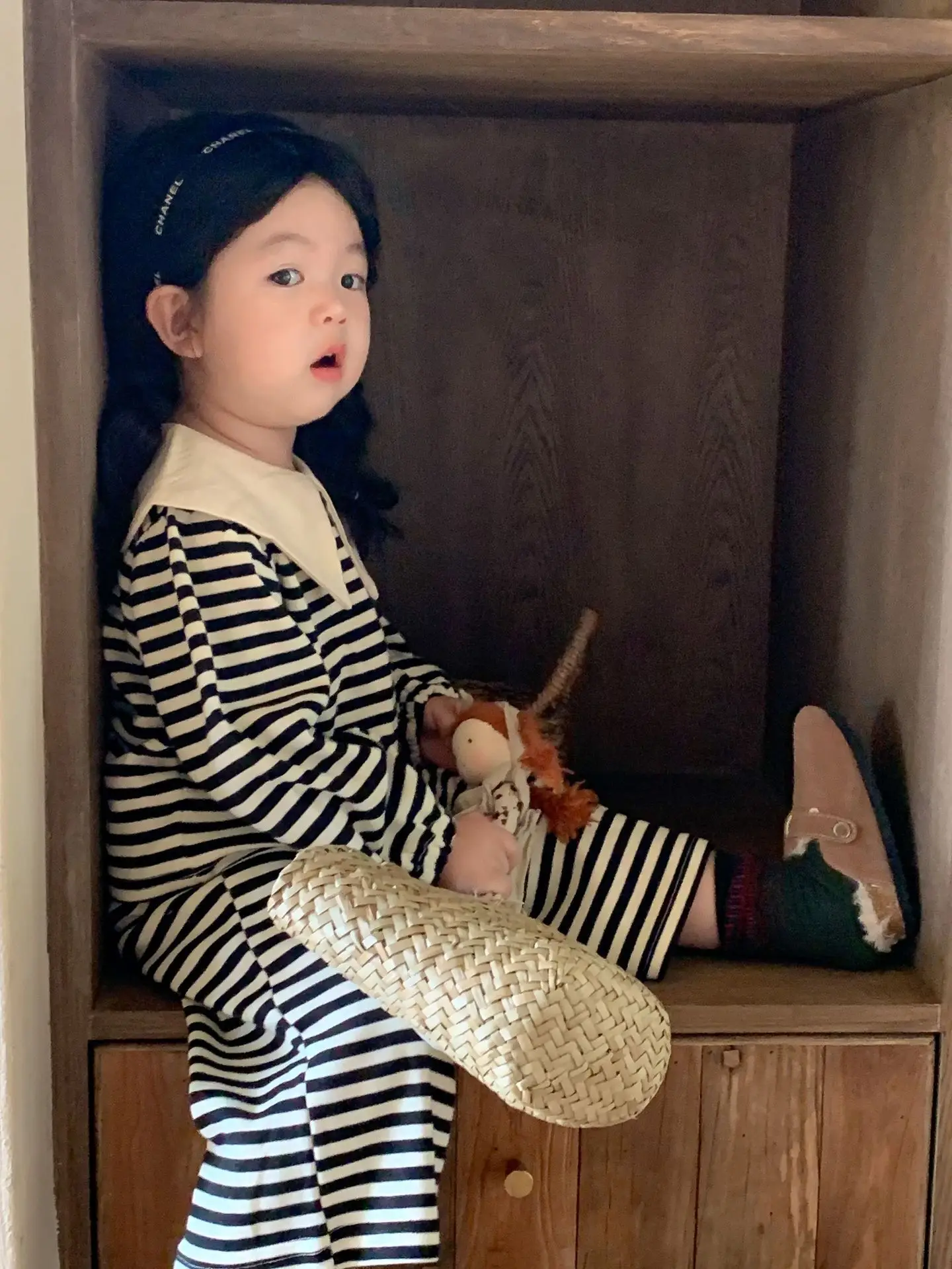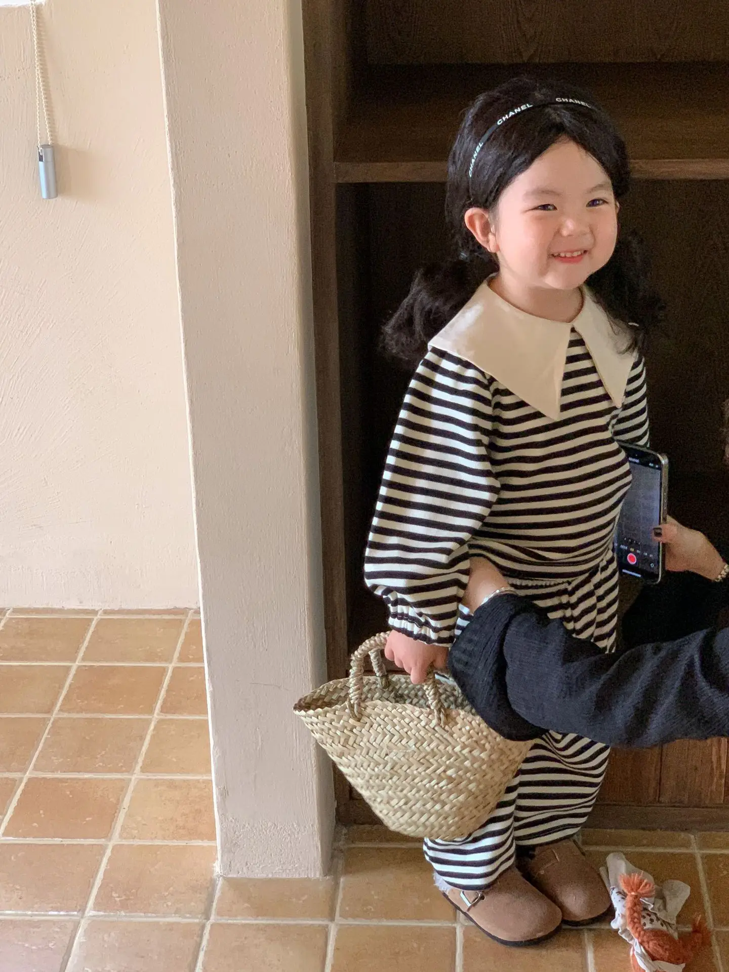 Children's Clothing Sets Big Lapel Striped Top and Wide-leg Pants 2pcs Sets Baby Girl Outfit Set Toddler Girl Clothes