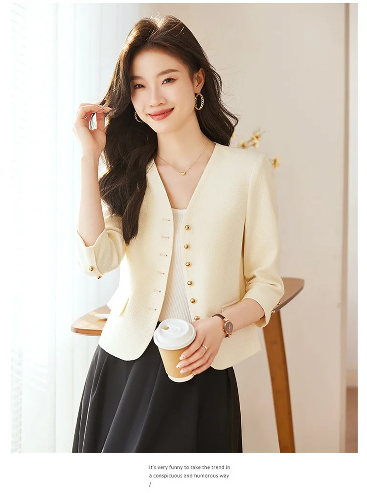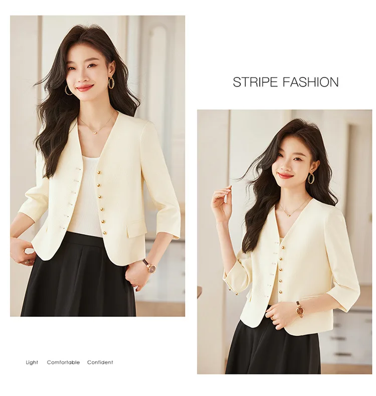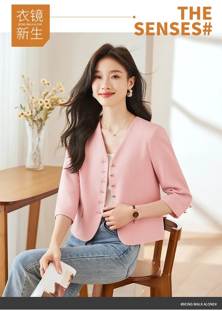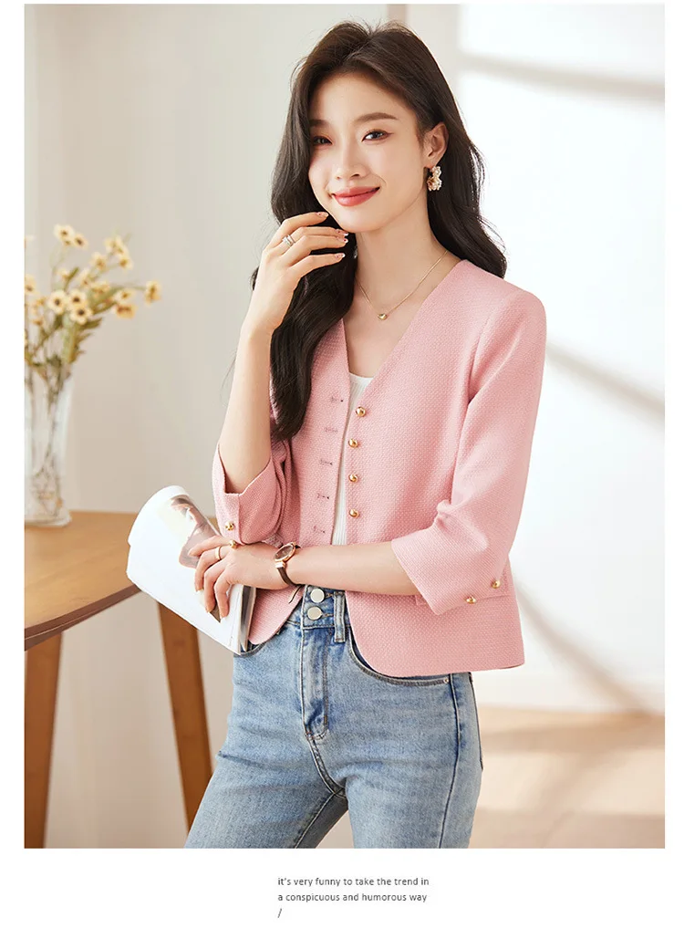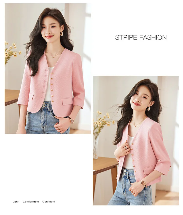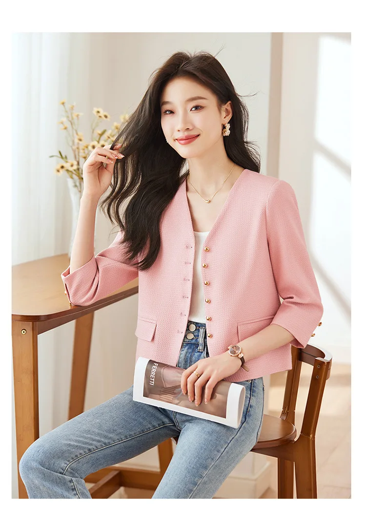 Clothes High quality short blazer for women single breasted three quater sleeve new spring 2025 elegant fashion office clothes pink blue