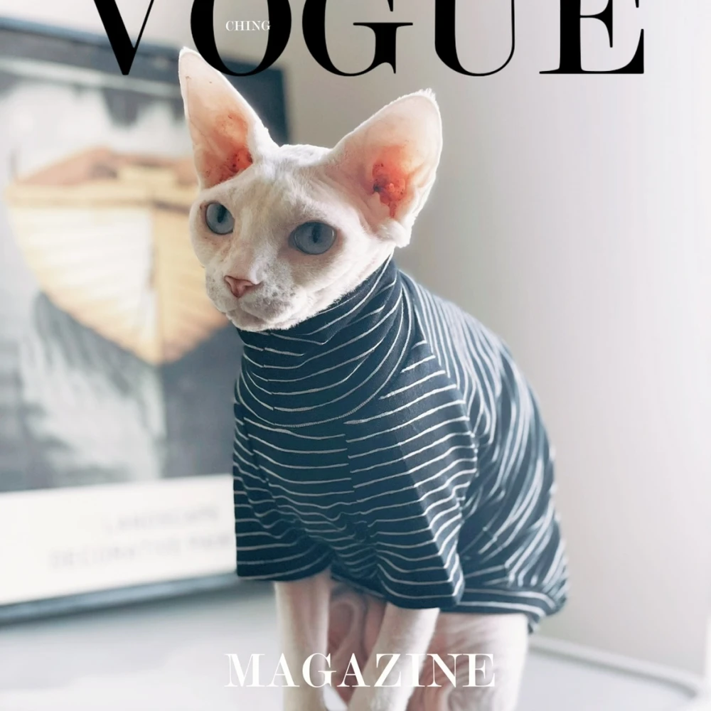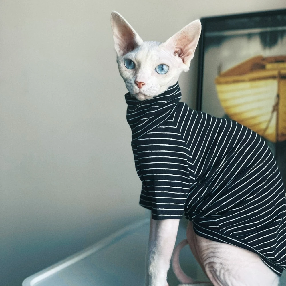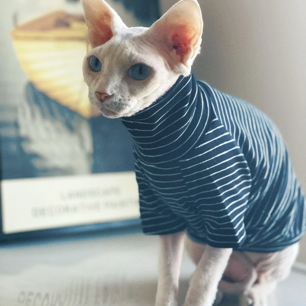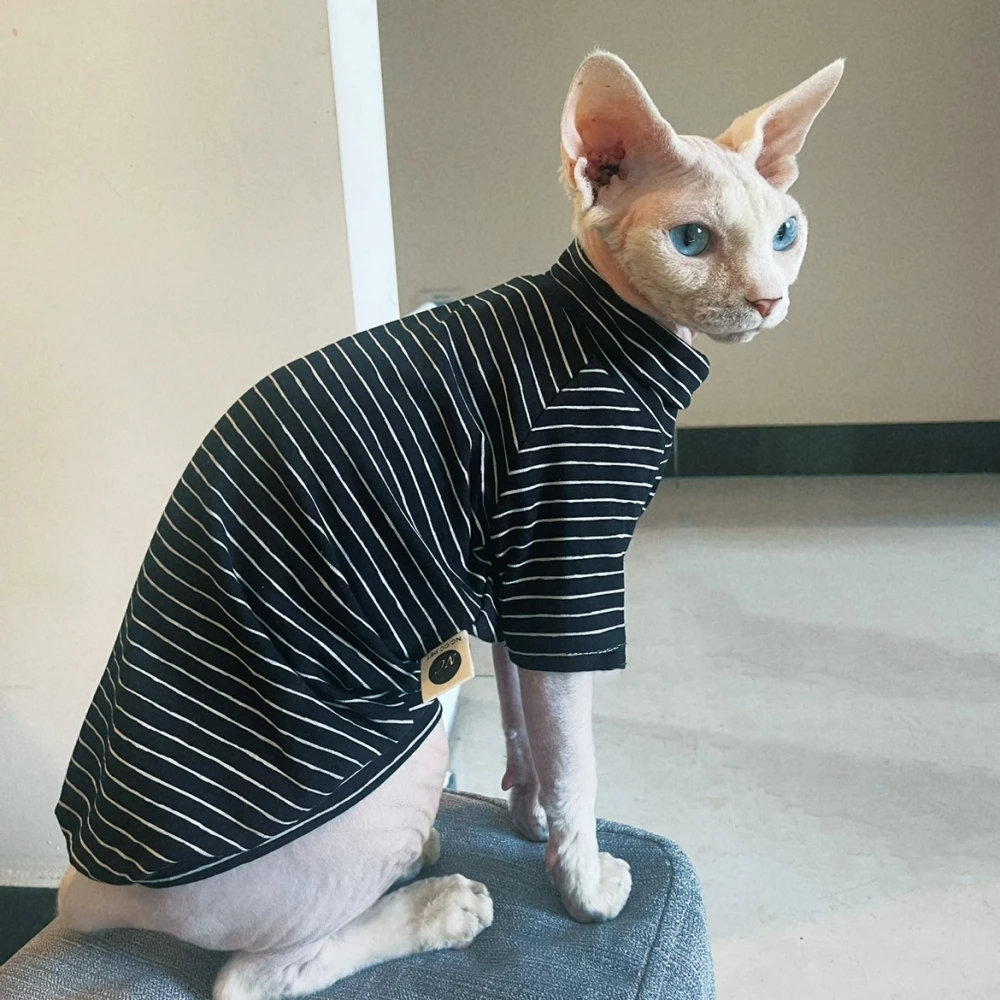 Clothing for Cat Spring Warm Striped Cotton T-Shirt Long Sleeves Coat for Sphynx Soft Green Black Jumpsuit for Kittens in Autumn