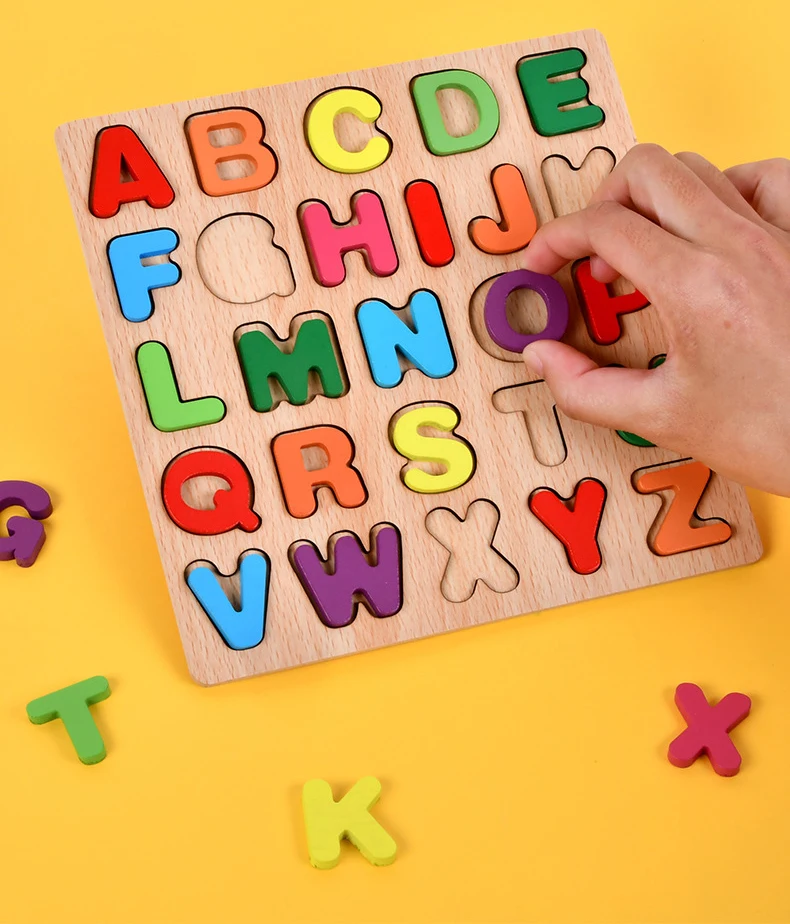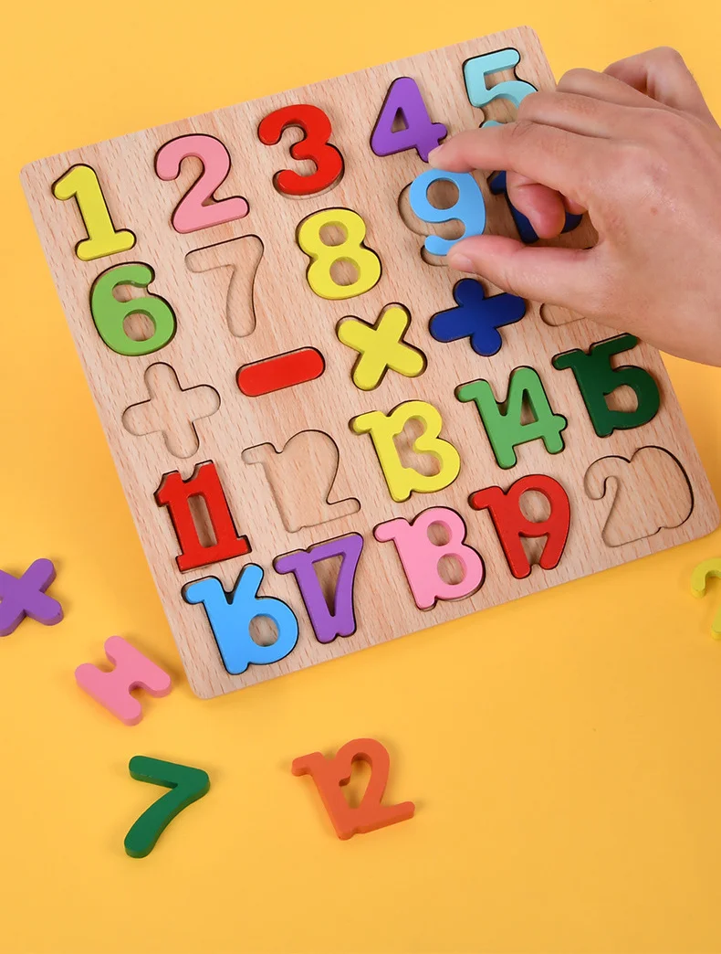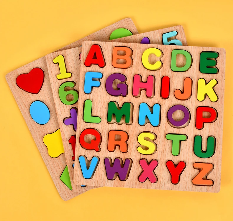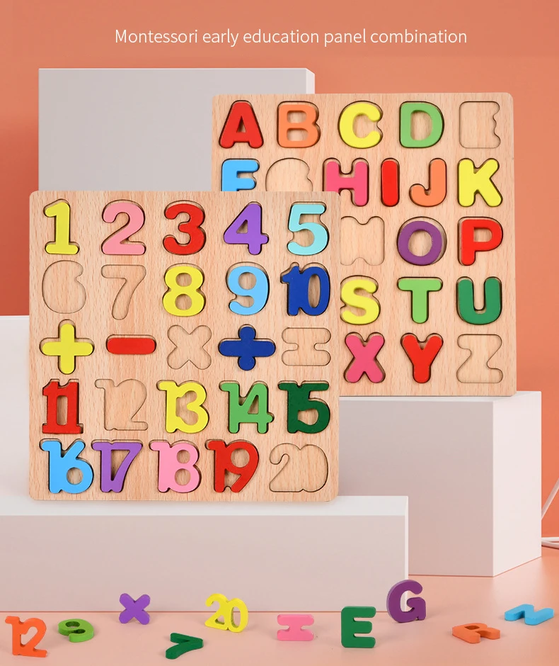 20CM Baby Toys Wooden Puzzle Alphabet Number Shape Matching 3D Puzzle Board Game Wooden Montessori
