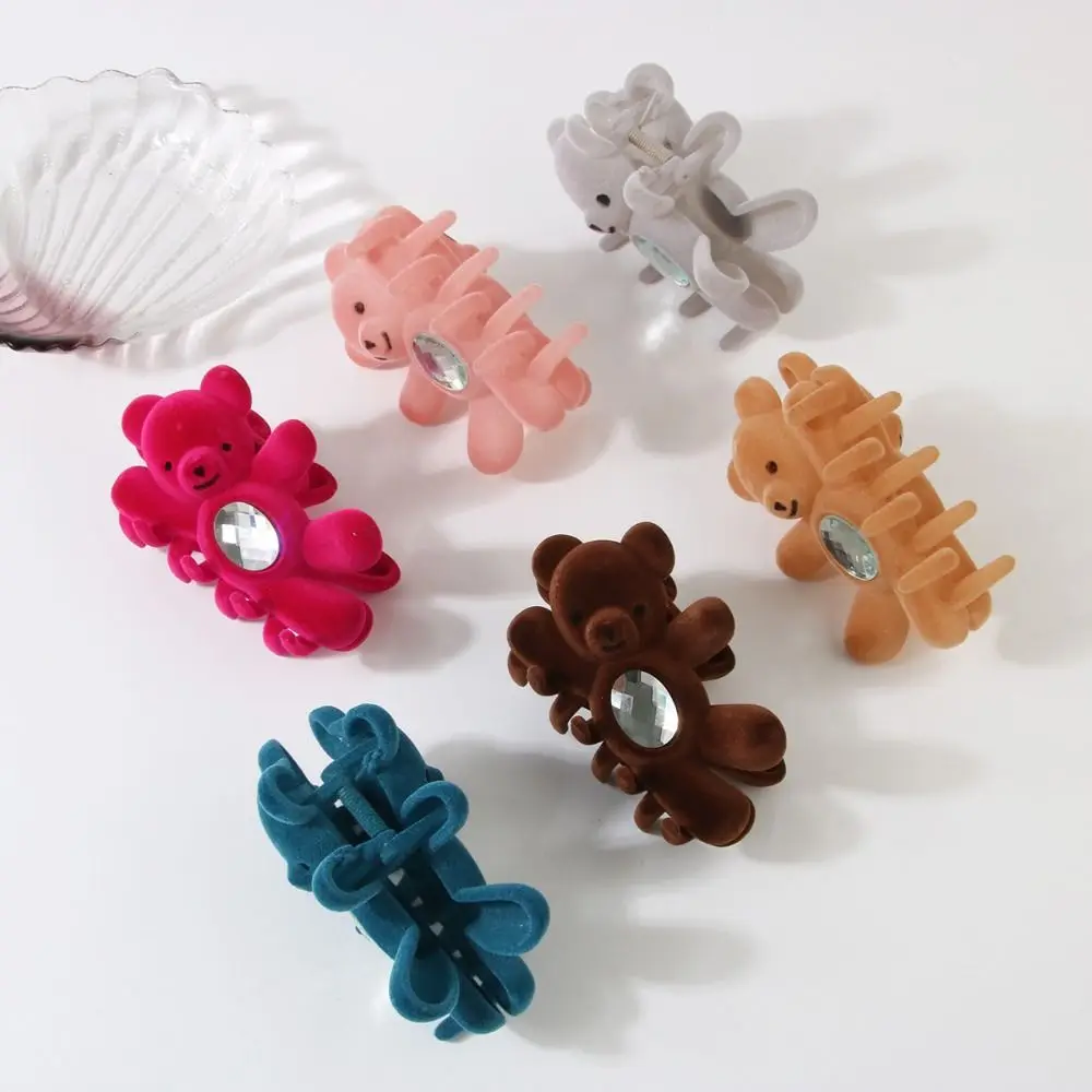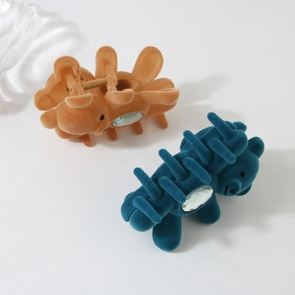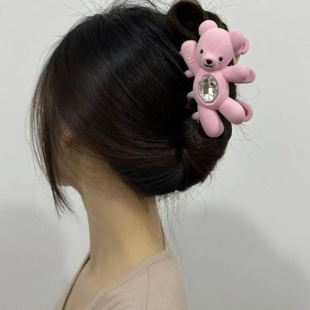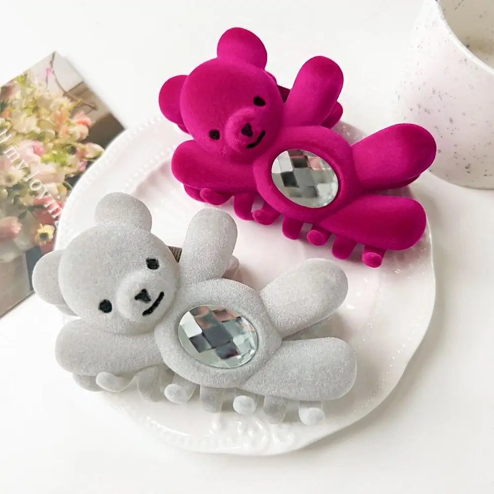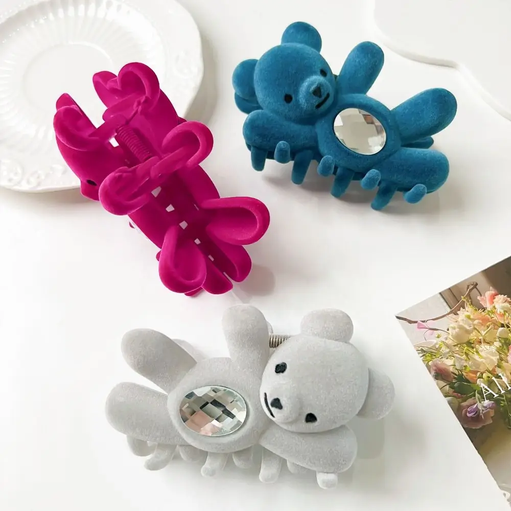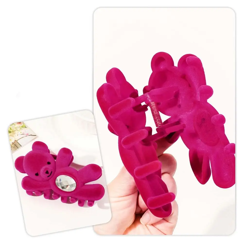 Creative Flocking Cute Bear Hair Claw Hair Clip Shark Clip Shark Grab Clip Rhinestone Headwear Back Head Hair Clip Travel