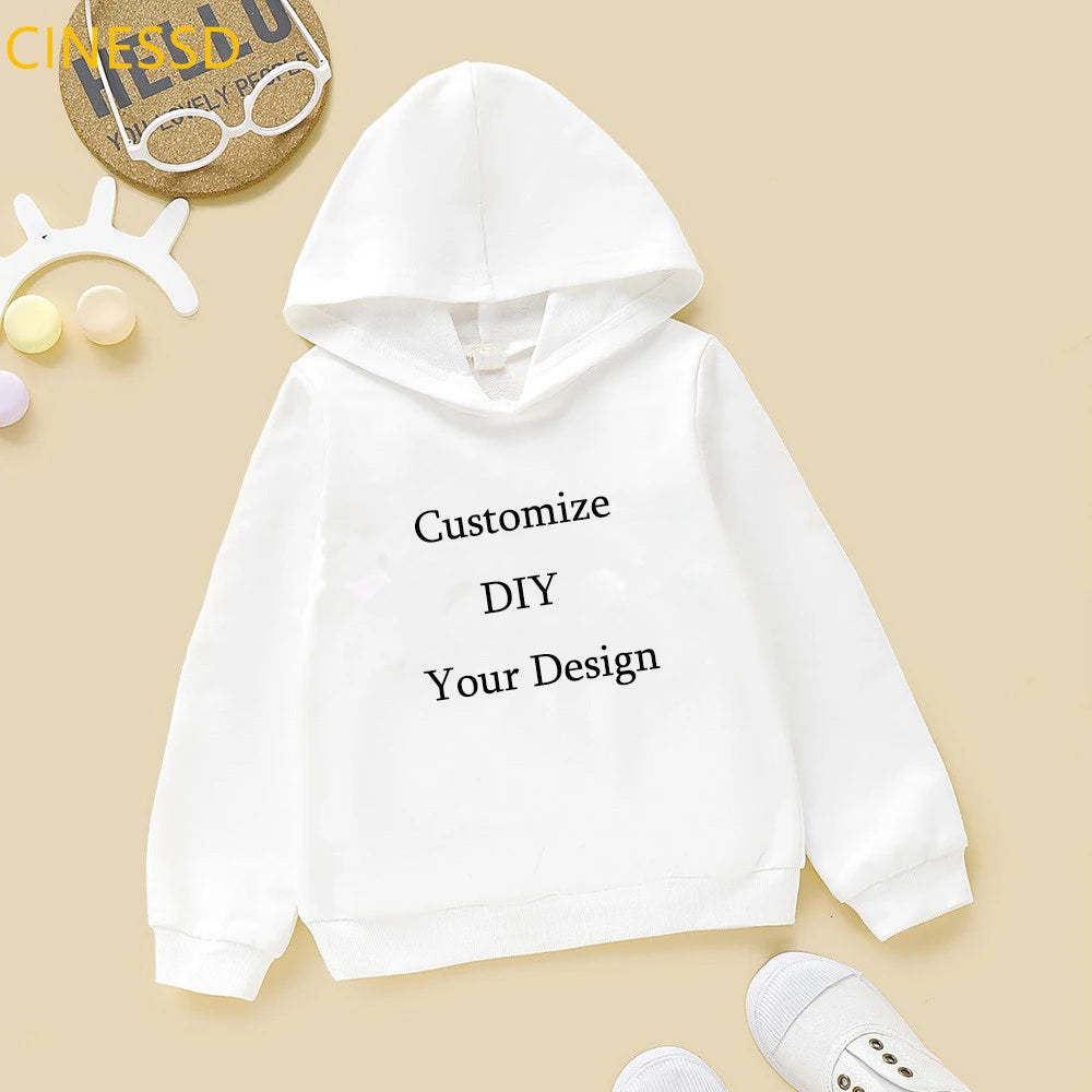 Customize Diy Your Own Design Kids Hoodies White Pink Yellow Cap Sweatshirts Winter Baby Children's Clothes Teen Top Tracksuit