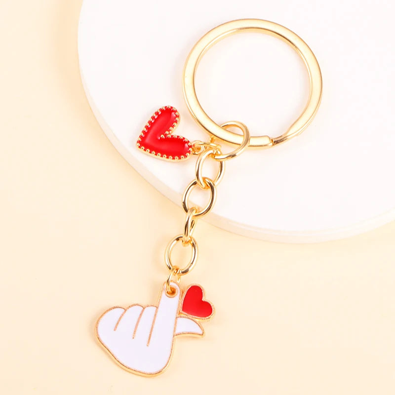 Cute Enamel Finger Heart Pendants Key Chain Fashion Love Keyrings For Women Men Handbags Car Key Decor Jewelry Party Friend Gift