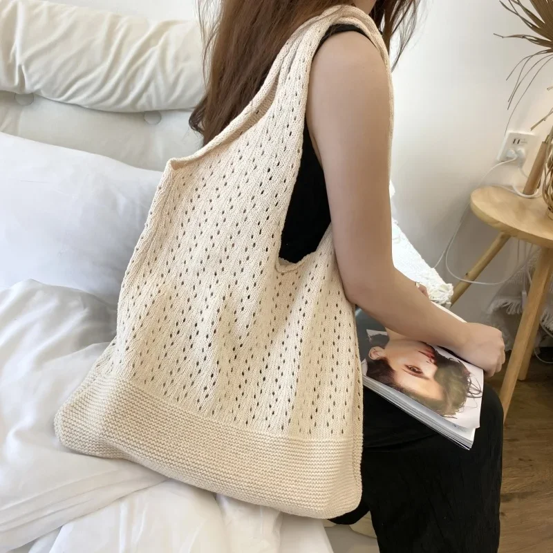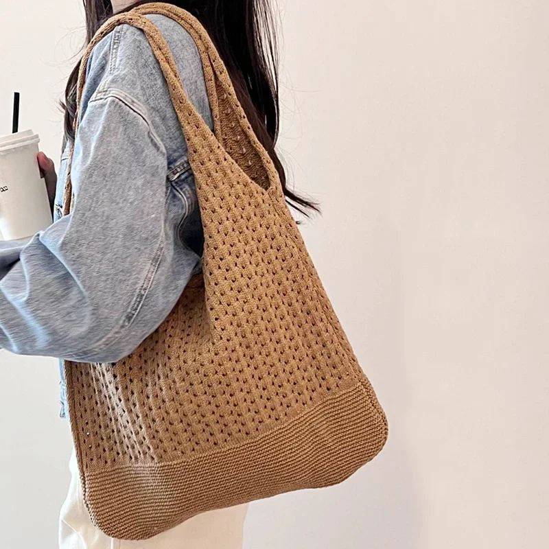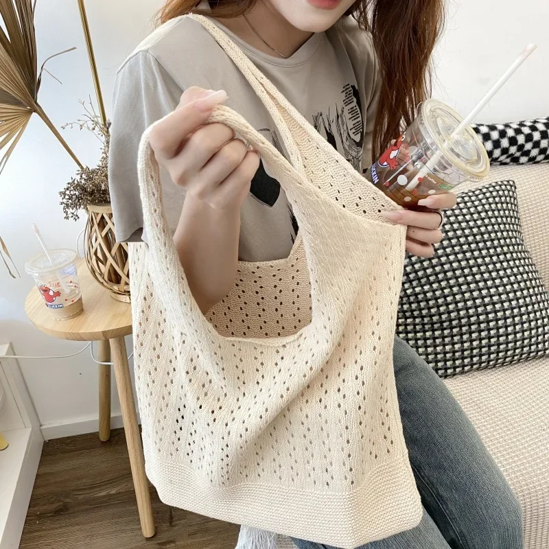 Designer Knitted Handbags Female Large Capacity Totes Women's Pack Summer Beach Bag Big Purses Casual Hollow Woven Shoulder Bags