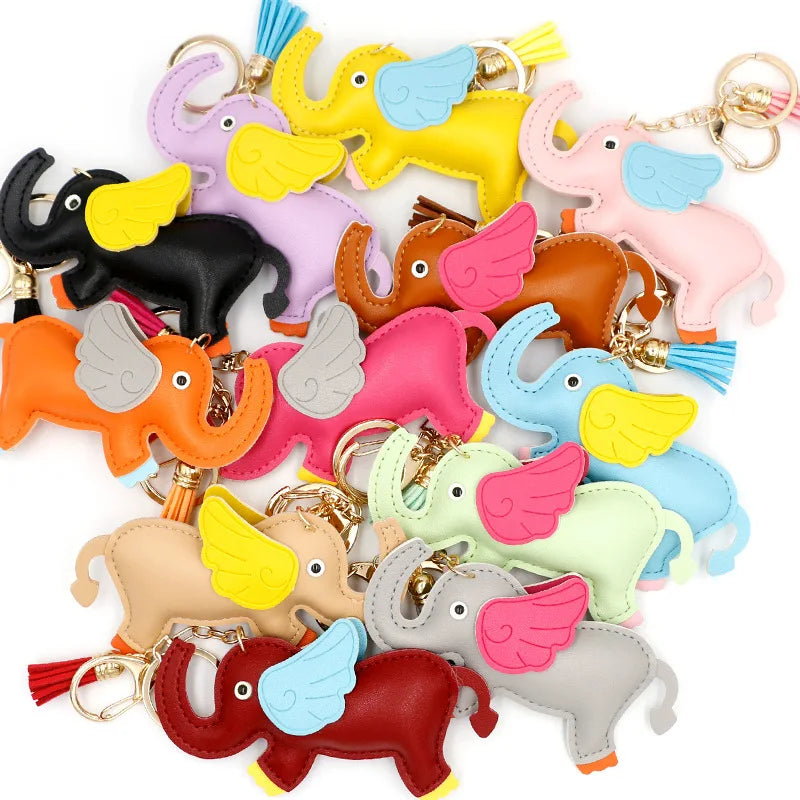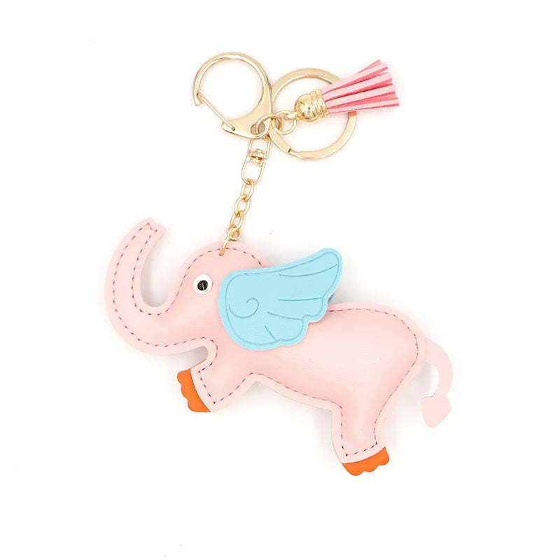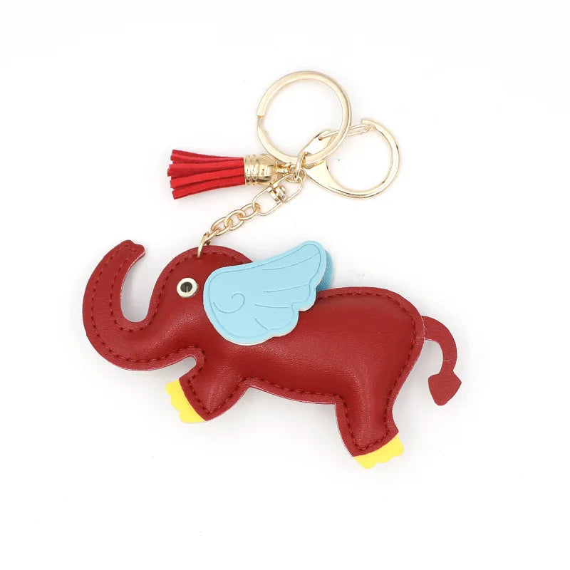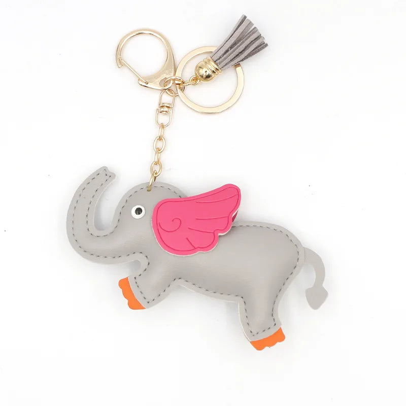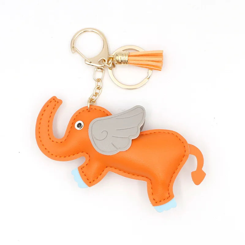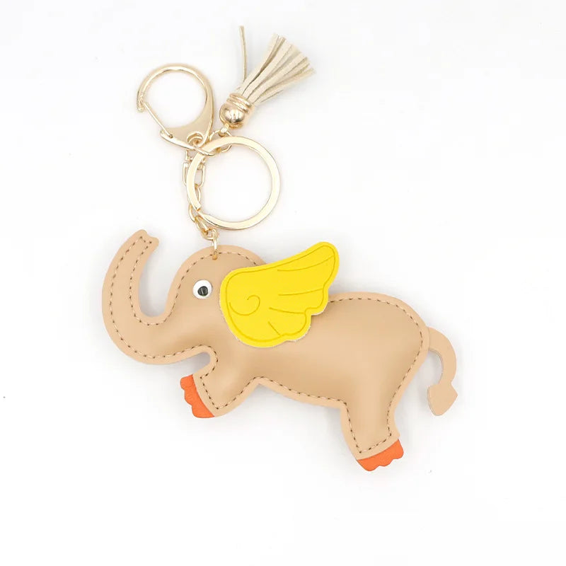 Designer PU Leather Wing Flying Elephant Hanger Car Key chain Pendant Decoration For Ladies Bag Charm Accessorie Ornament Gift