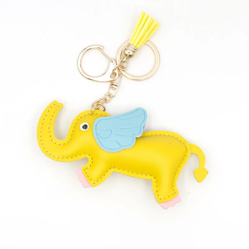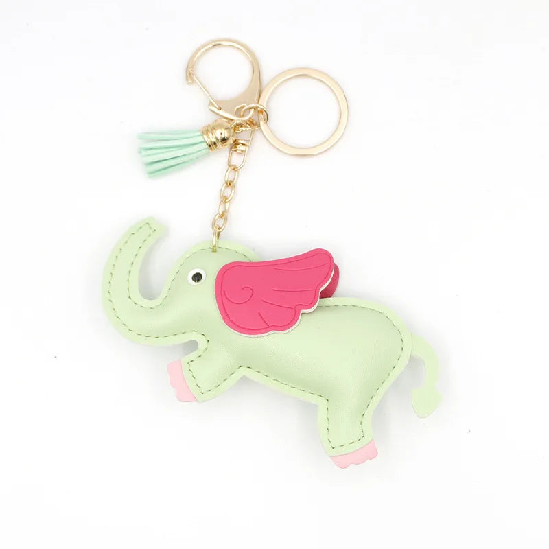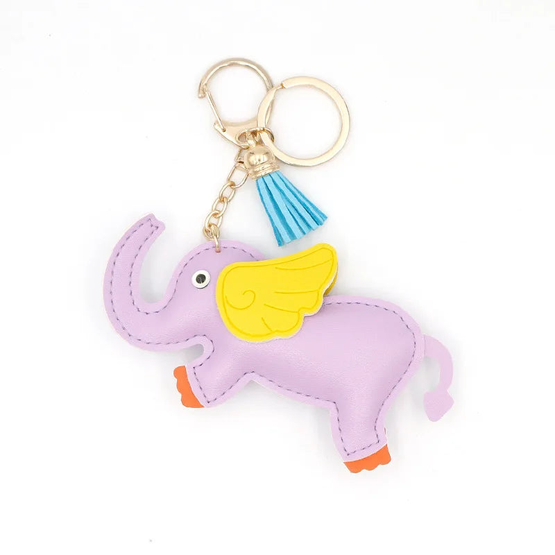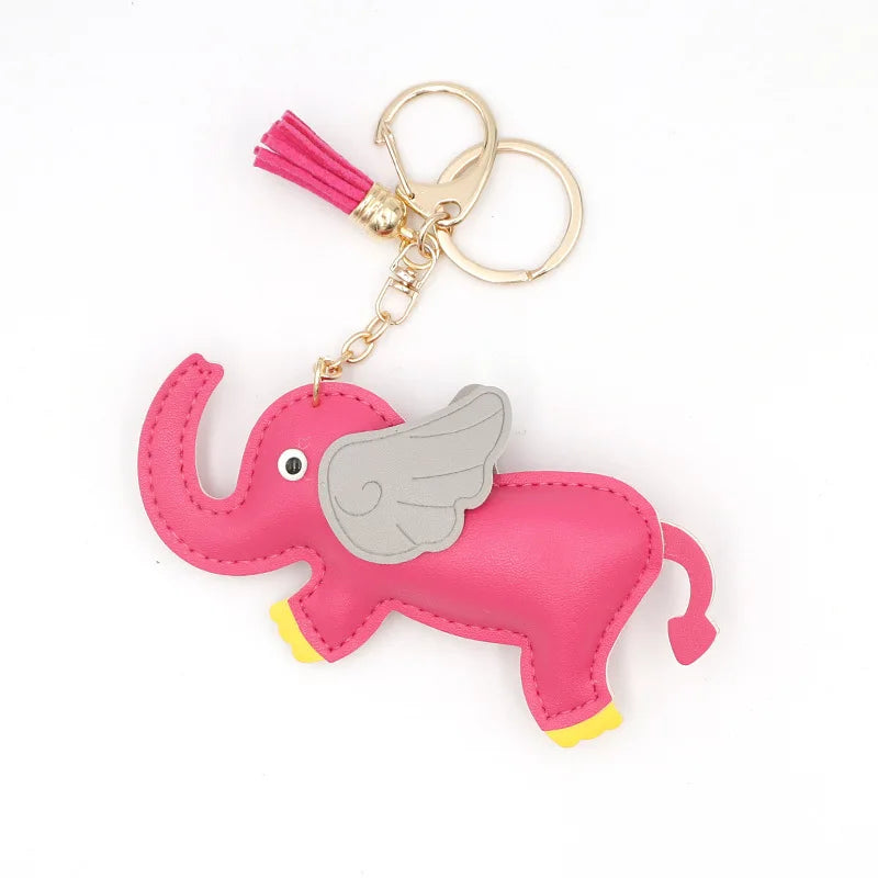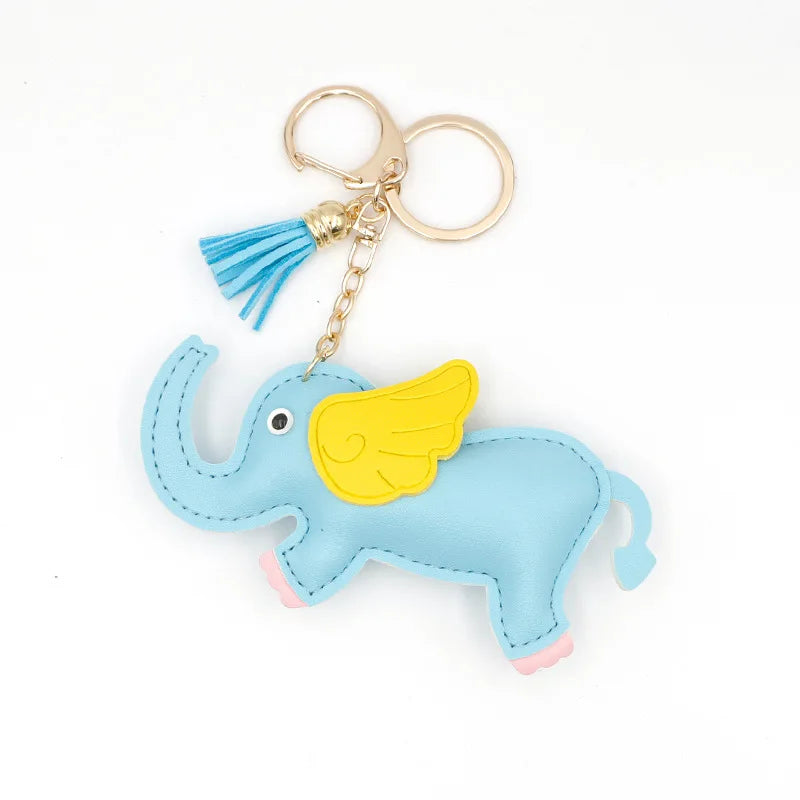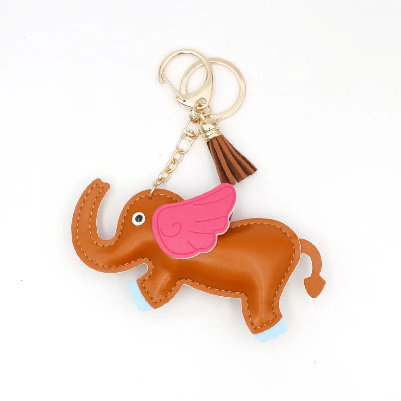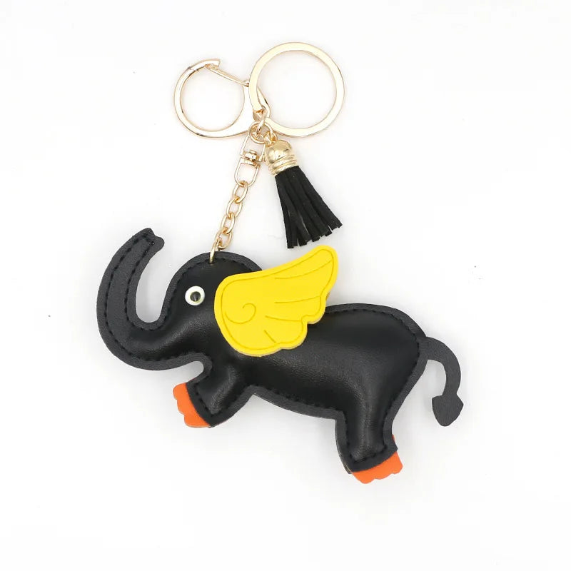 Designer PU Leather Wing Flying Elephant Hanger Car Key chain Pendant Decoration For Ladies Bag Charm Accessorie Ornament Gift