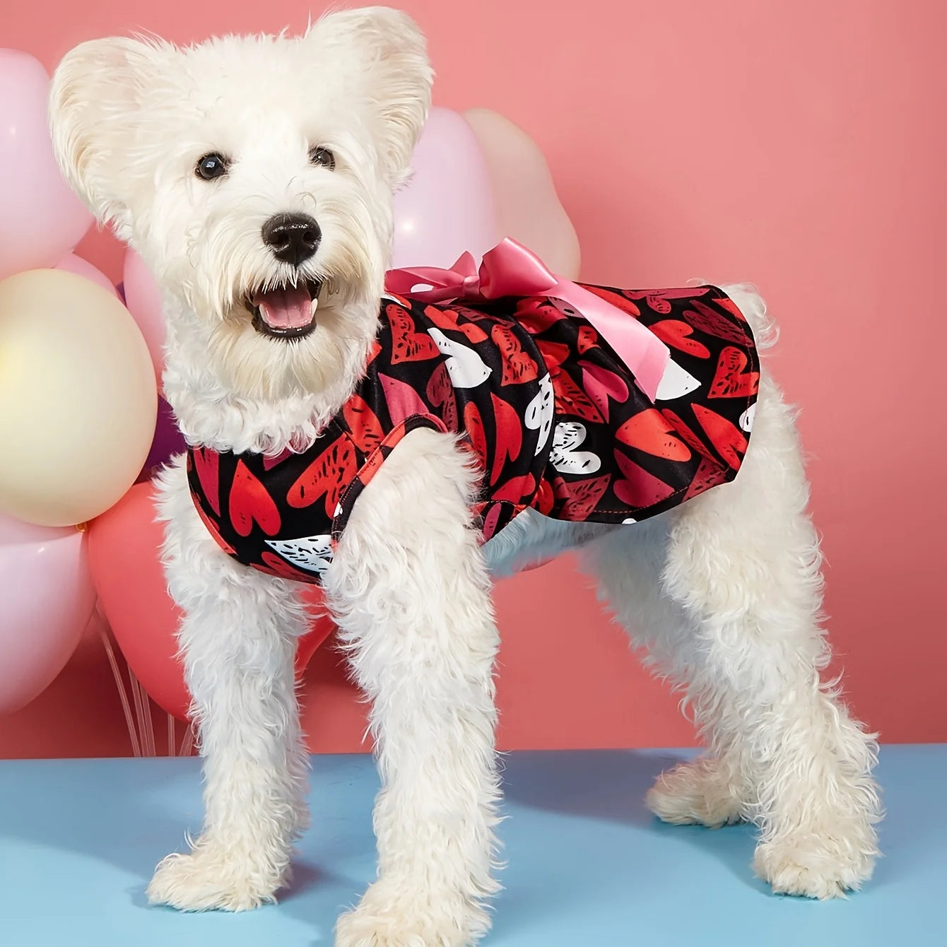 Dog Valentines Day Clothes Heart Prints Dog Valentines Outfit Red Tulle Dog Dress with Bowknot for Small Dogs Cat Girl